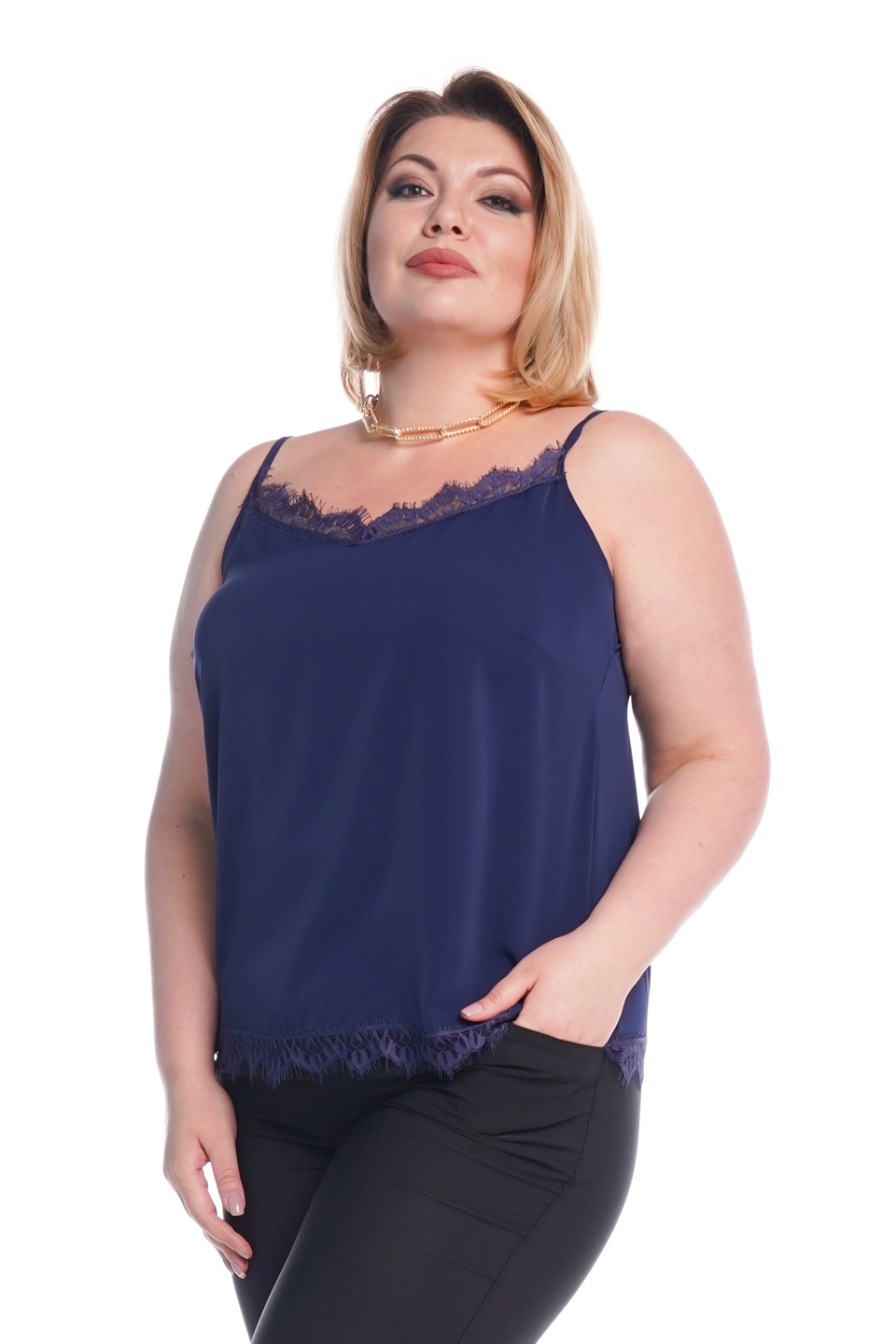Топ с кружевной отделкой синий