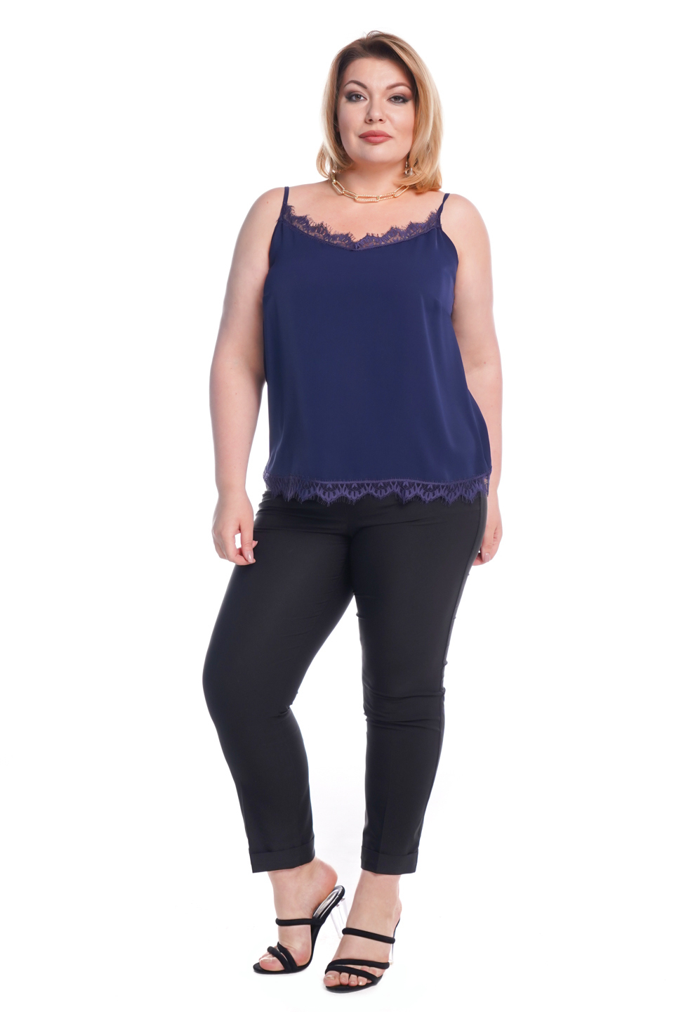 Классический однотонный топ свободного кроя из струящегося материала на бретелях. вырез на груди декорирован нежным кружевом, что добавляет модели женственности и романтизма. можно комбинировать с юбками и брюками, так же будет хорошей базой под пиджаки и жакеты. топ позволяет выглядеть стильно при минимальных финансовых затратах.
