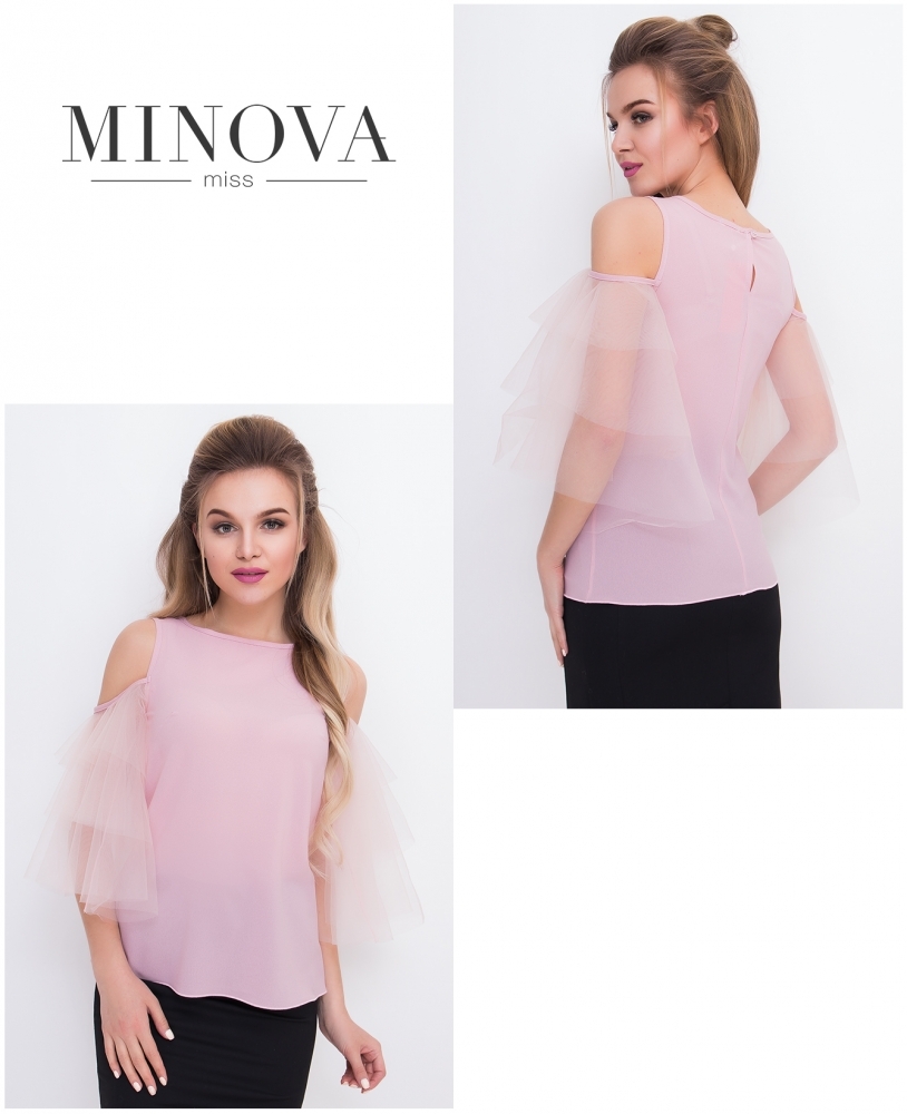 Летящий топ с открытыми плечами и фатином. топ прямого кроя с удлиненными фактурными расклешенными рукавами. воротник застегивается сзади на пуговицу.