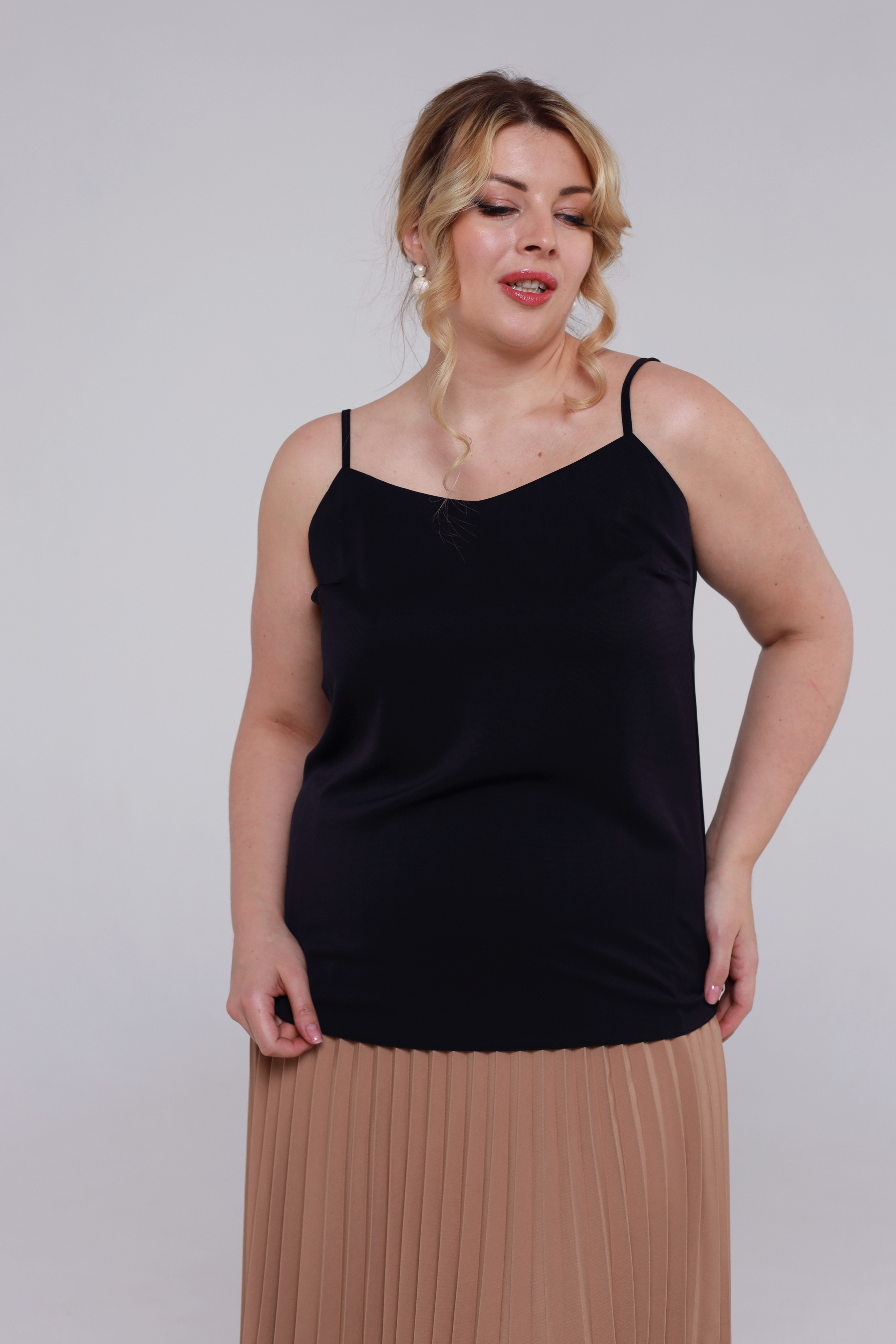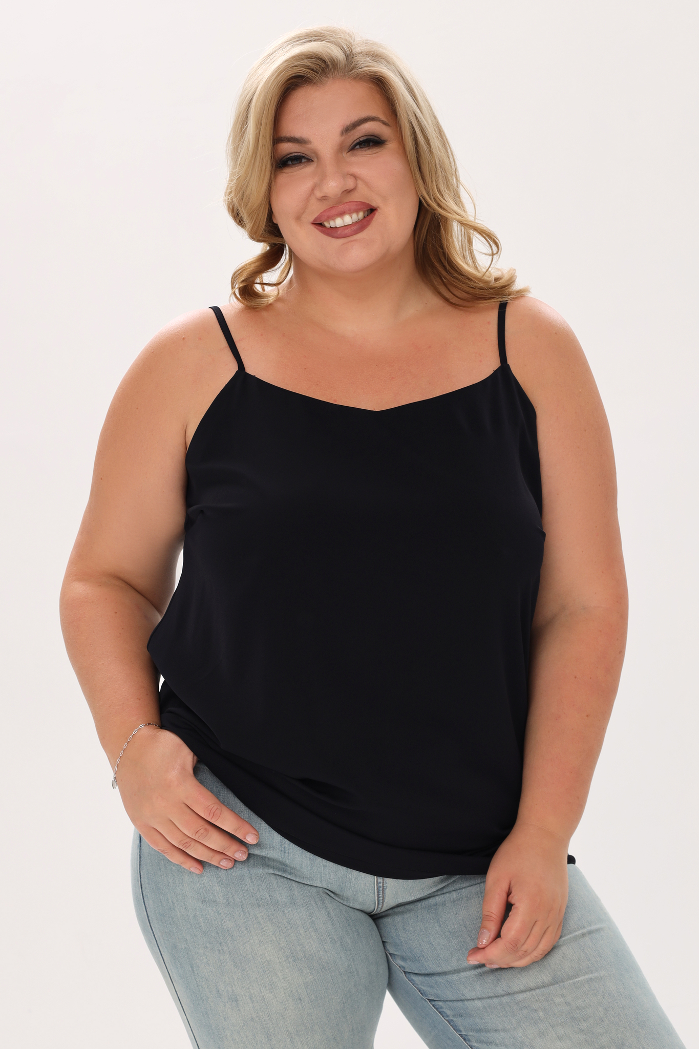Классический однотонный топ свободного кроя из струящегося материала на регулируемых тонких бретелях. v-образный вырез добавляет модели женственности и романтизма. модель можно комбинировать с юбками и брюками, также будет хорошей базой под пиджаки и жакеты. топ позволяет выглядеть стильно при минимальных финансовых затратах.
