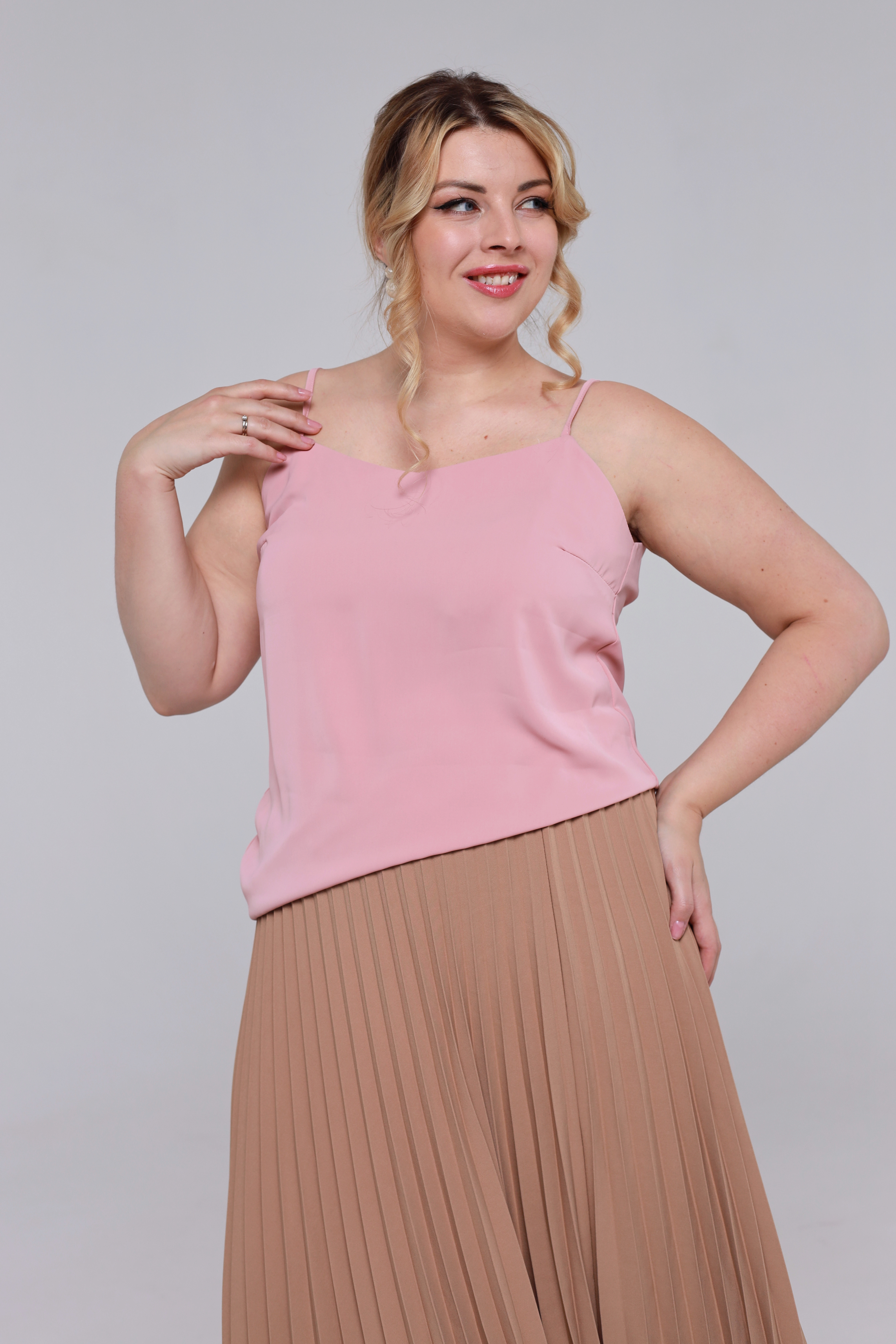 Классический однотонный топ свободного кроя из струящегося материала на регулируемых тонких бретелях. v-образный вырез добавляет модели женственности и романтизма. модель можно комбинировать с юбками и брюками, также будет хорошей базой под пиджаки и жакеты. топ позволяет выглядеть стильно при минимальных финансовых затратах.