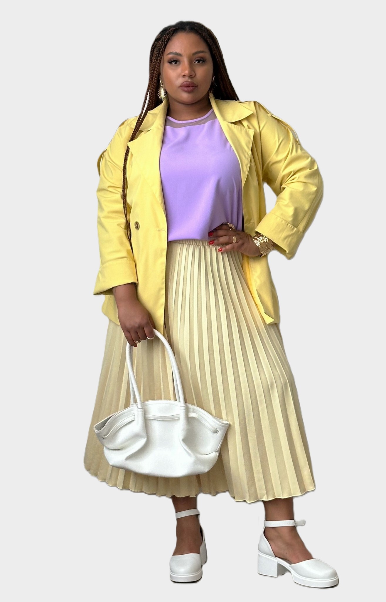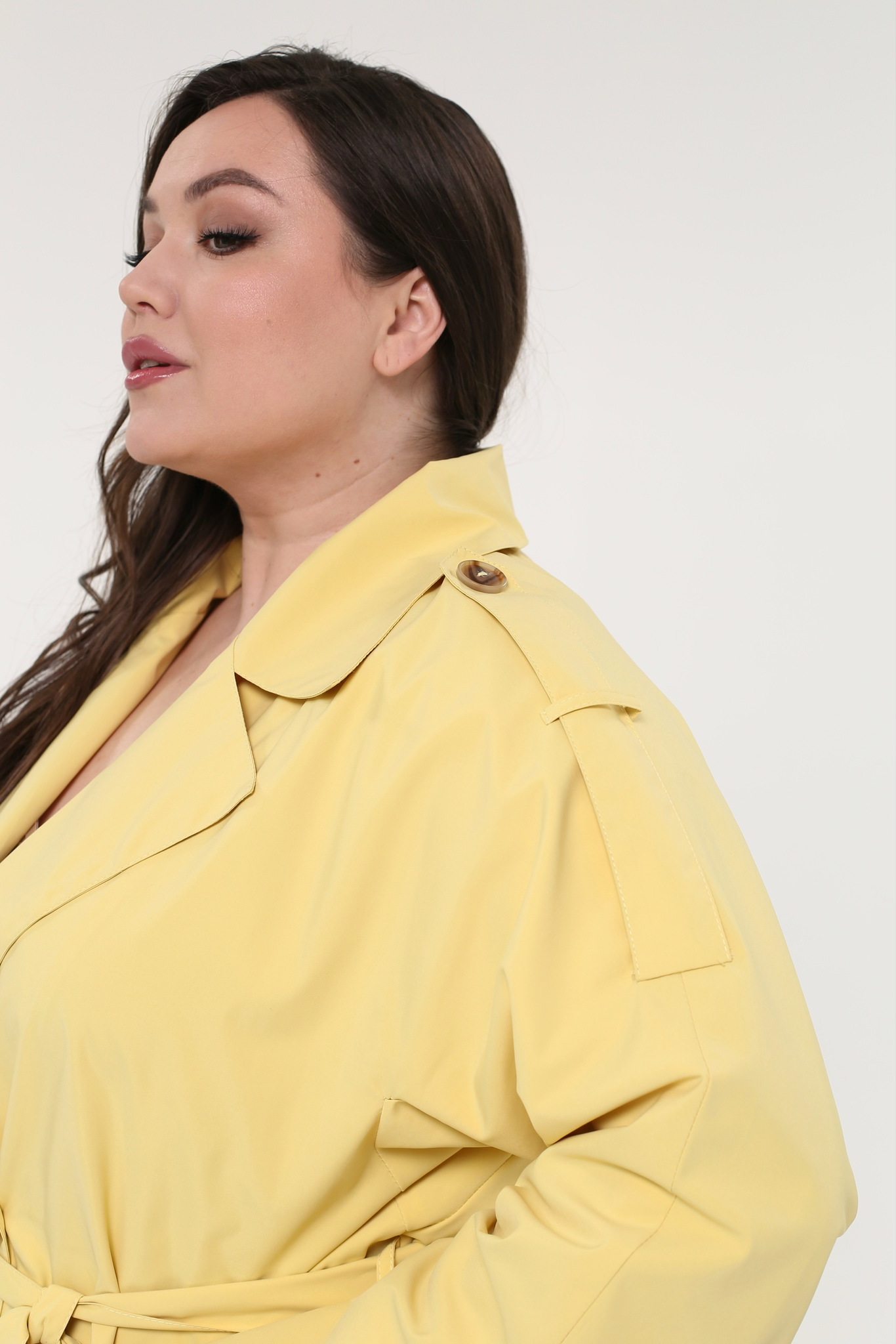 Тренч оверсайз из мягкой и водоотталкивающей плащевой ткани — идеальное решение для межсезонья, гармонично сочетающее функциональность с современным дизайном. глубокий v-образный вырез эффектно дополнен отложным воротником и лацканами, придающими изделию стильный и элегантный вид. длинные рукава с цельнокроенными деталями оснащены погонами и регулируемыми отворотами для максимального комфорта. прорезные карманы с листочками по бокам добавляют практичности, а контрастные пуговицы и пояс того же цвета подчеркивают талию, создавая завершенный образ. центральный шов на спинке обеспечивает идеальную посадку, а общая конструкция делает тренч универсальным элементом гардероба, который легко сочетается с платьями, юбками разной длины, брюками и джинсами.