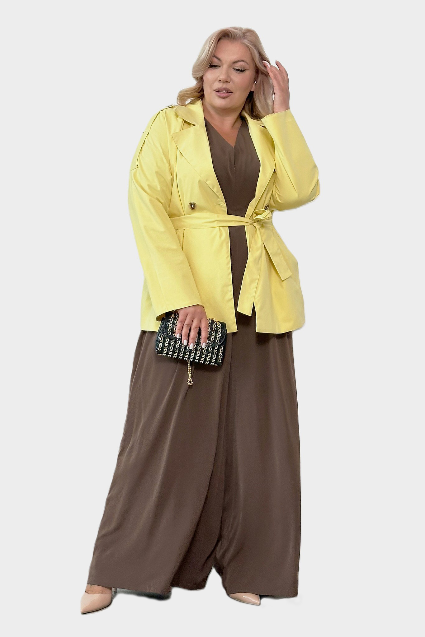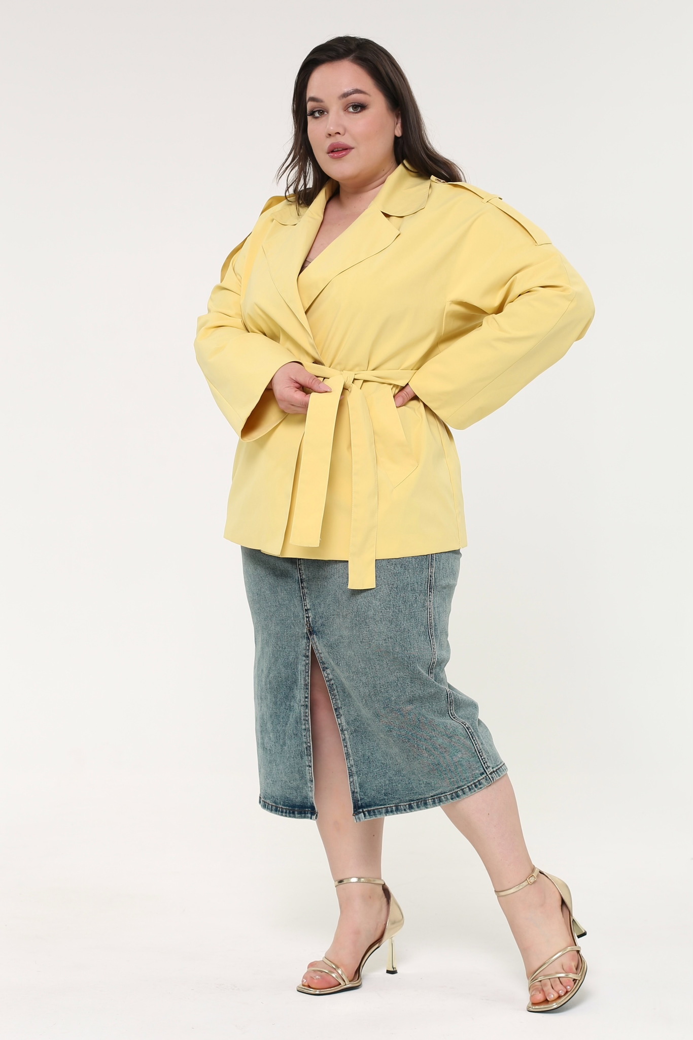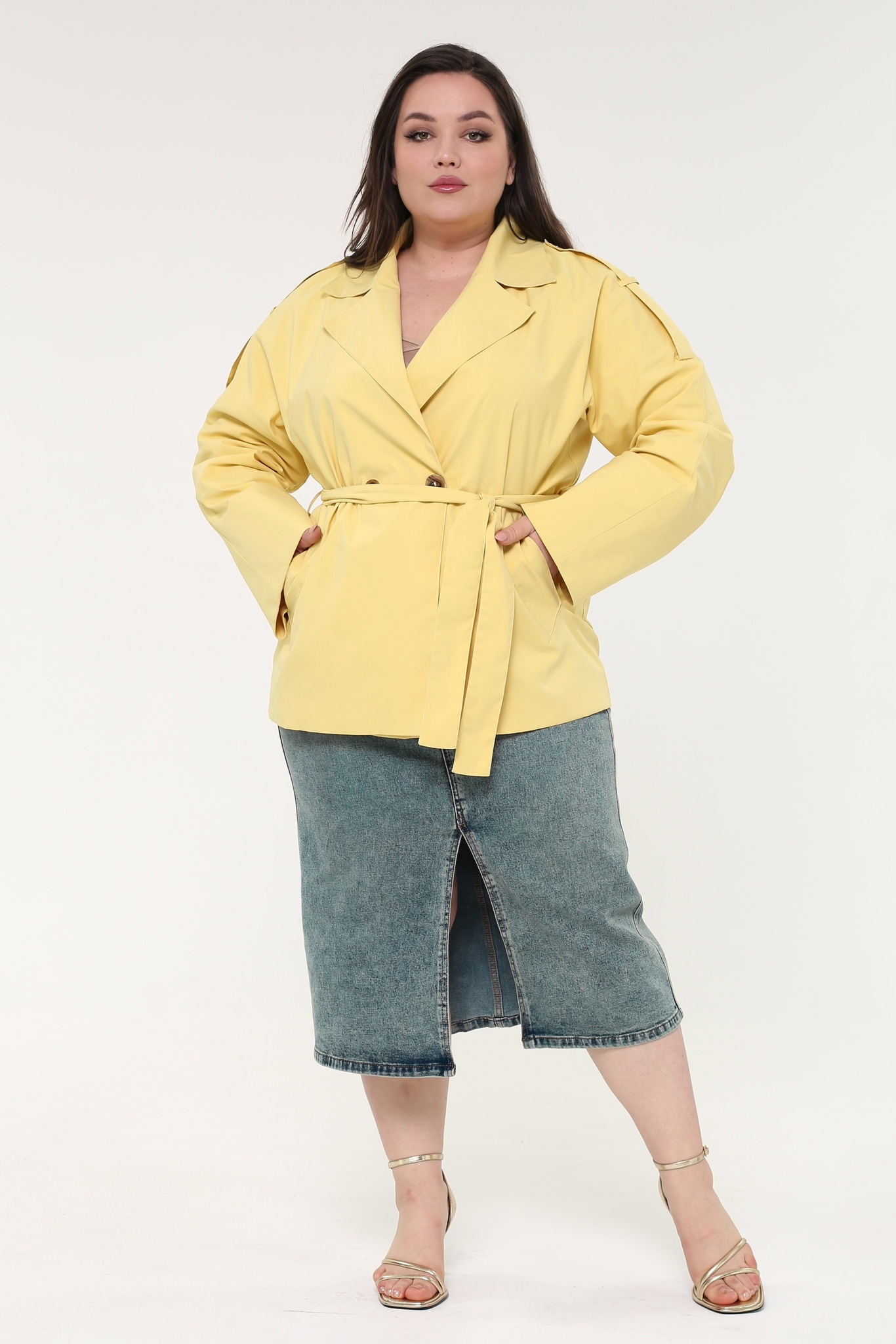 Тренч укороченный желтый