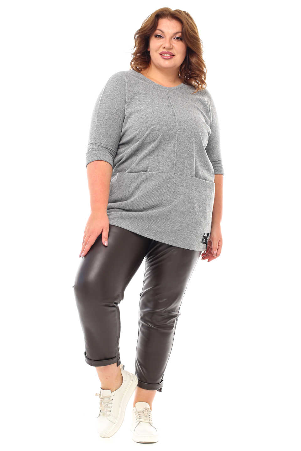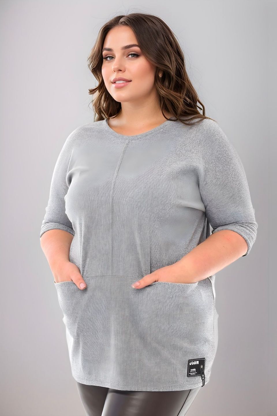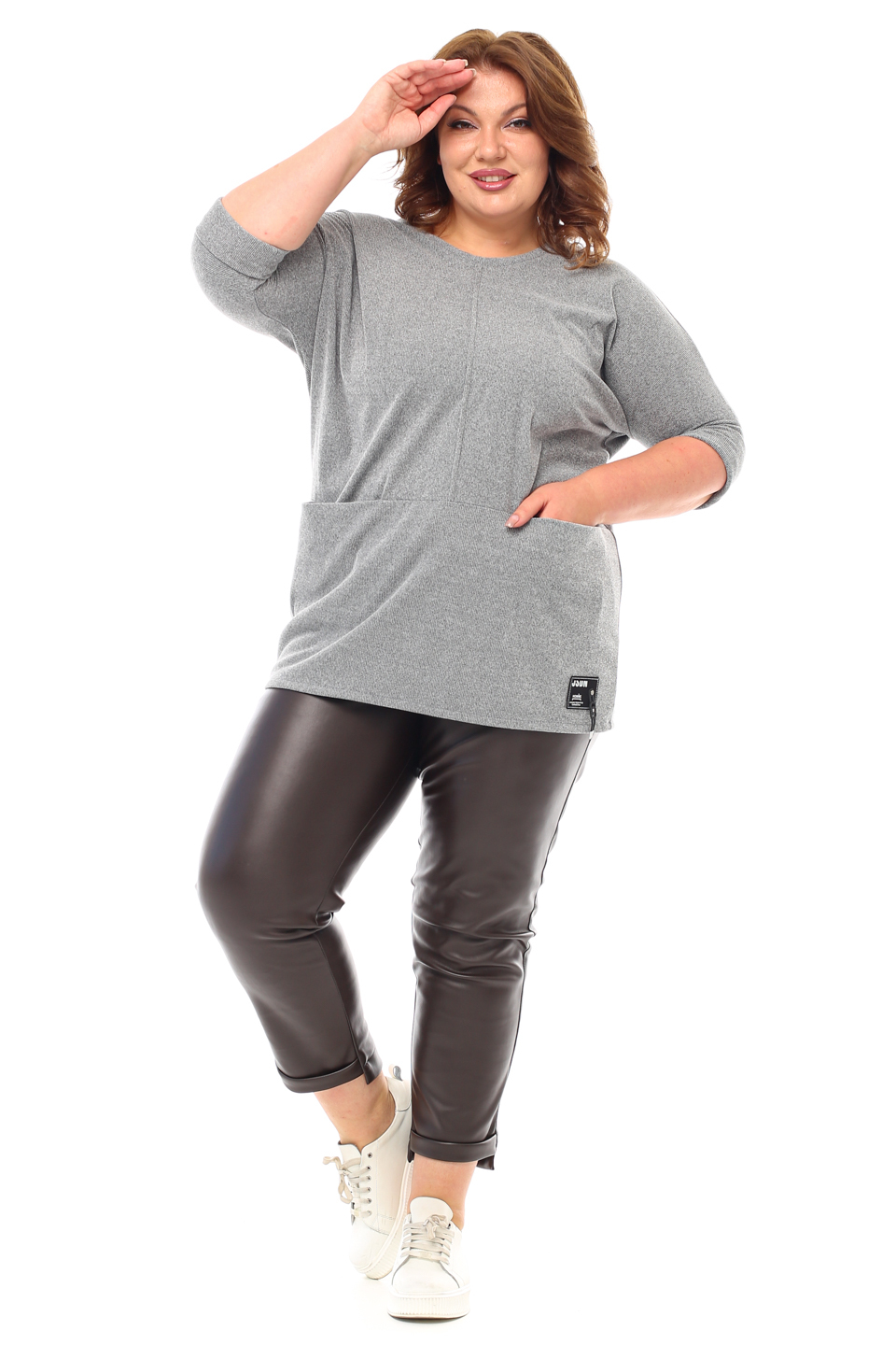 Красивая и удобная туника выполнена из мягкого трикотажа в рубчик. имеет круглый вырез с узким кантом по краям и цельнокроеные рукава длиной 3/4 с небольшим отворотом. центральный шов по спинке и декоративные швы по переду способствуют оптимальной посадке по фигуре. модная нашивка по переду туники освежает образ. объемные карманы по бокам добавляют практичности. свободный крой добавляет легкости и комфорта не сковывая движений. туника отлично подходит для комбинирования с узкими брюками и легинсами.