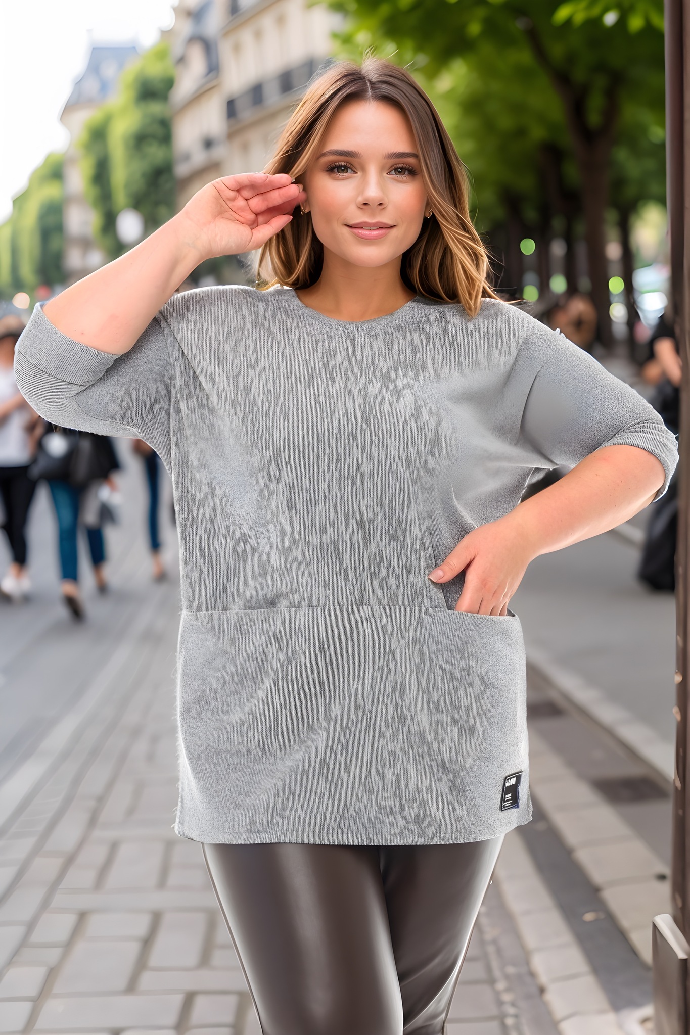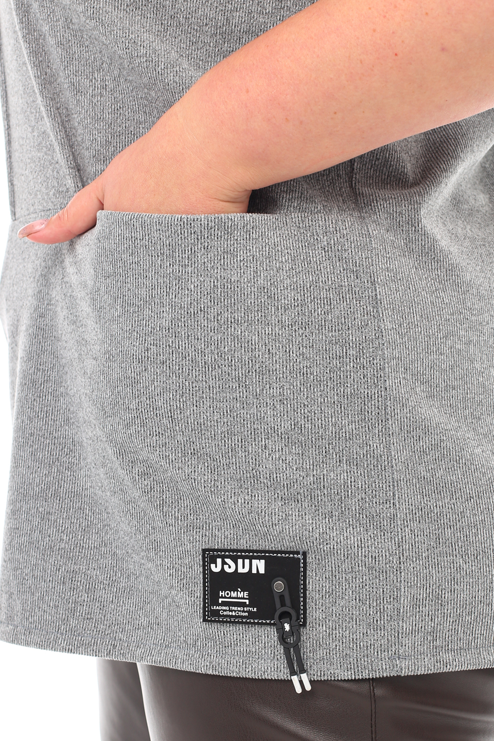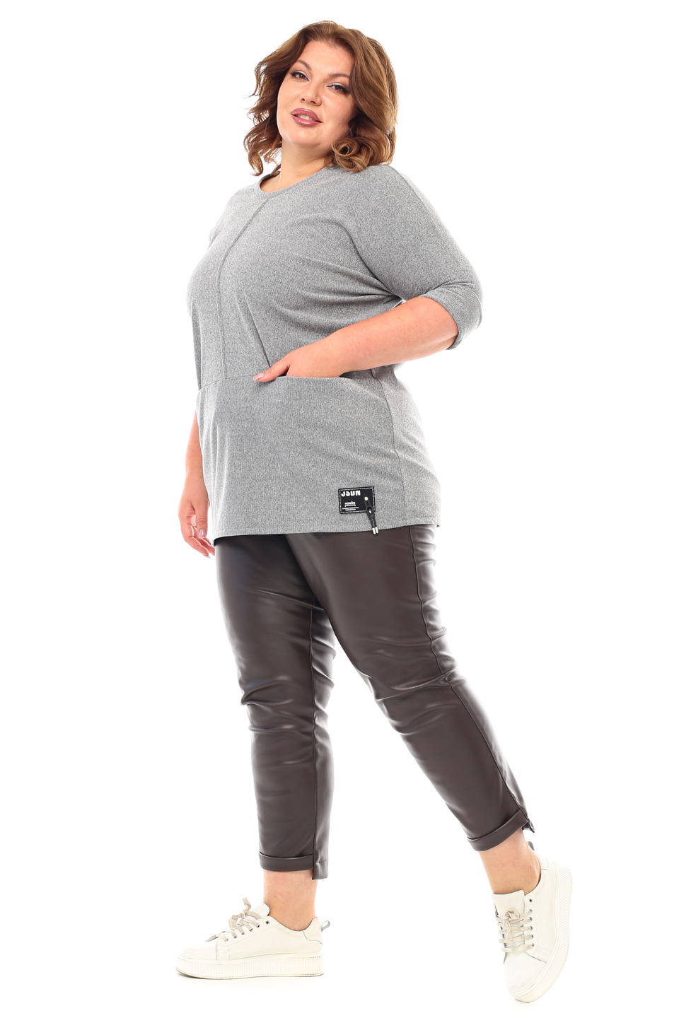 Красивая и удобная туника выполнена из мягкого трикотажа в рубчик. имеет круглый вырез с узким кантом по краям и цельнокроеные рукава длиной 3/4 с небольшим отворотом. центральный шов по спинке и декоративные швы по переду способствуют оптимальной посадке по фигуре. модная нашивка по переду туники освежает образ. объемные карманы по бокам добавляют практичности. свободный крой добавляет легкости и комфорта не сковывая движений. туника отлично подходит для комбинирования с узкими брюками и легинсами.