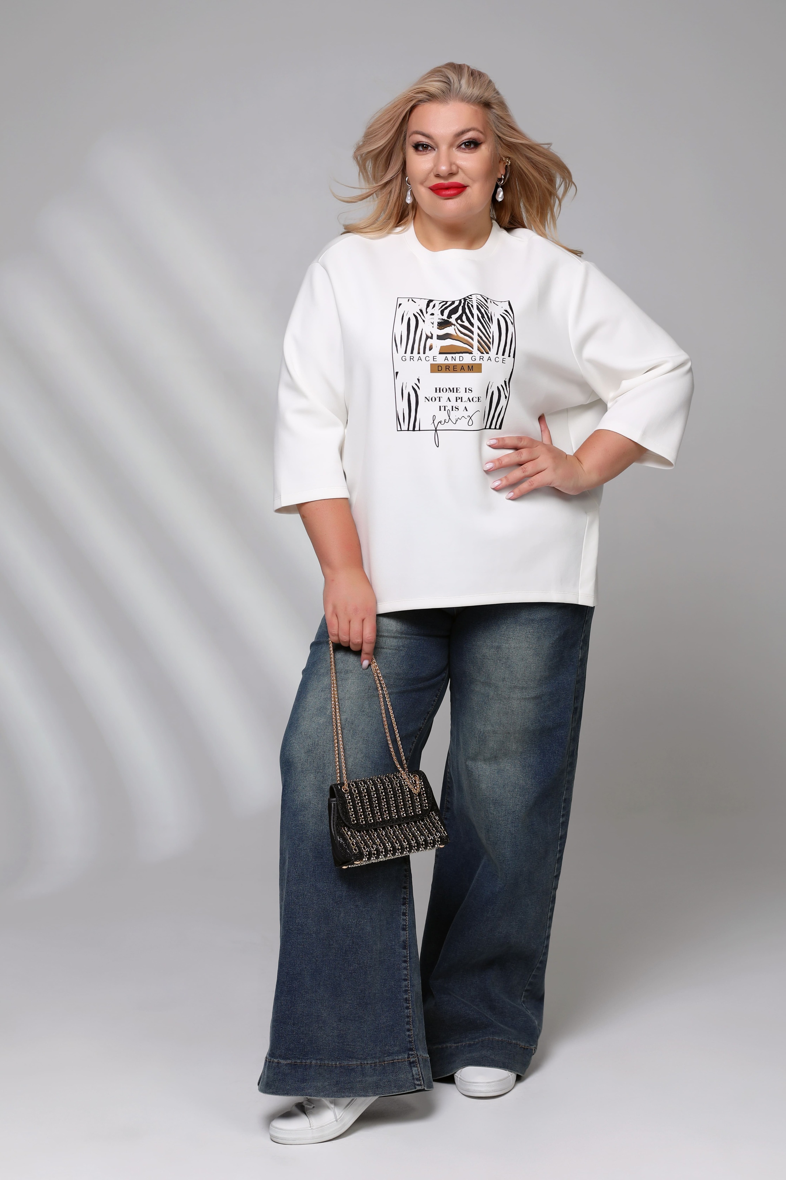 Туника с рисунком на груди "зебра" айвори Параметры модели: Рост 173 см, Размер 54