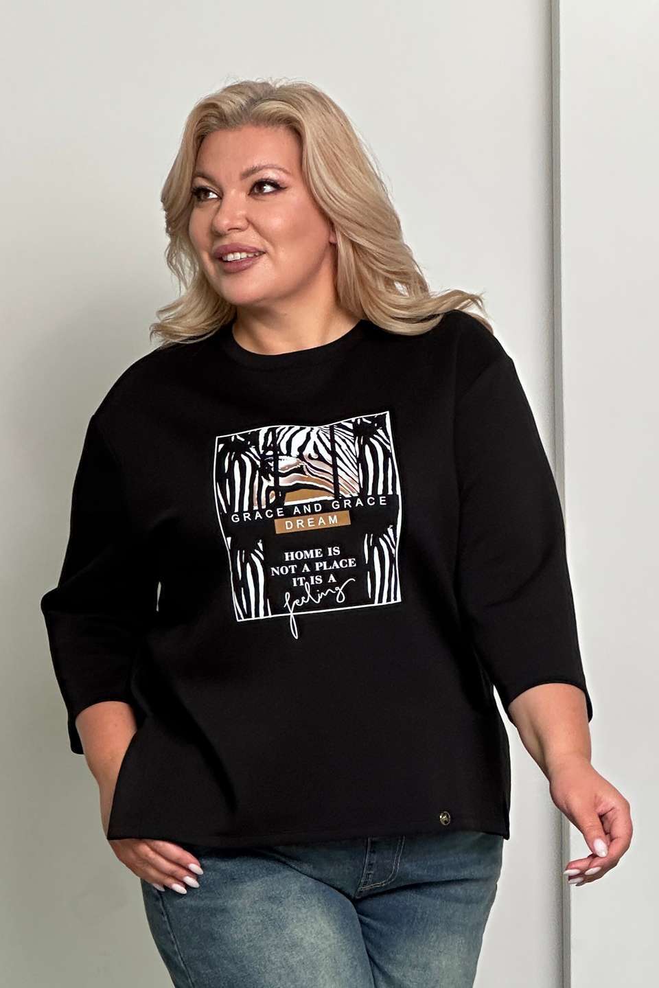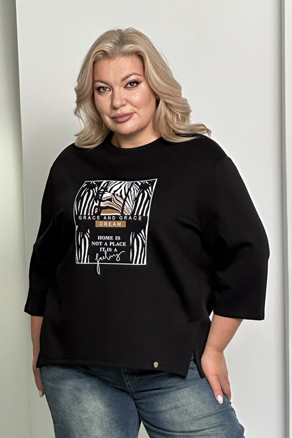 Туника с рисунком на груди "зебра" черная Параметры модели: Рост 173 см, Размер 54