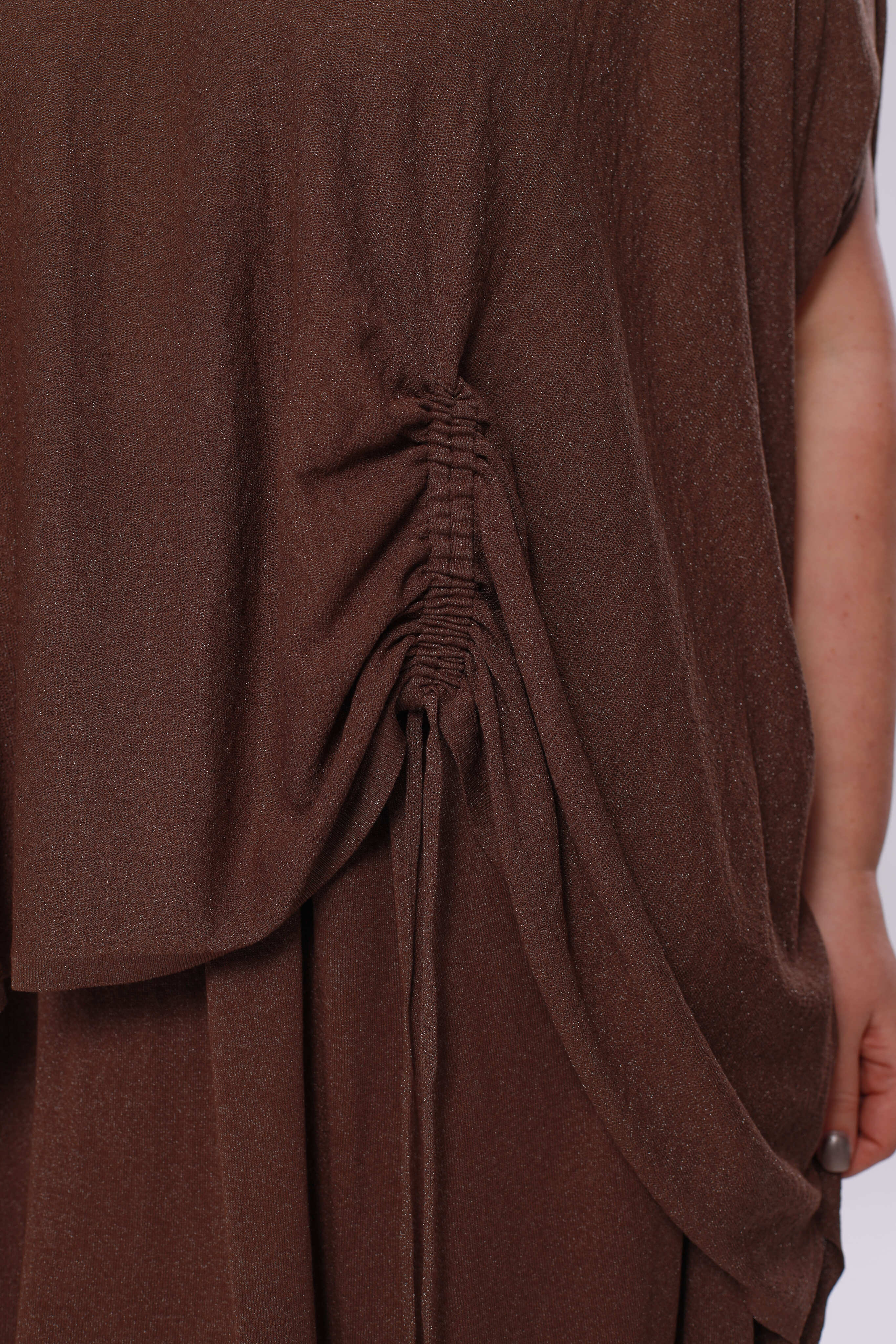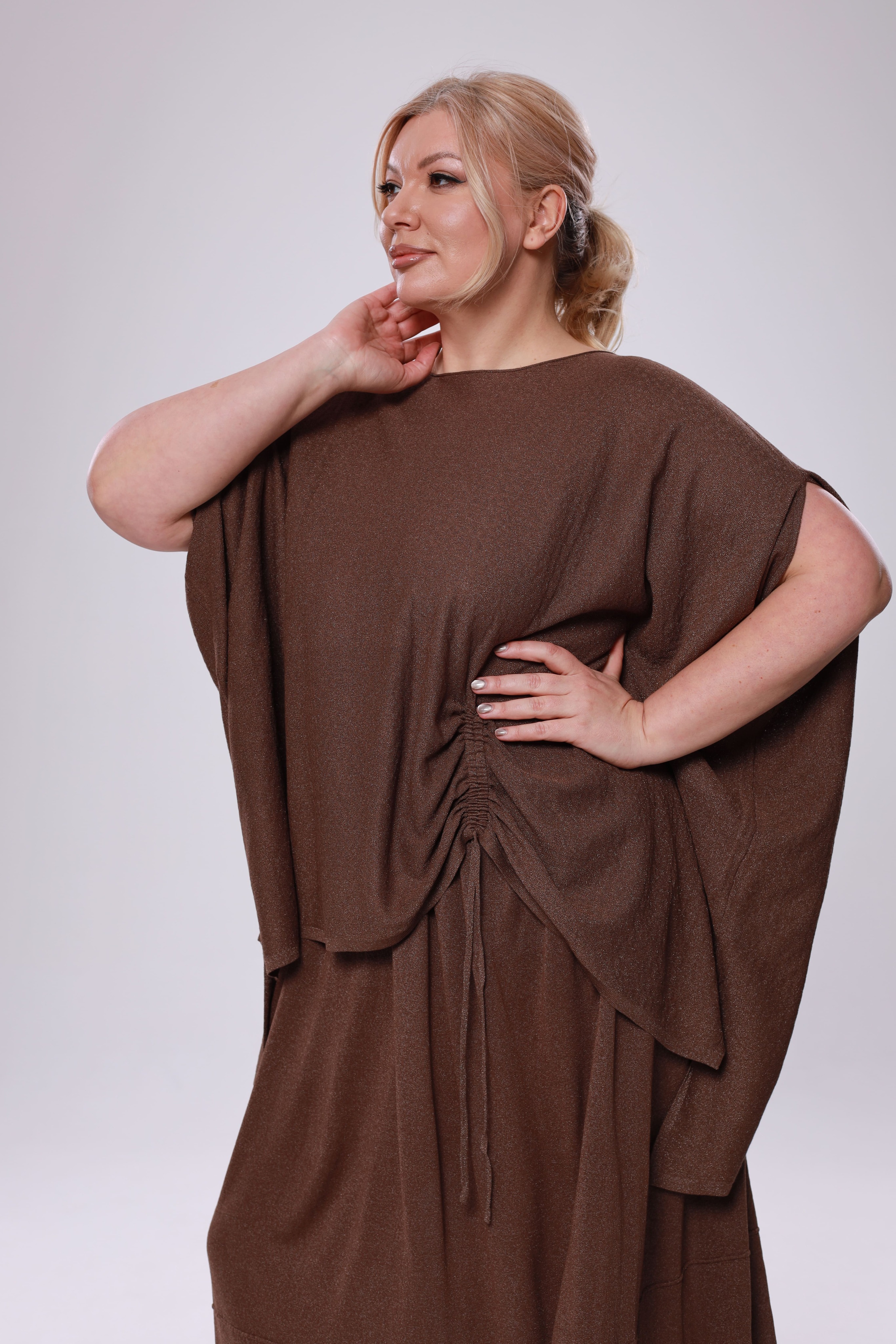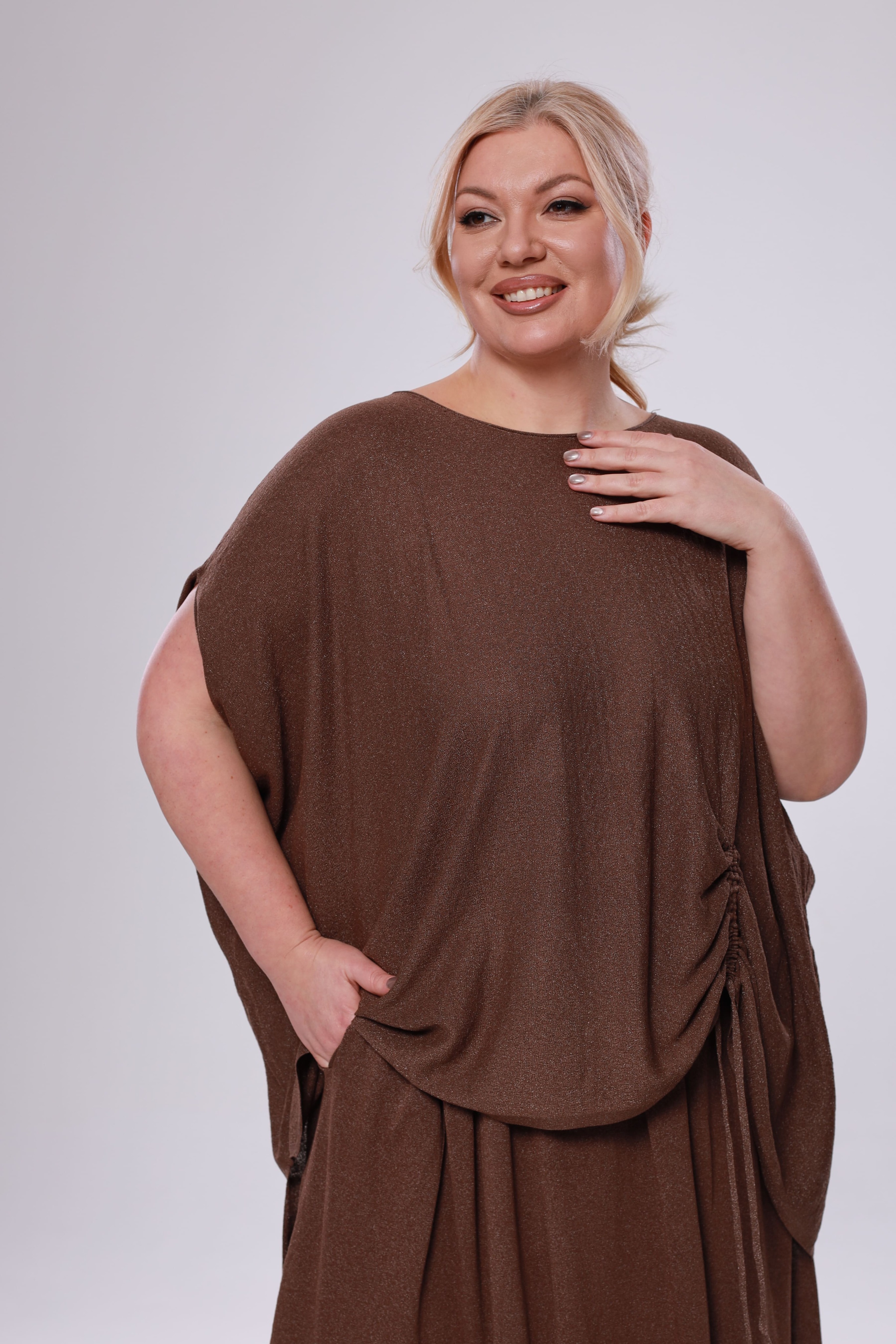 Туника расклешенная с люрексом на кулиске сбоку бежевая