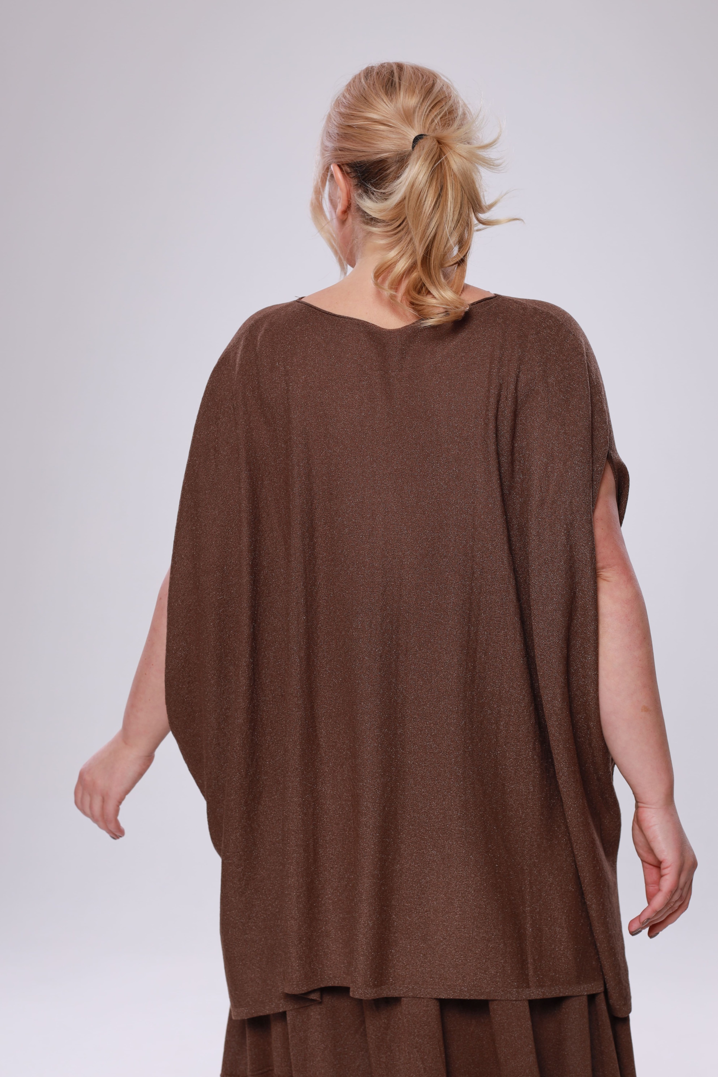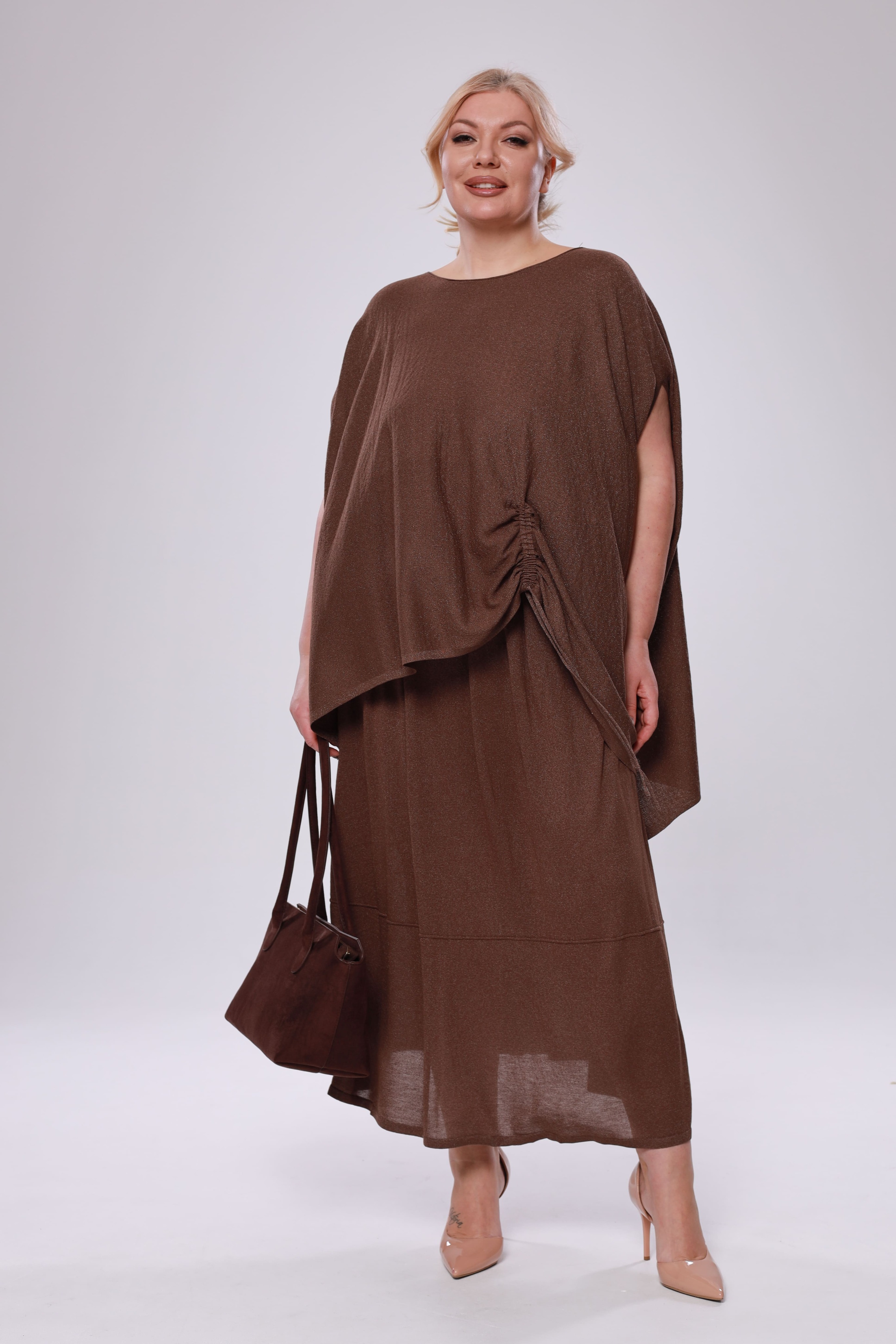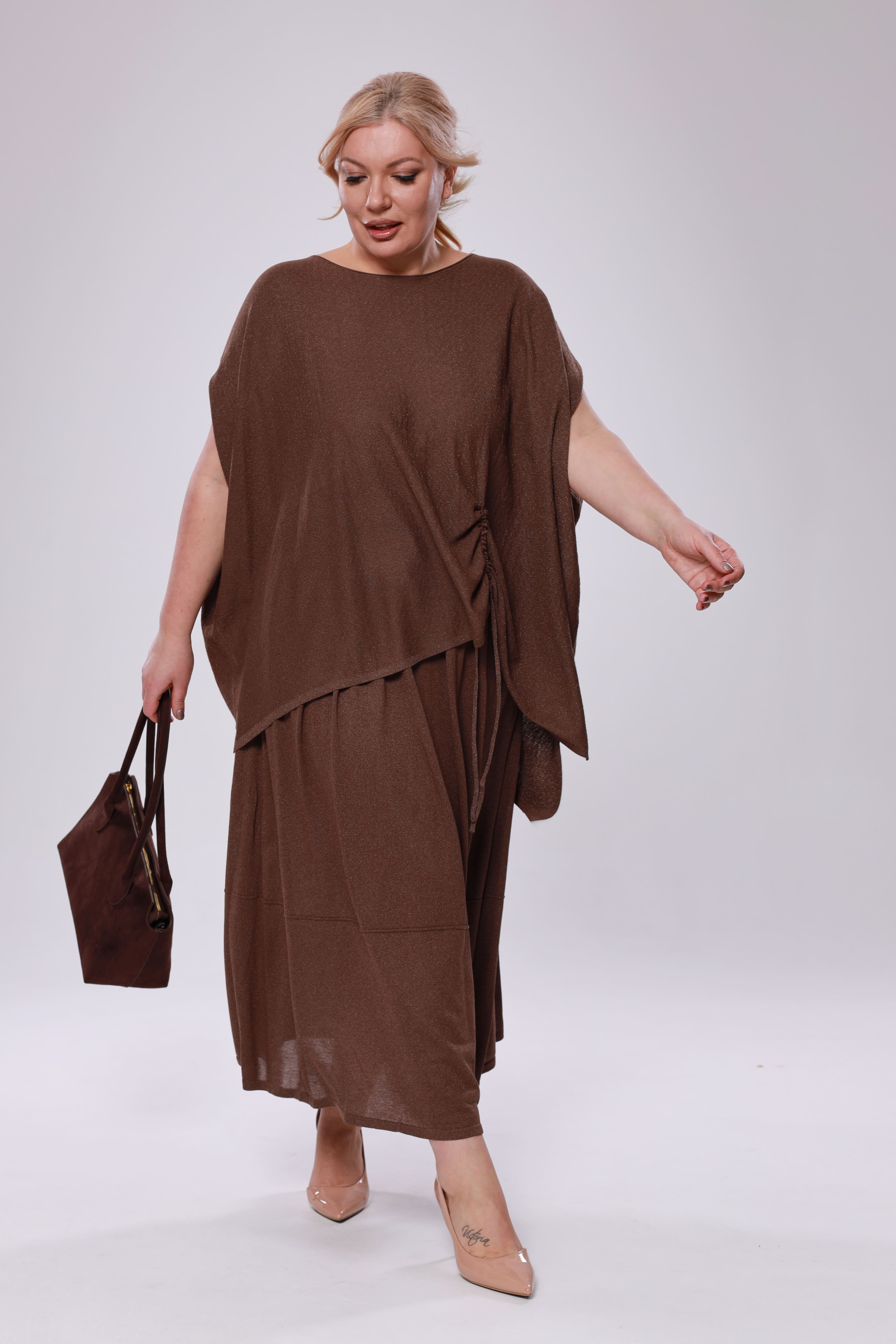 Туника расклешенная с люрексом на кулиске сбоку бежевая