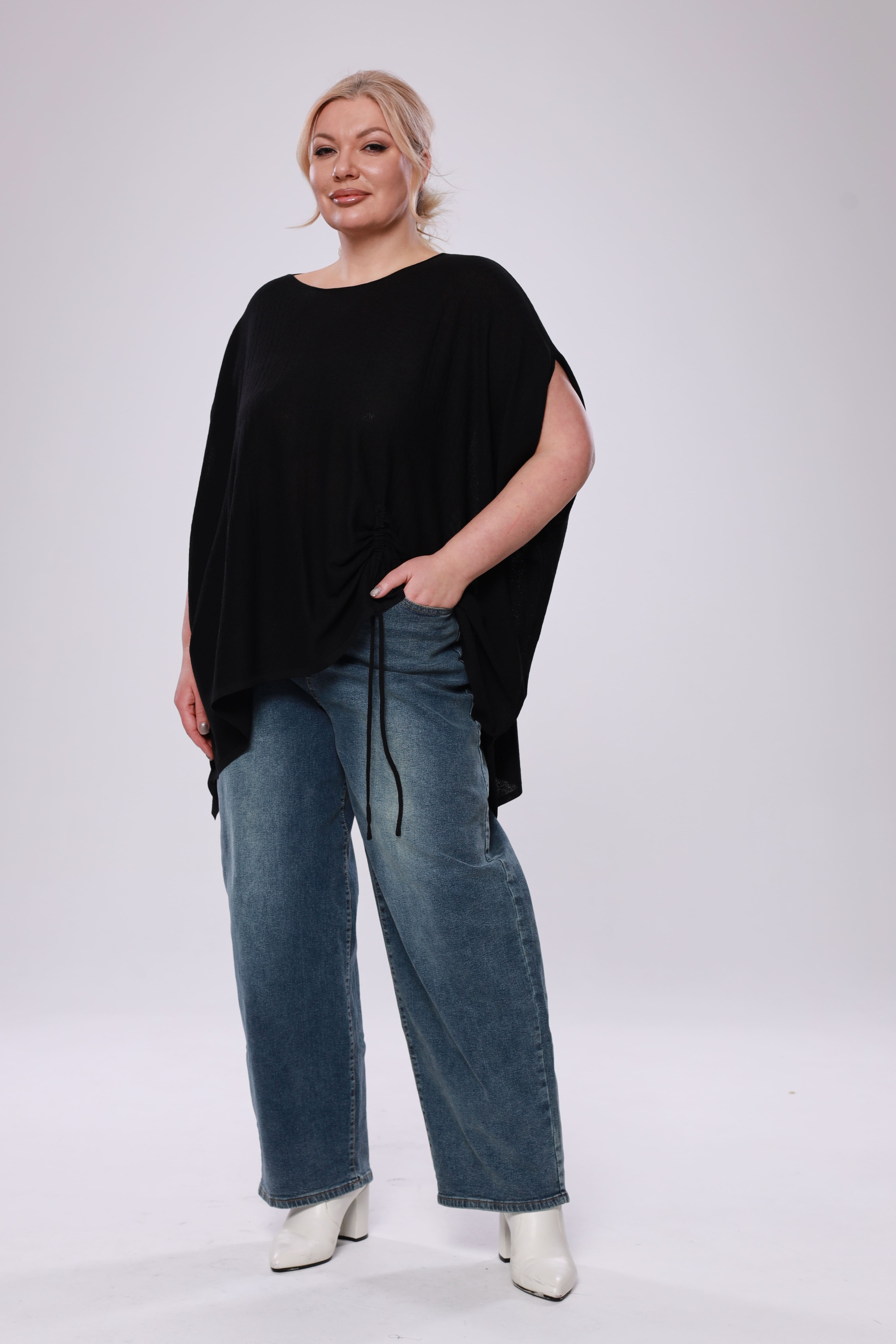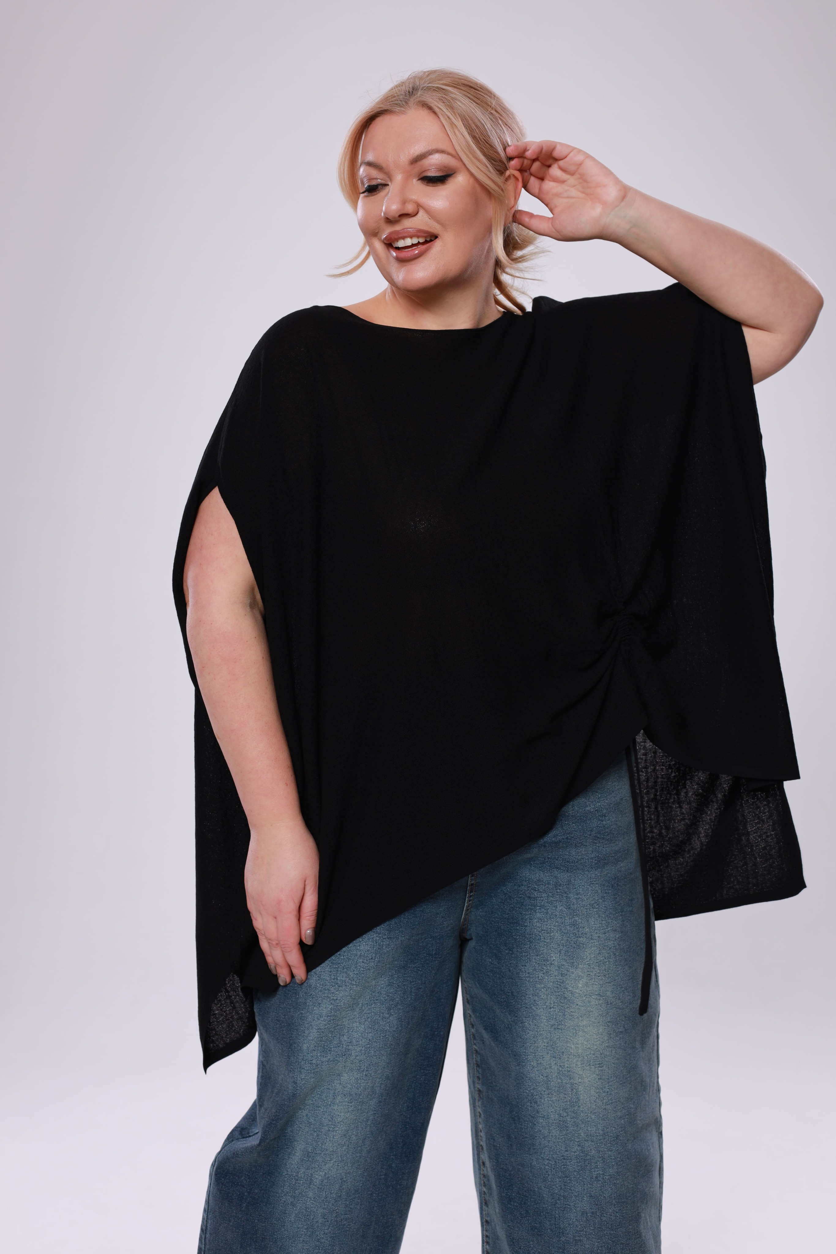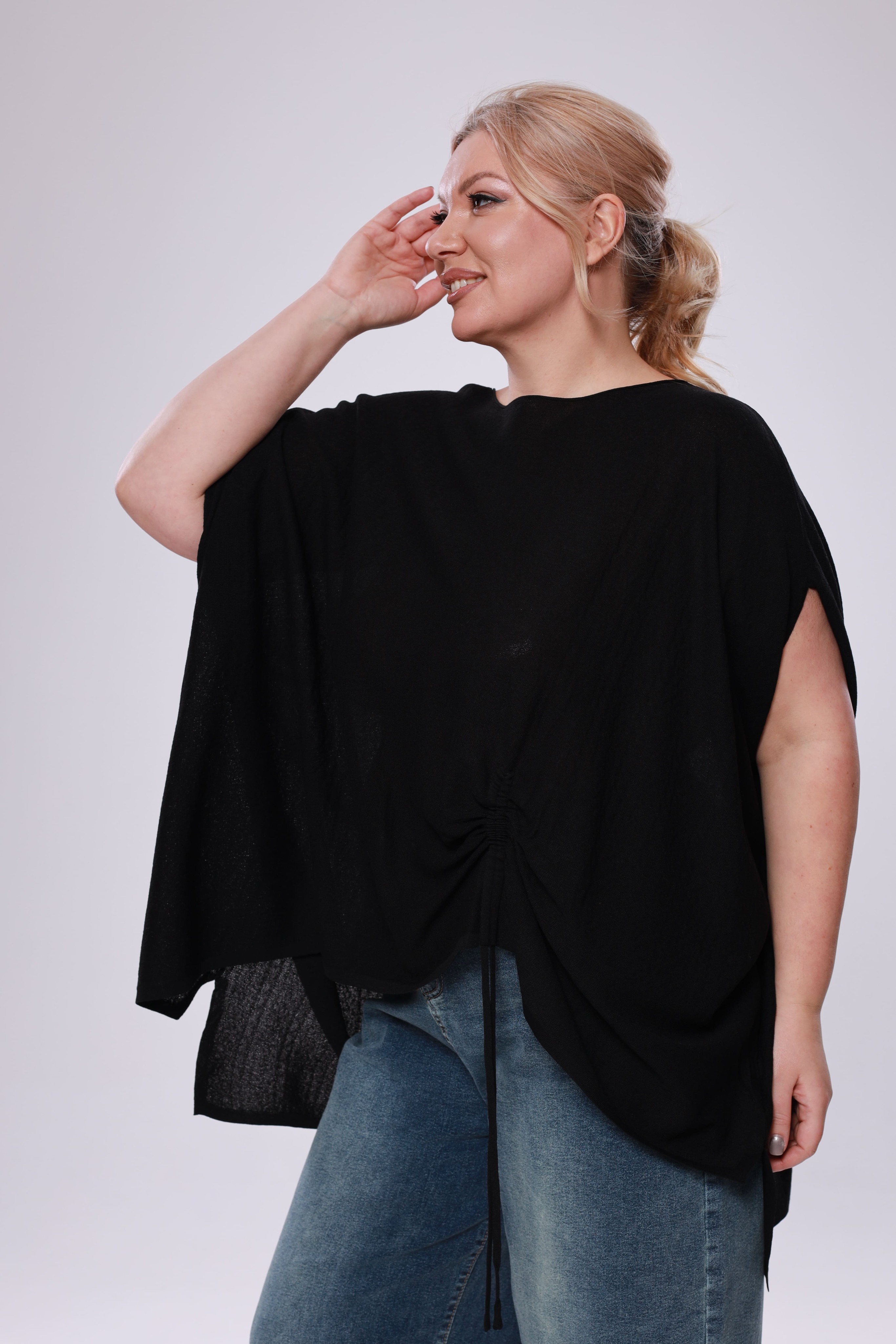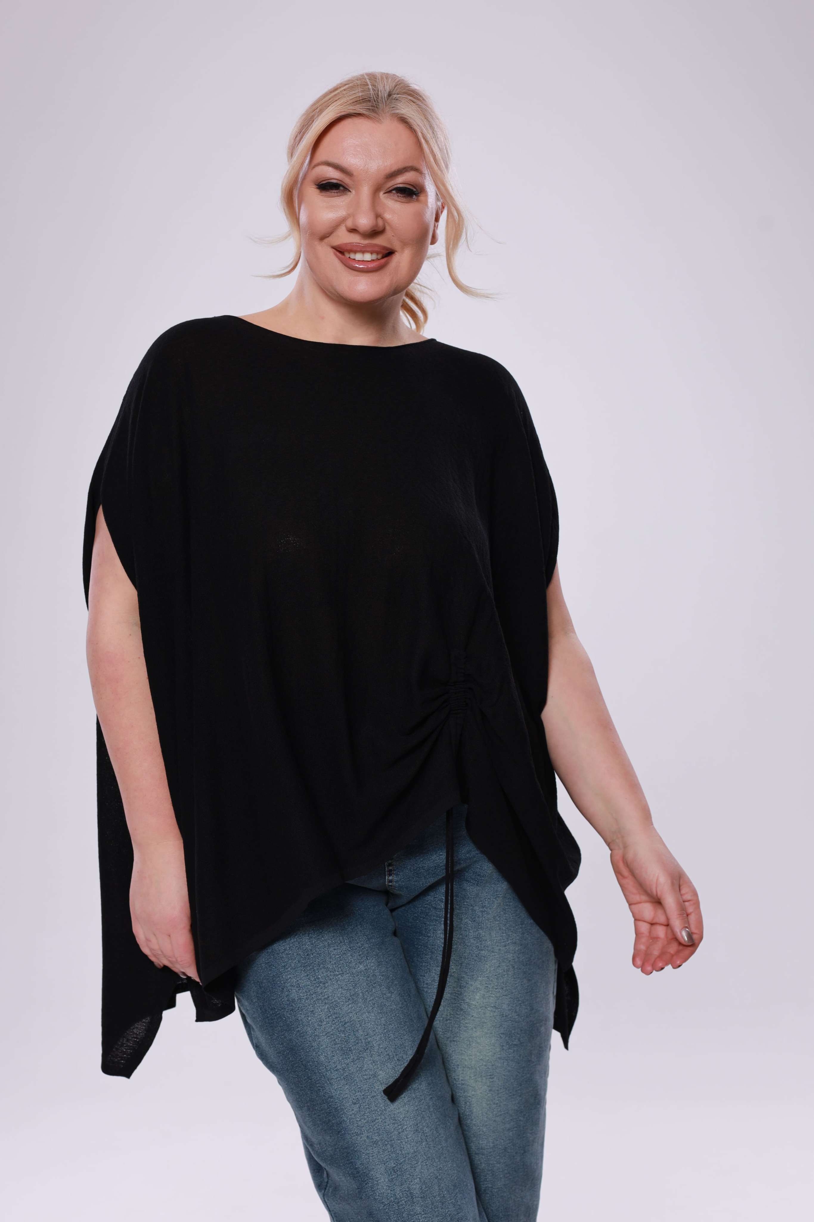 Туника расклешенная на кулиске сбоку черная