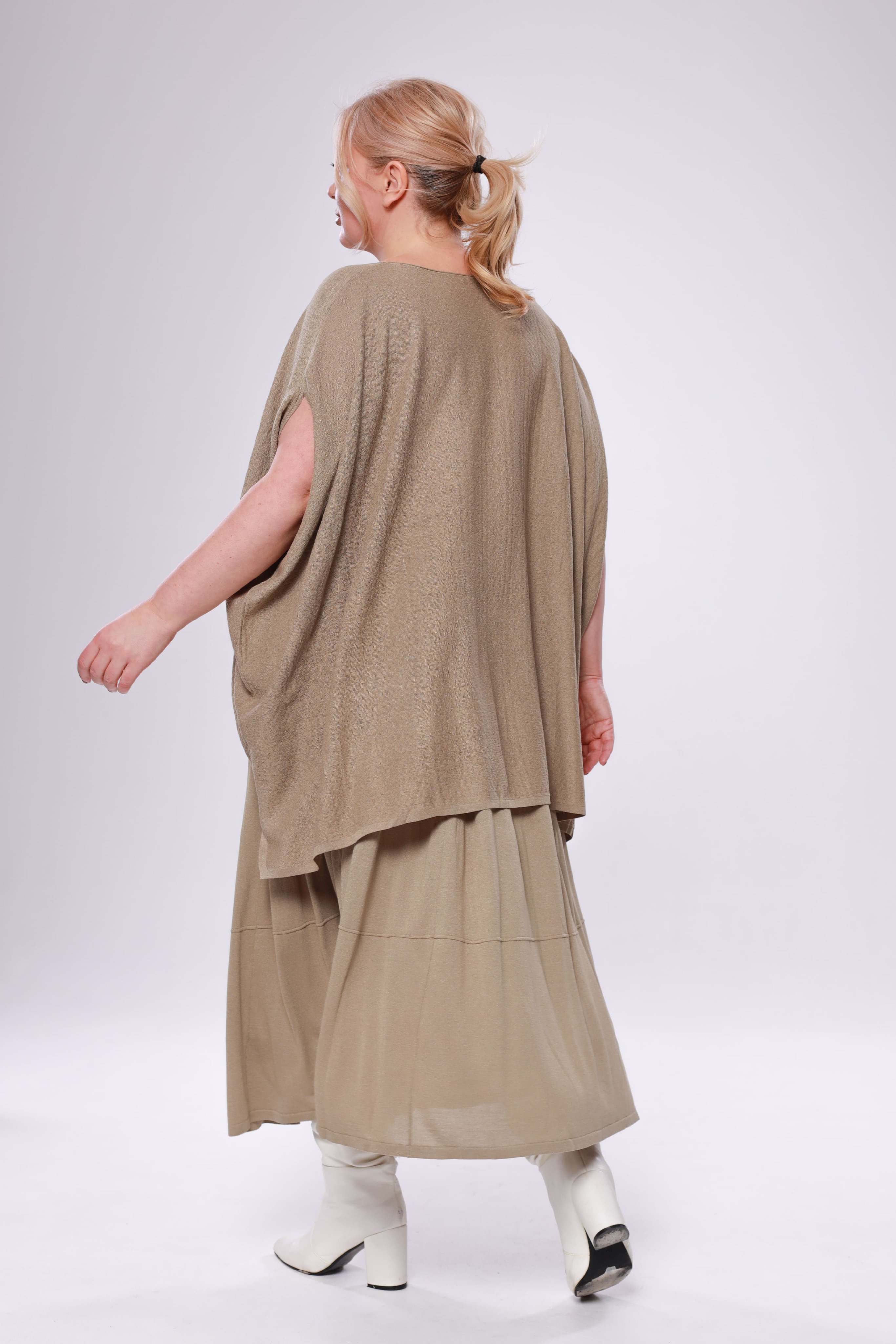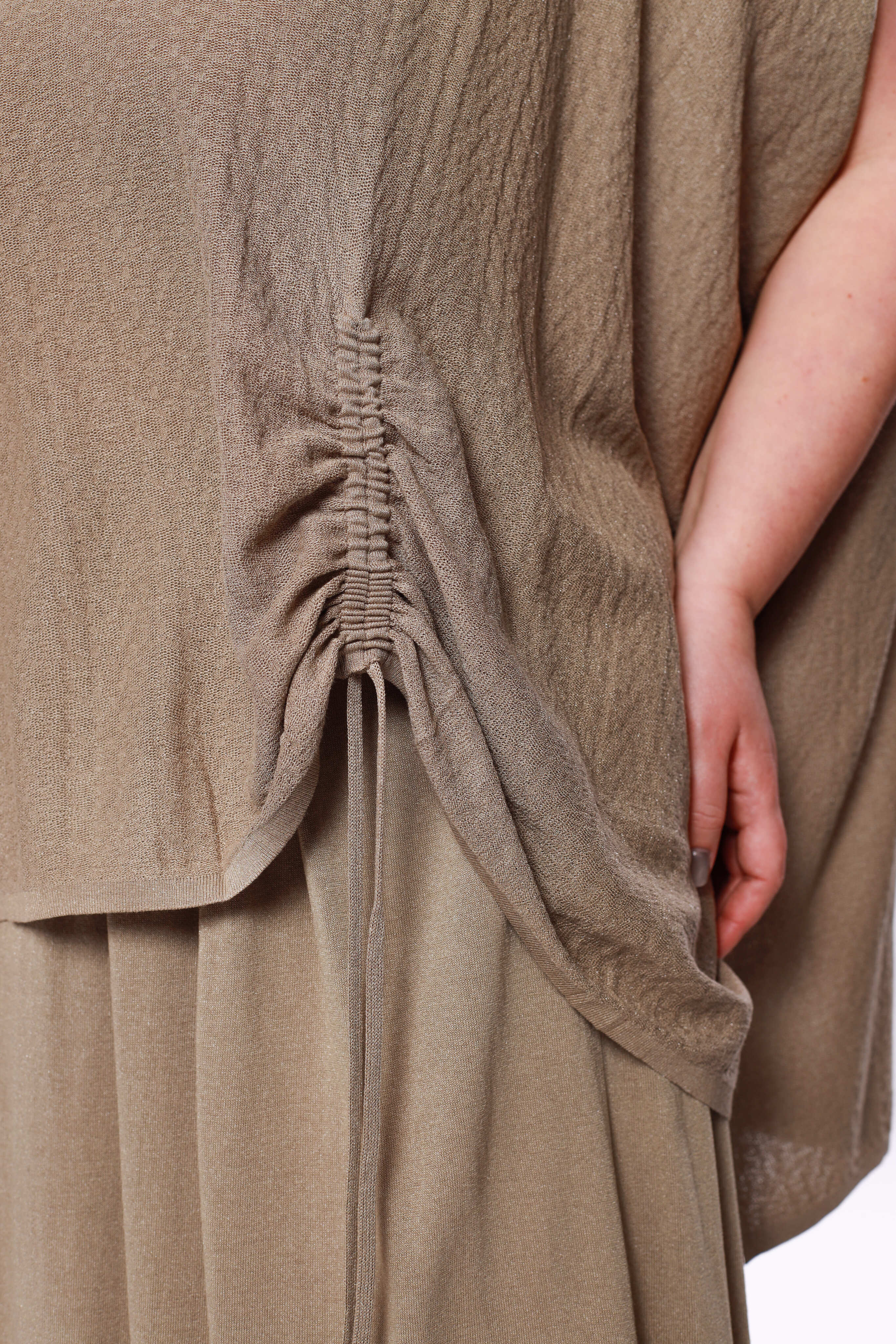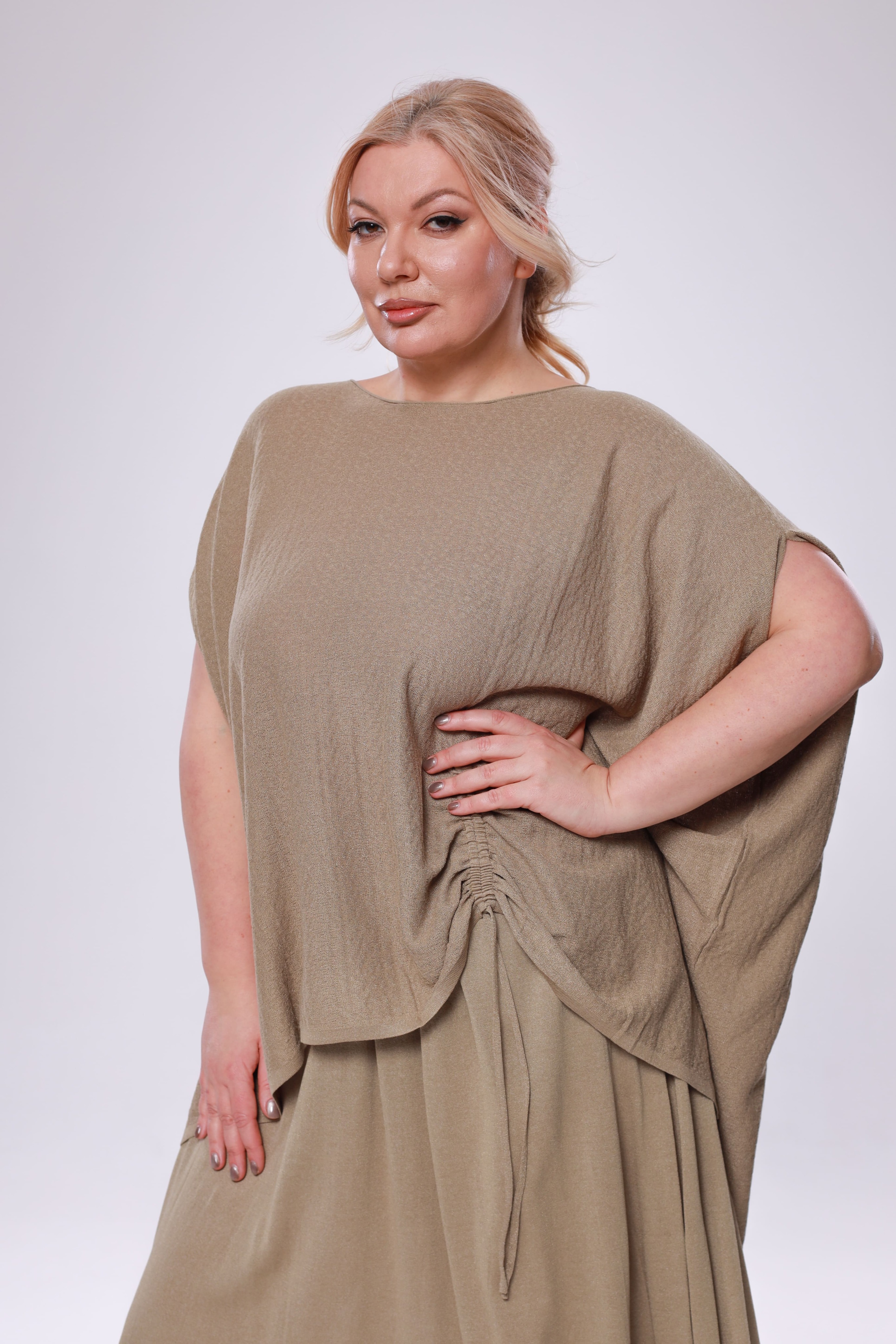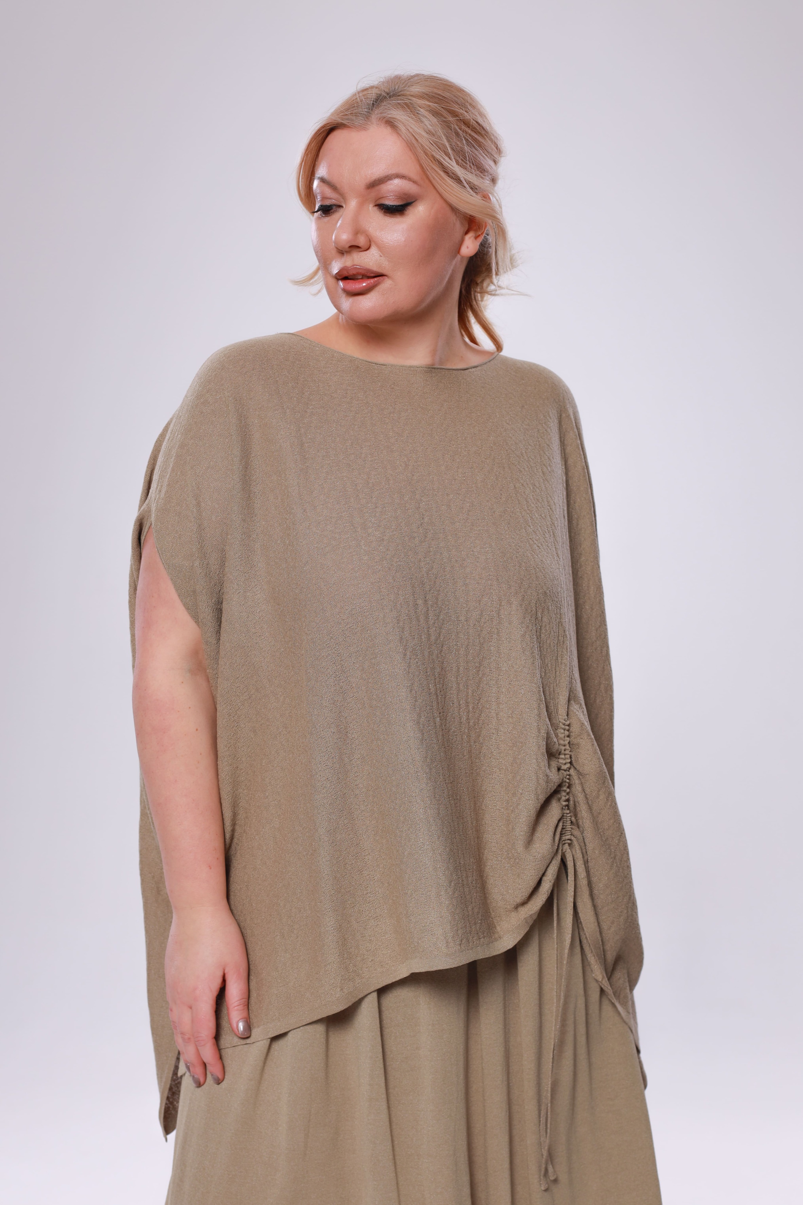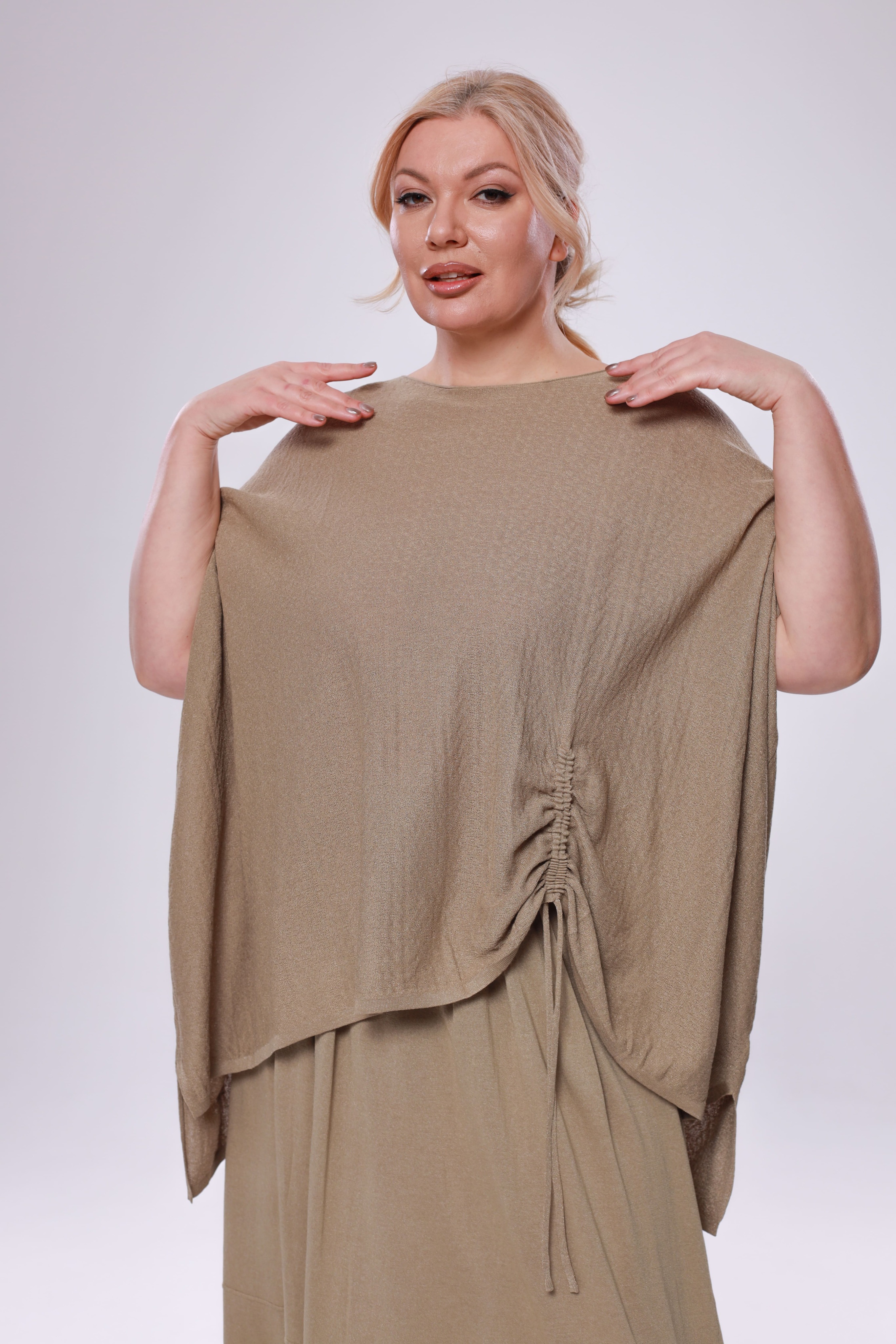 Туника расклешенная на кулиске сбоку бежевая
