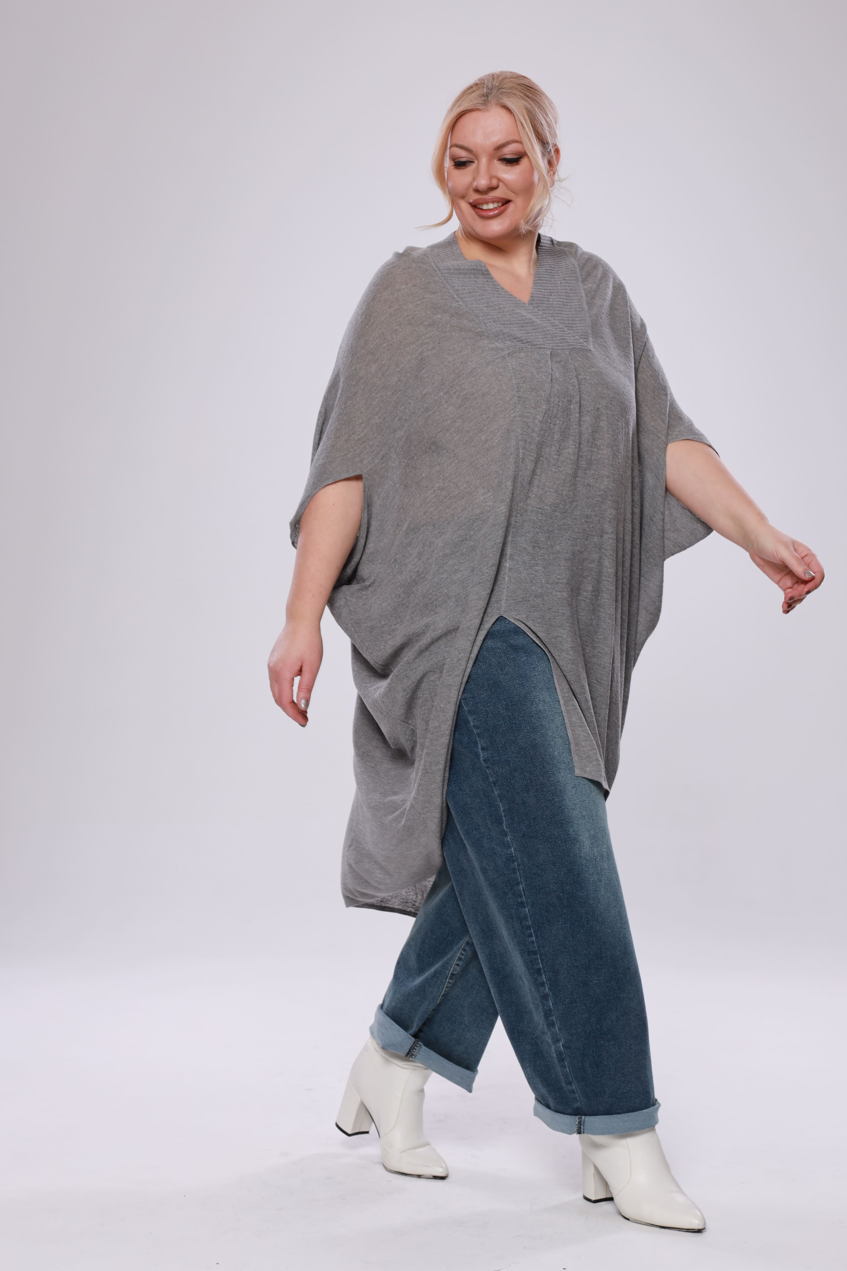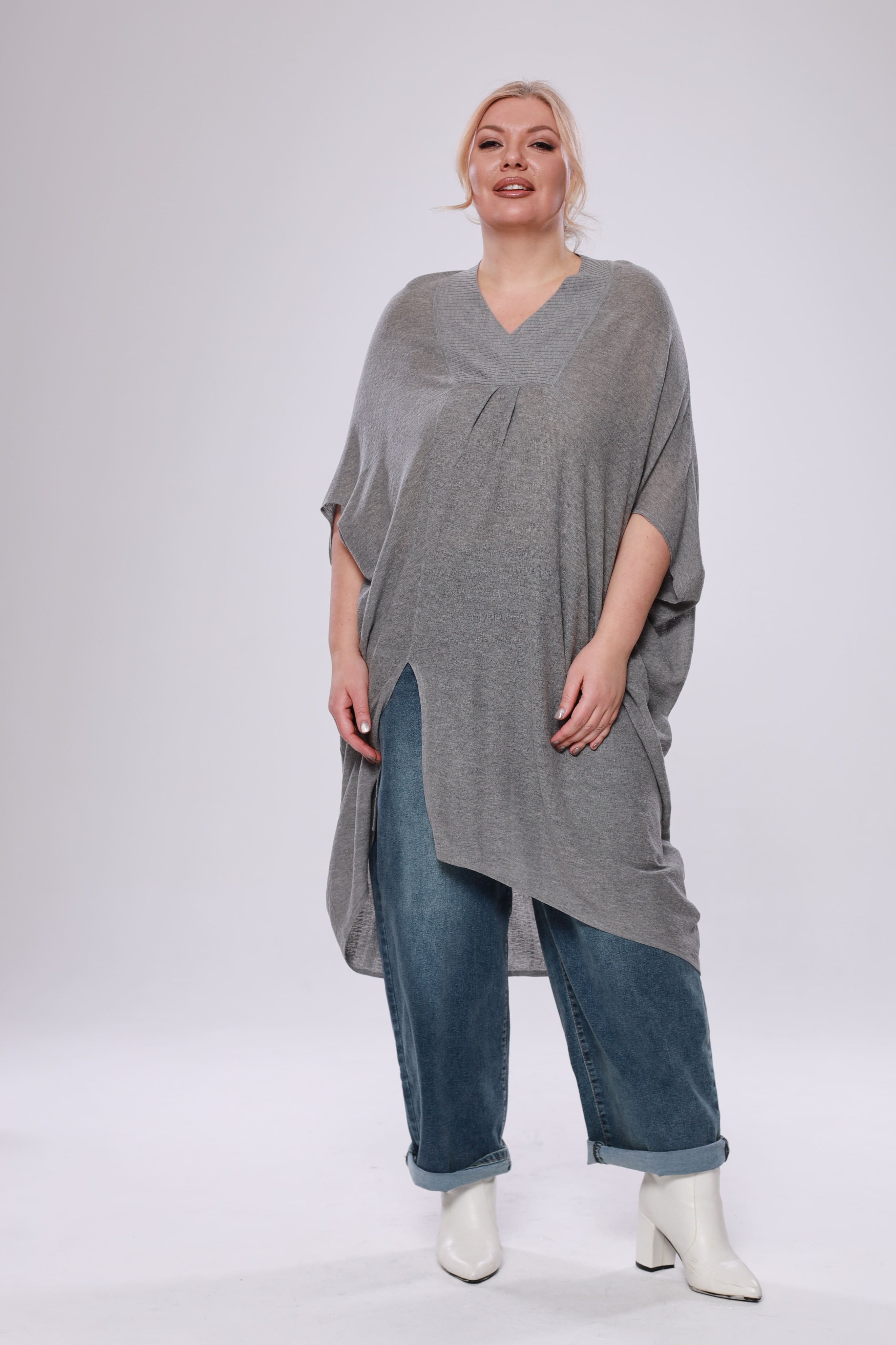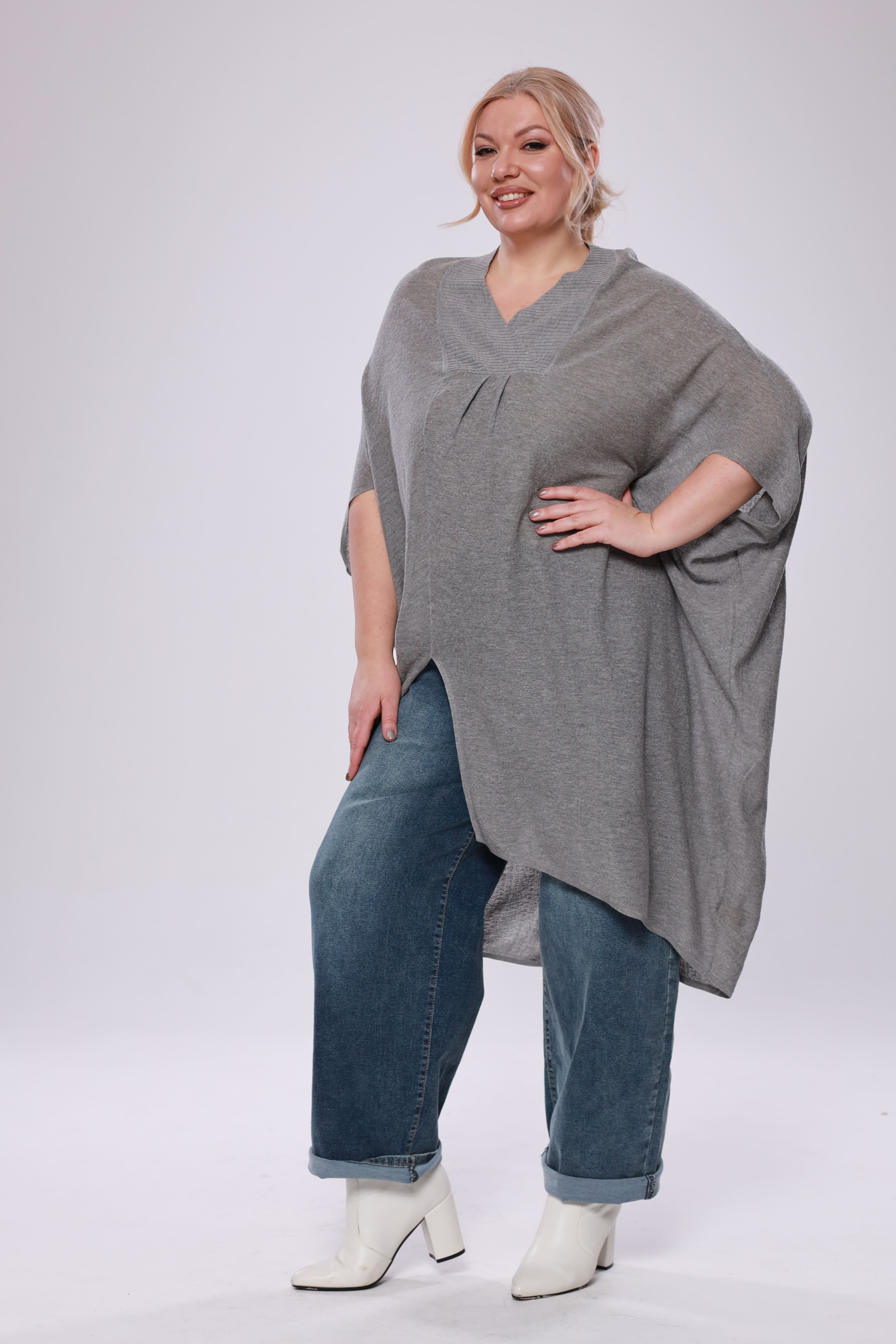 Туника расклешенная с разрезом сбоку серая