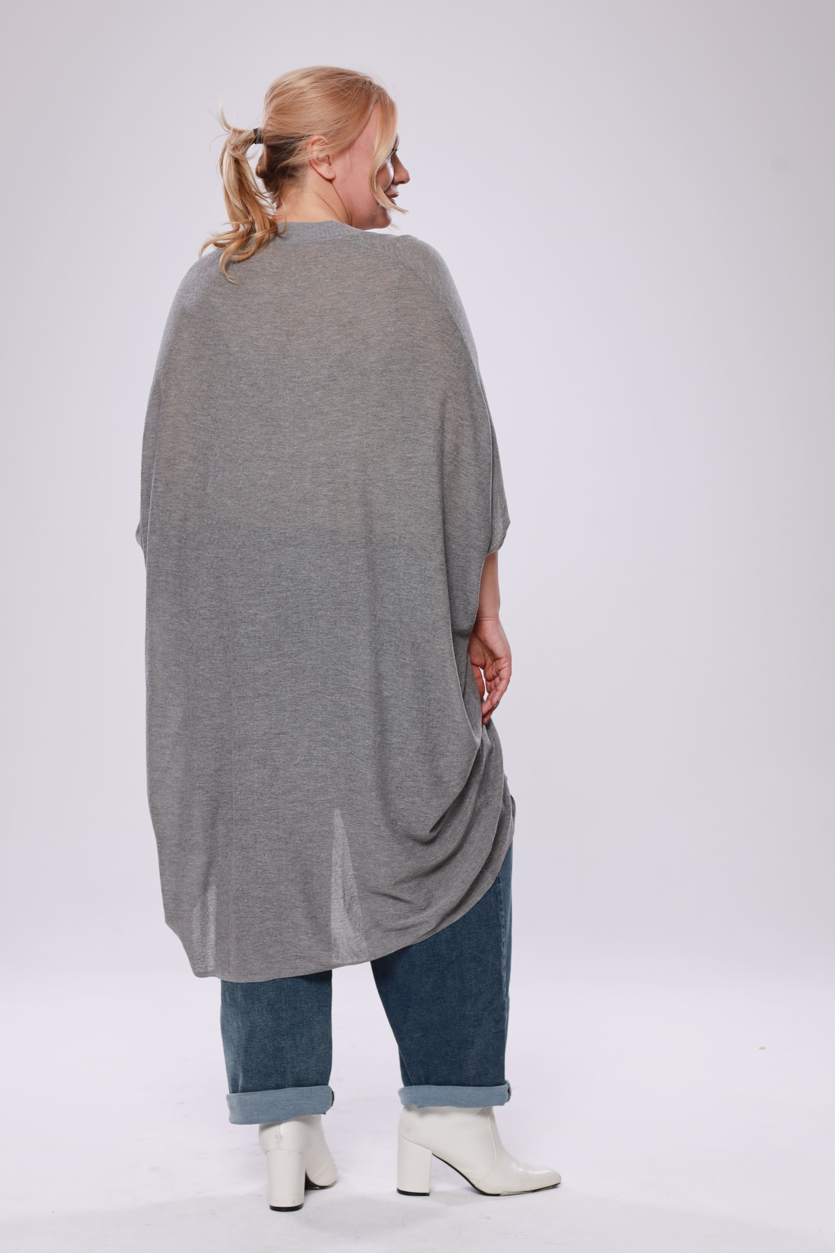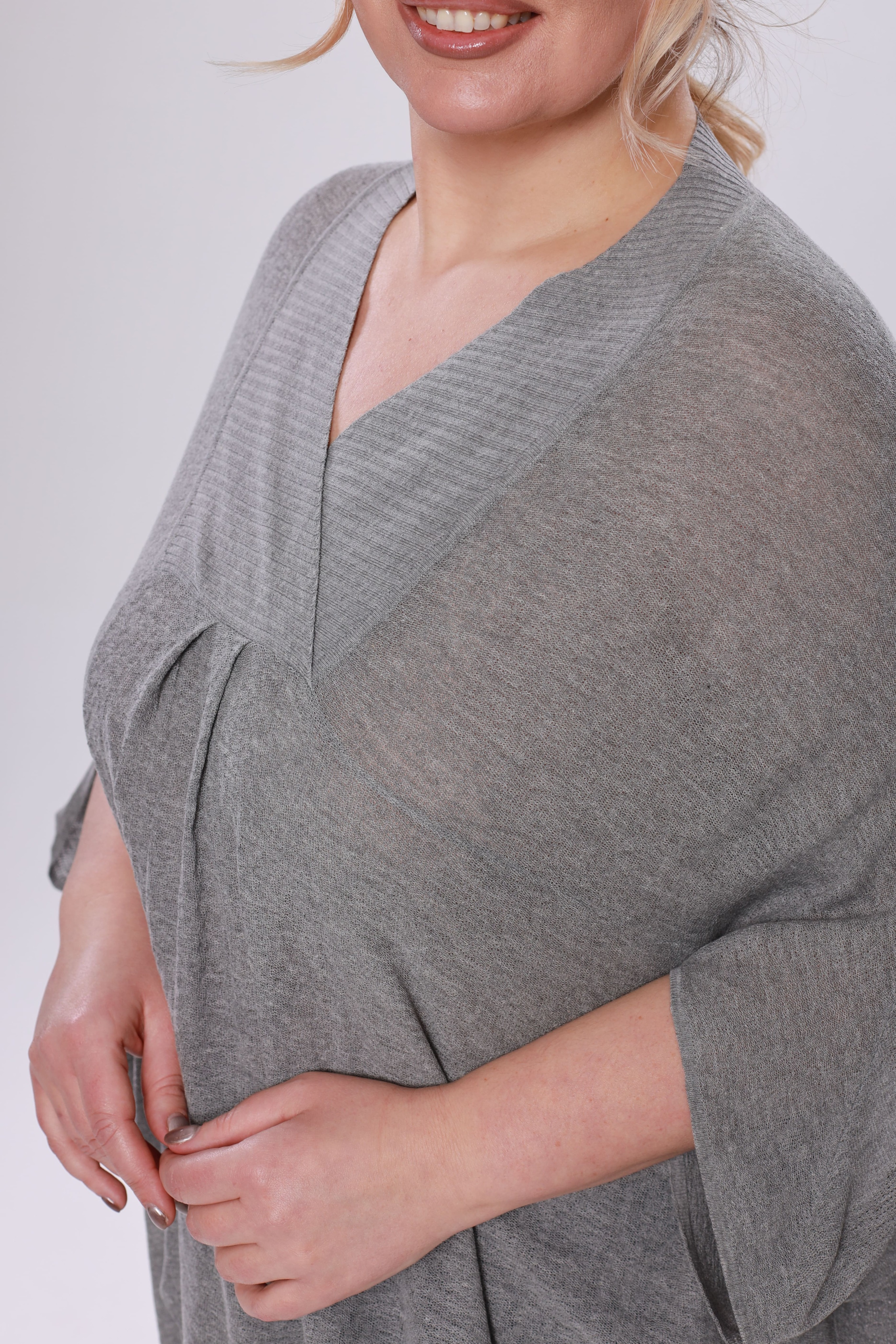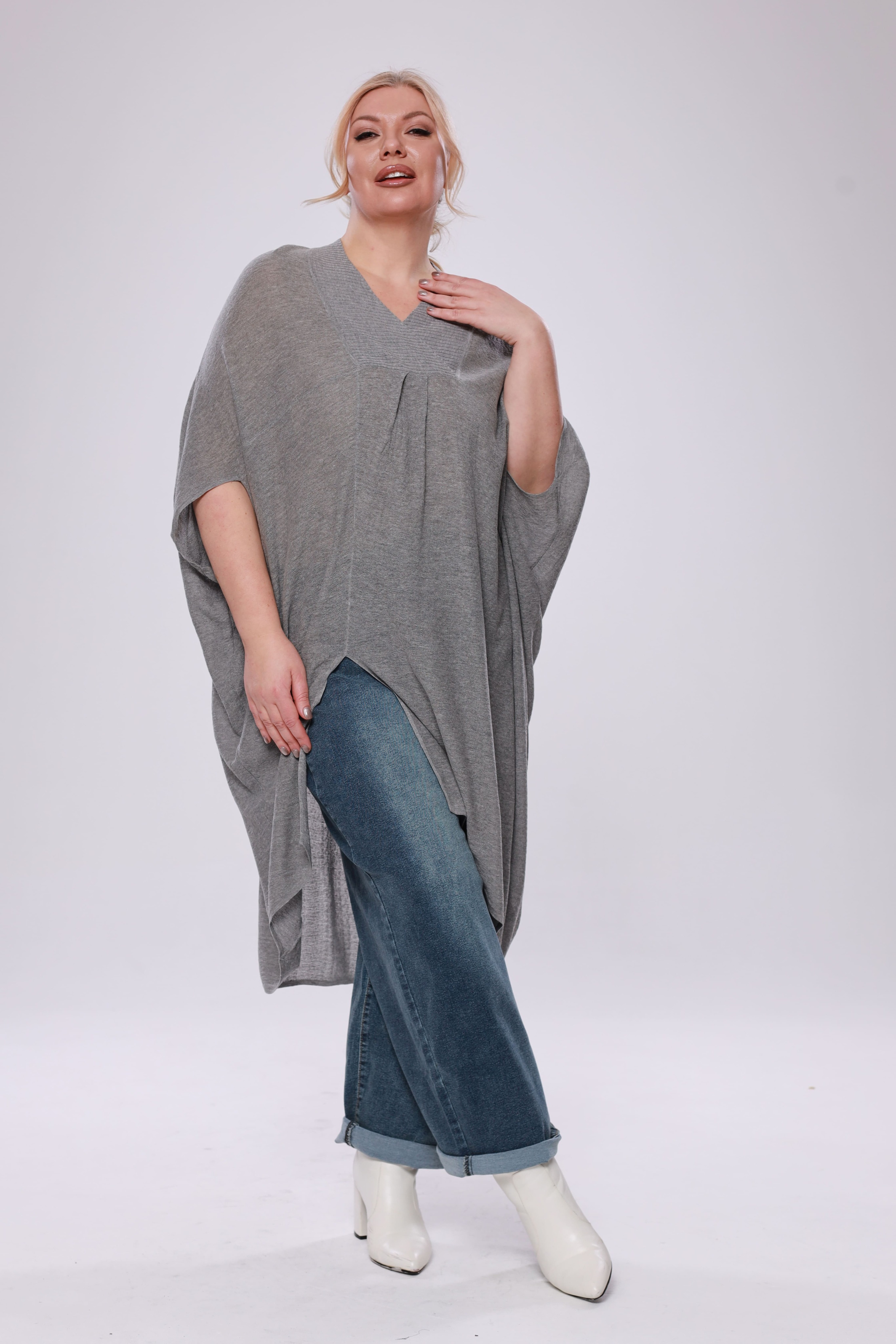 Туника расклешенная с разрезом сбоку серая