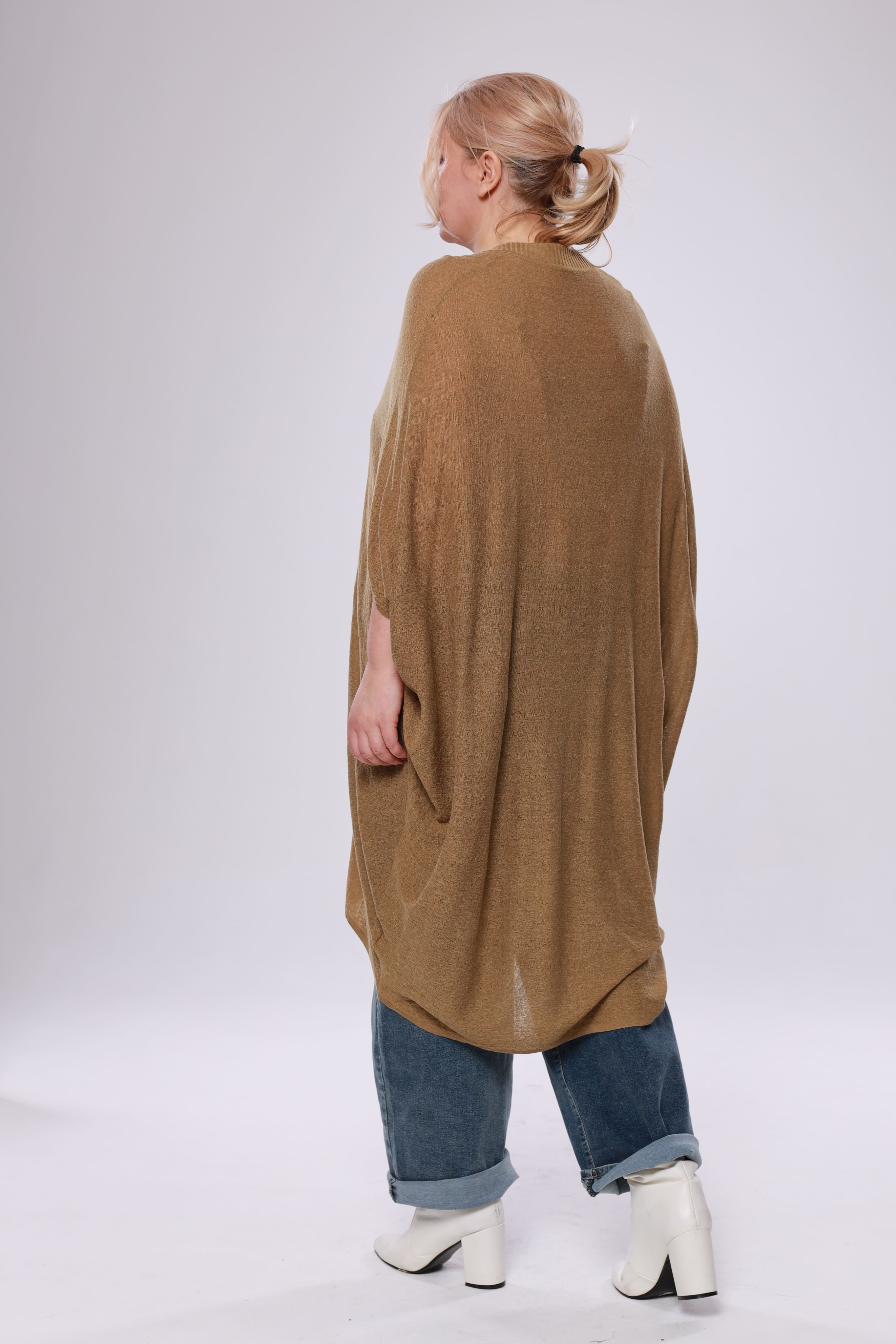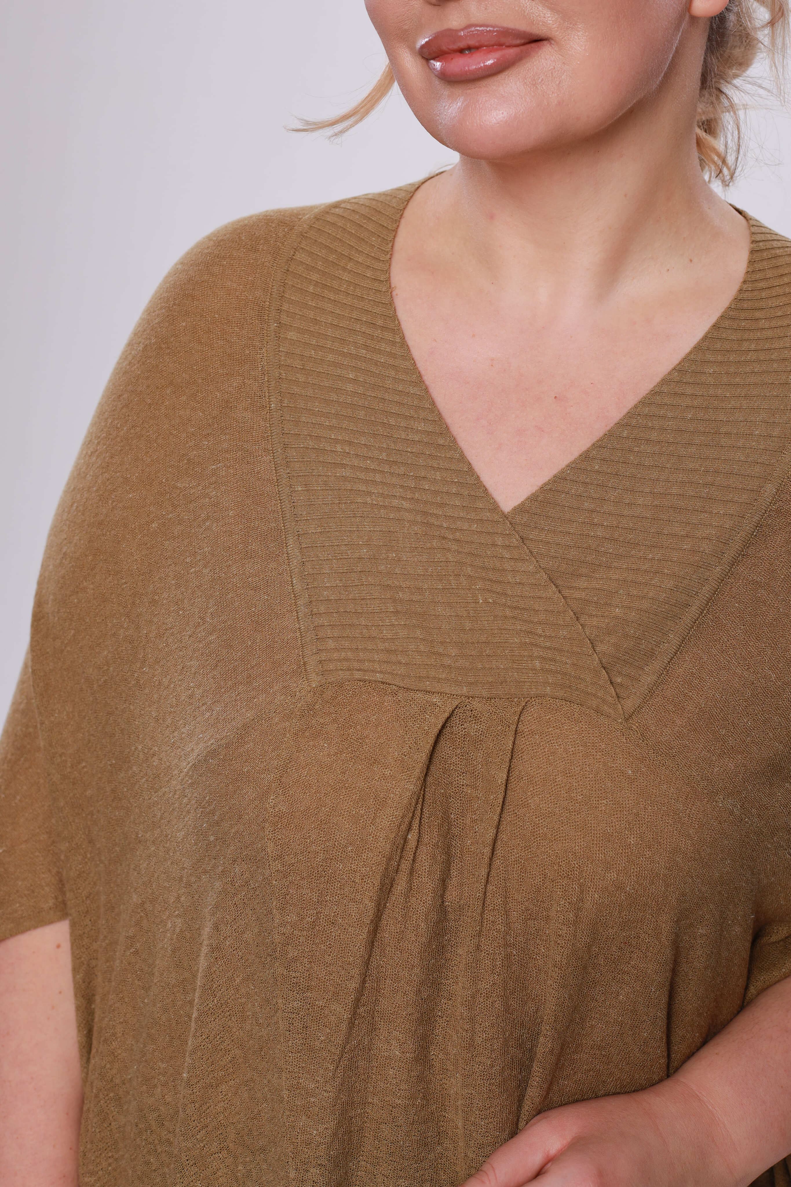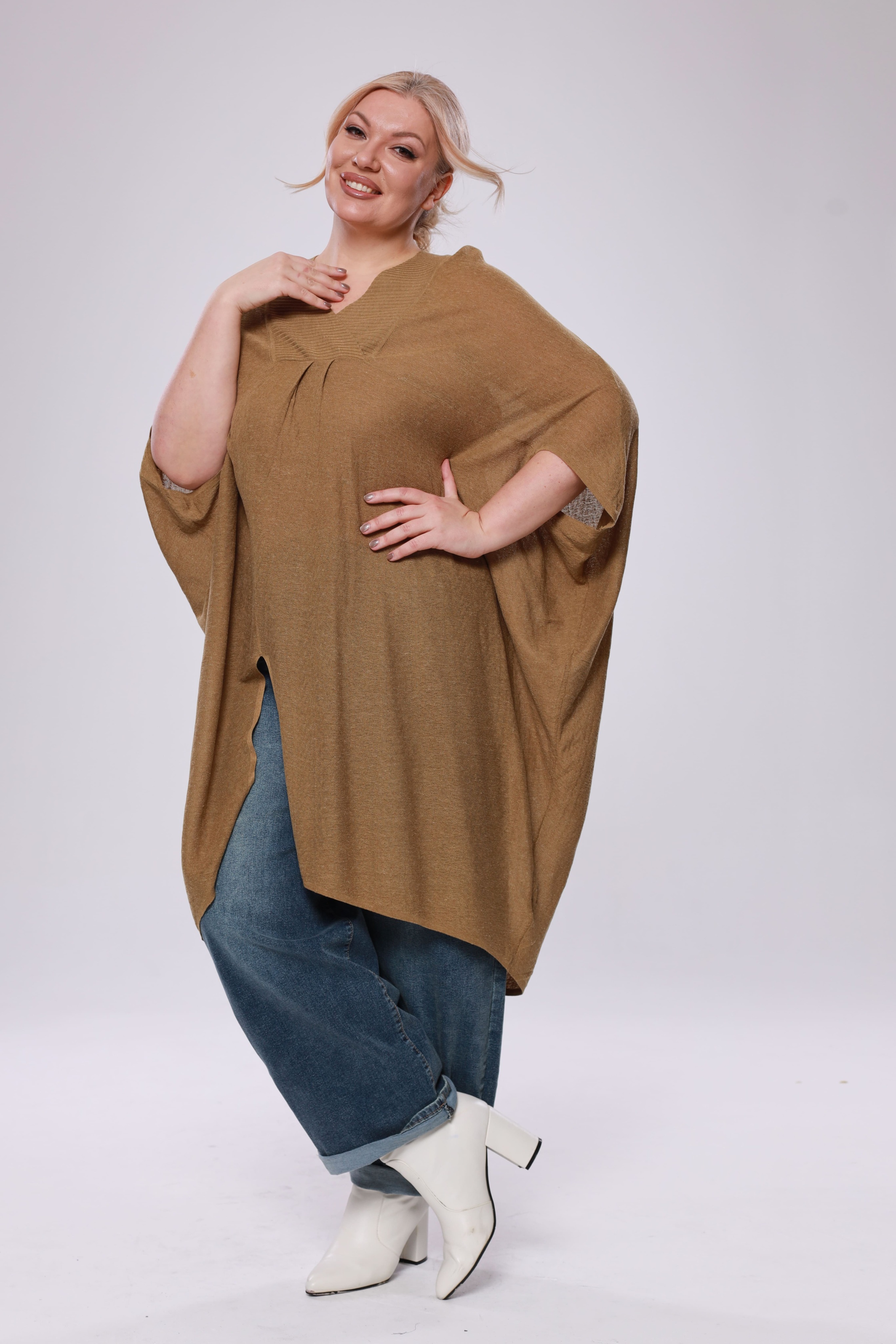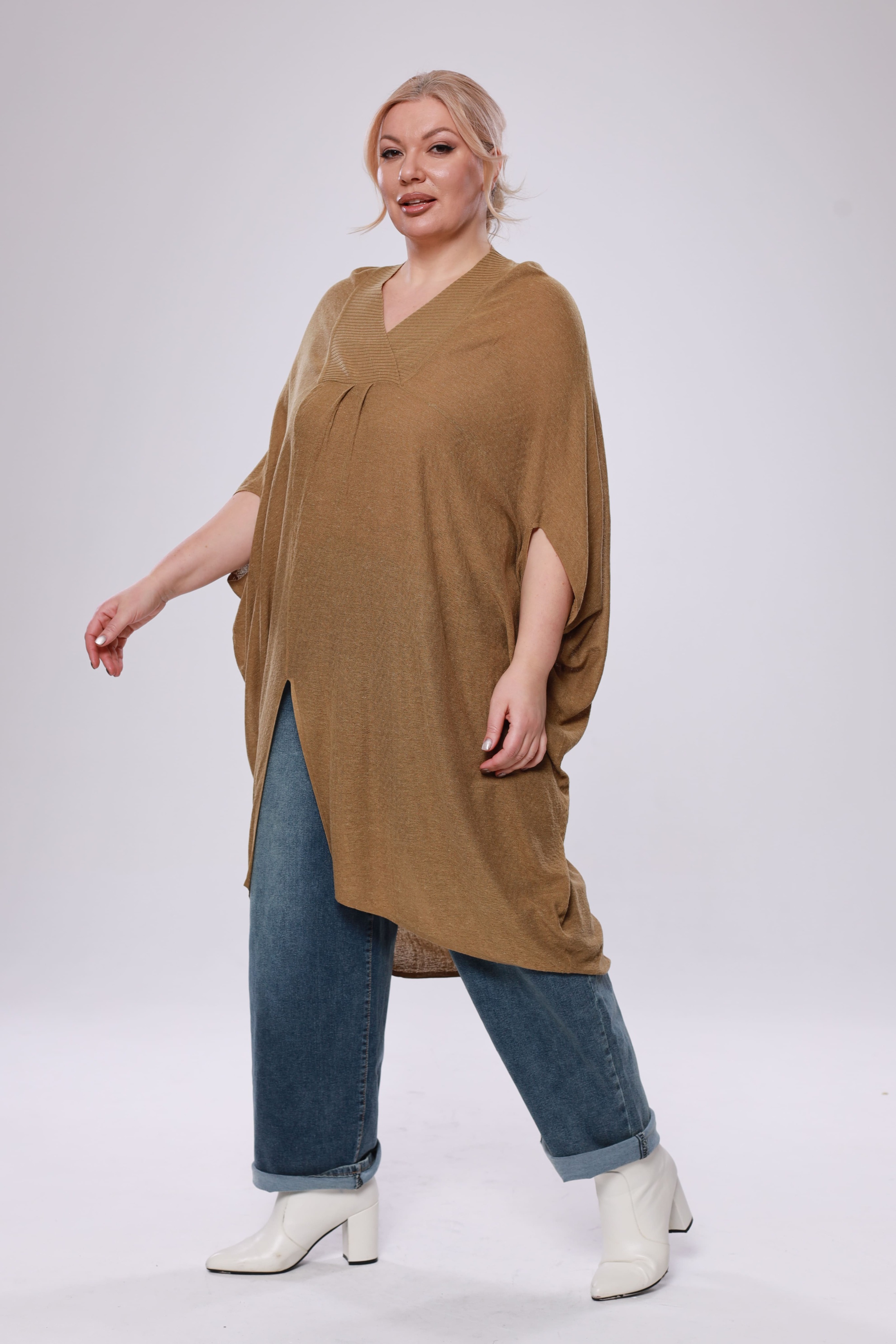 Туника расклешенная с разрезом сбоку горчичная