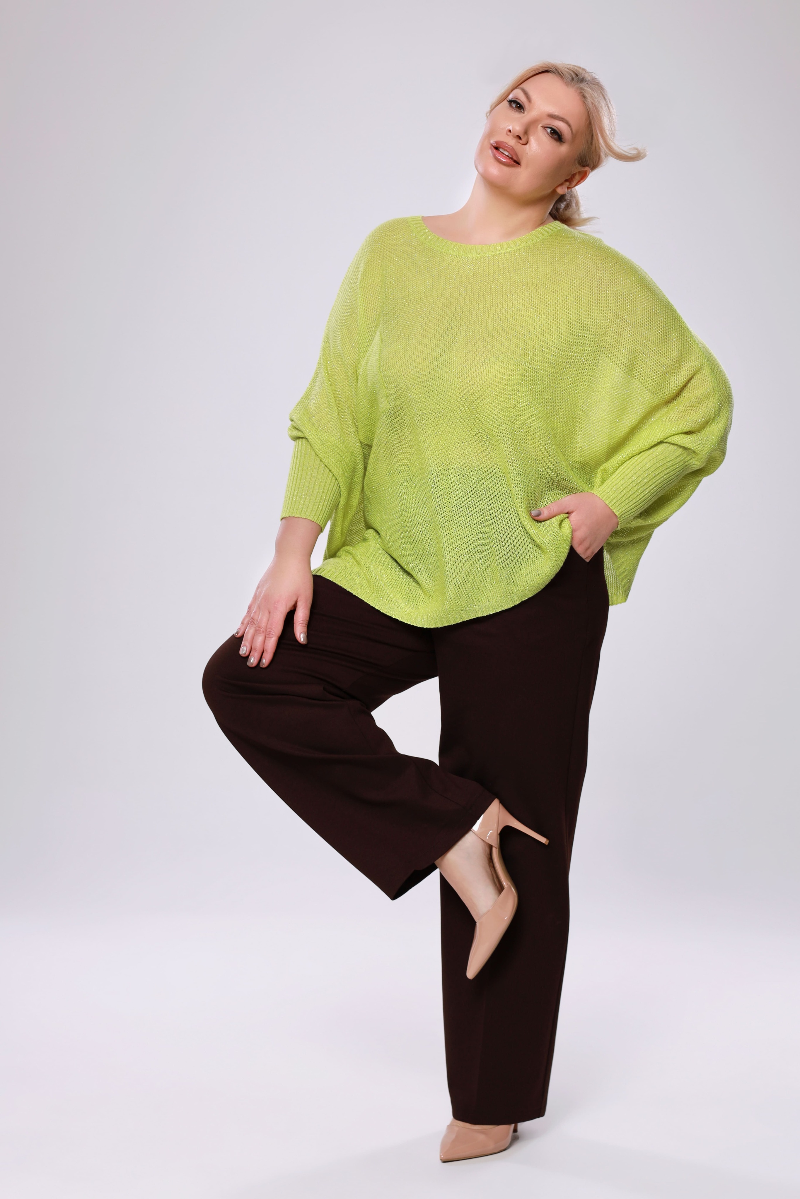 Туника с манжетом и карманом на груди лайм