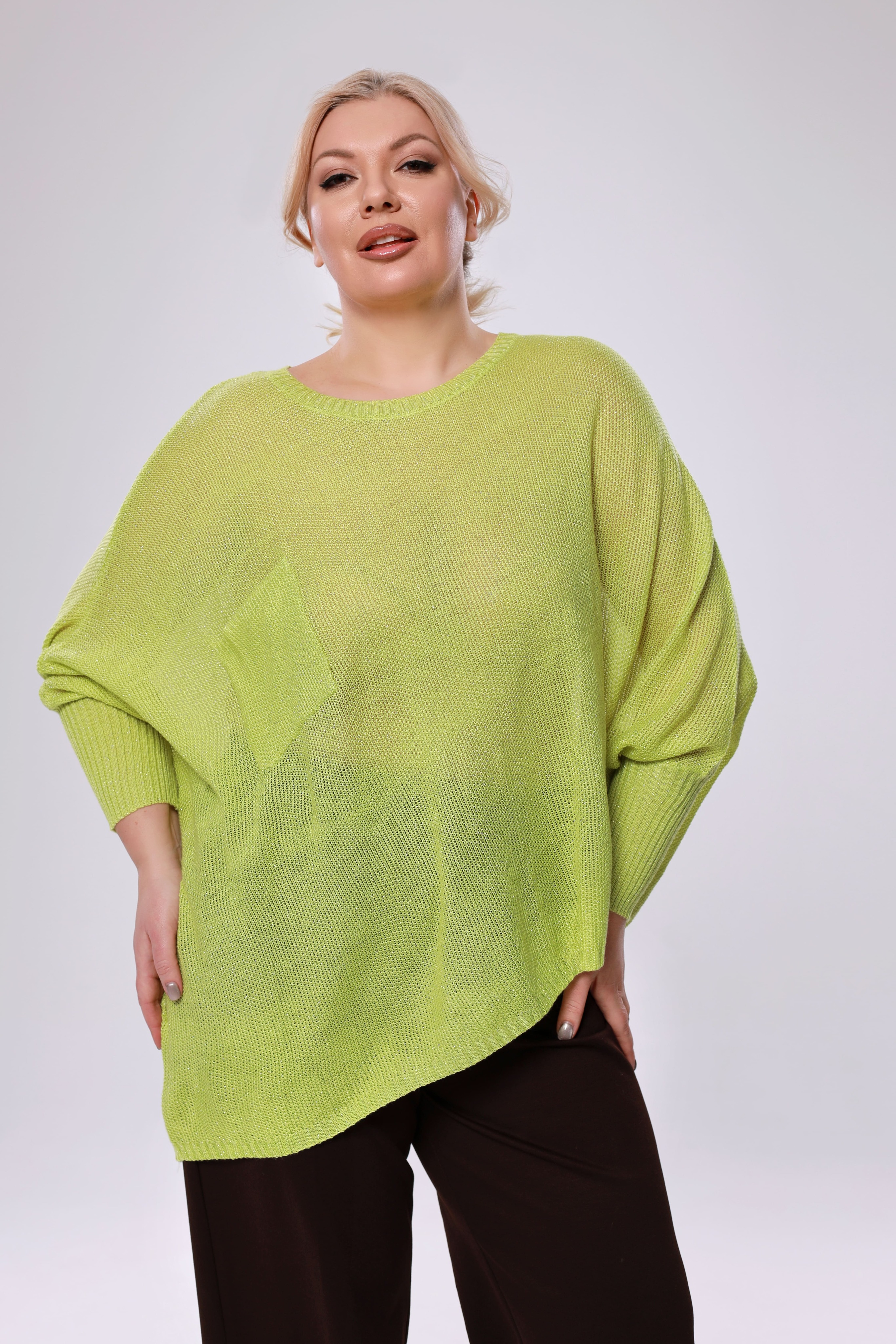 Лаконичная туника из мягкого трикотажа свободного кроя. модель имеет круглый вырез и широкие цельнокроеные рукава полной длины с широкими манжетами по низу. мягкий материал струится вдоль тела, искусно обыгрывая силуэт и скрывая недостатки. зауженный низ туники способствует оптимальной посадке по фигуре. накладной карман на груди добавляет оригинальности. модель прекрасный вариант, чтобы разнообразить гардероб чем-то красивым и теплым. туника отлично сочетается с юбками, узкими брюками и леггинсами.