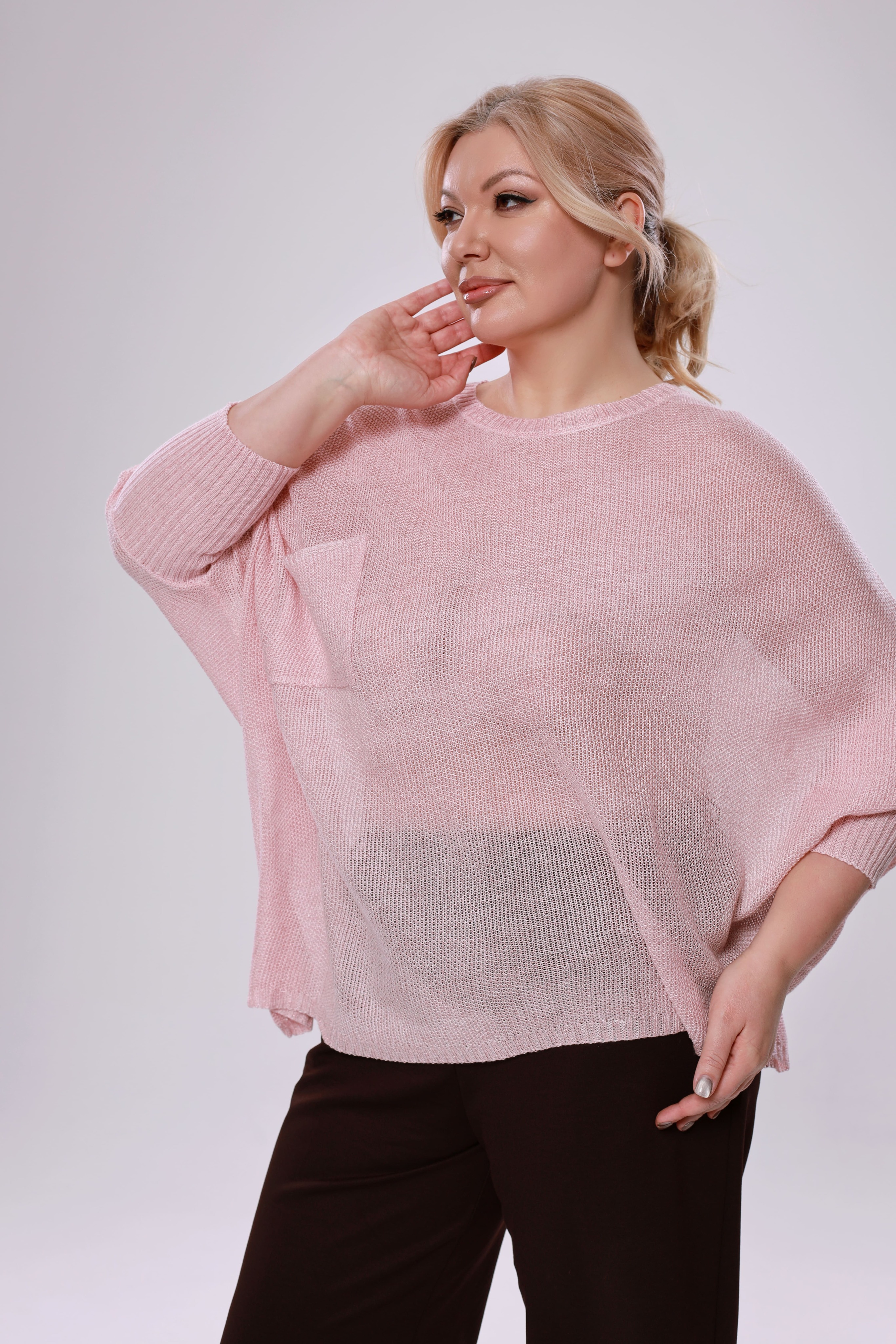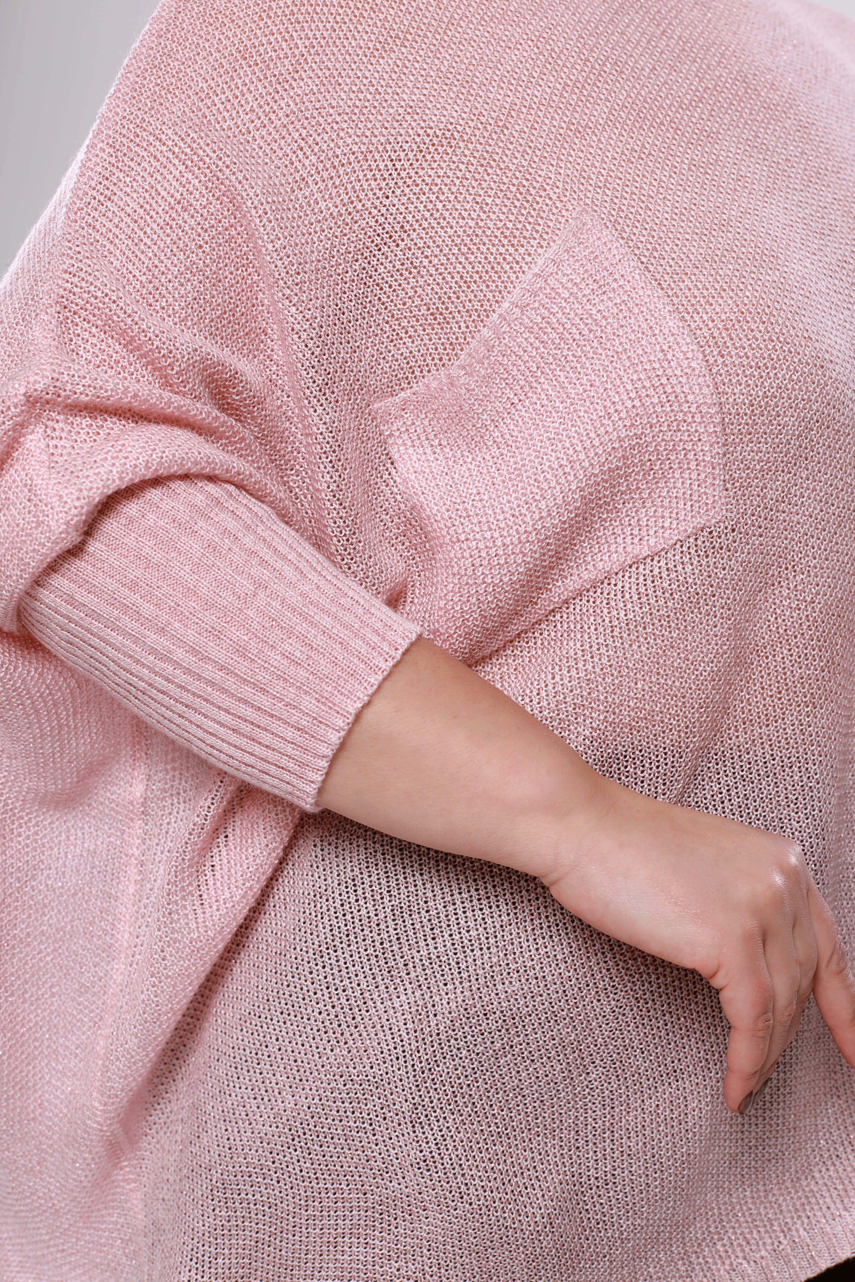 Туника с манжетом и карманом на груди розовая