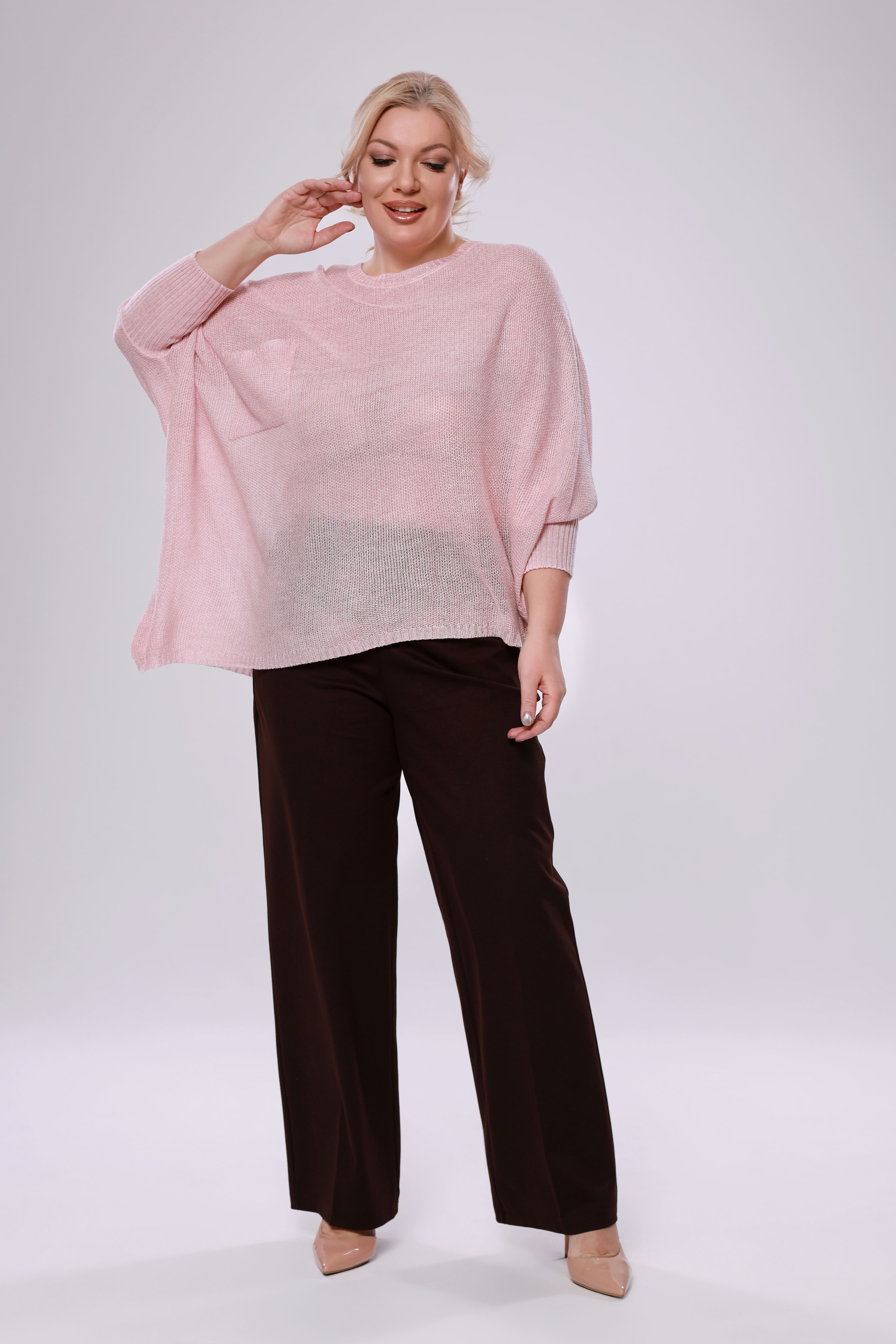 Лаконичная туника из мягкого трикотажа свободного кроя. модель имеет круглый вырез и широкие цельнокроеные рукава полной длины с широкими манжетами по низу. мягкий материал струится вдоль тела, искусно обыгрывая силуэт и скрывая недостатки. зауженный низ туники способствует оптимальной посадке по фигуре. накладной карман на груди добавляет оригинальности. модель прекрасный вариант, чтобы разнообразить гардероб чем-то красивым и теплым. туника отлично сочетается с юбками, узкими брюками и легинсами.