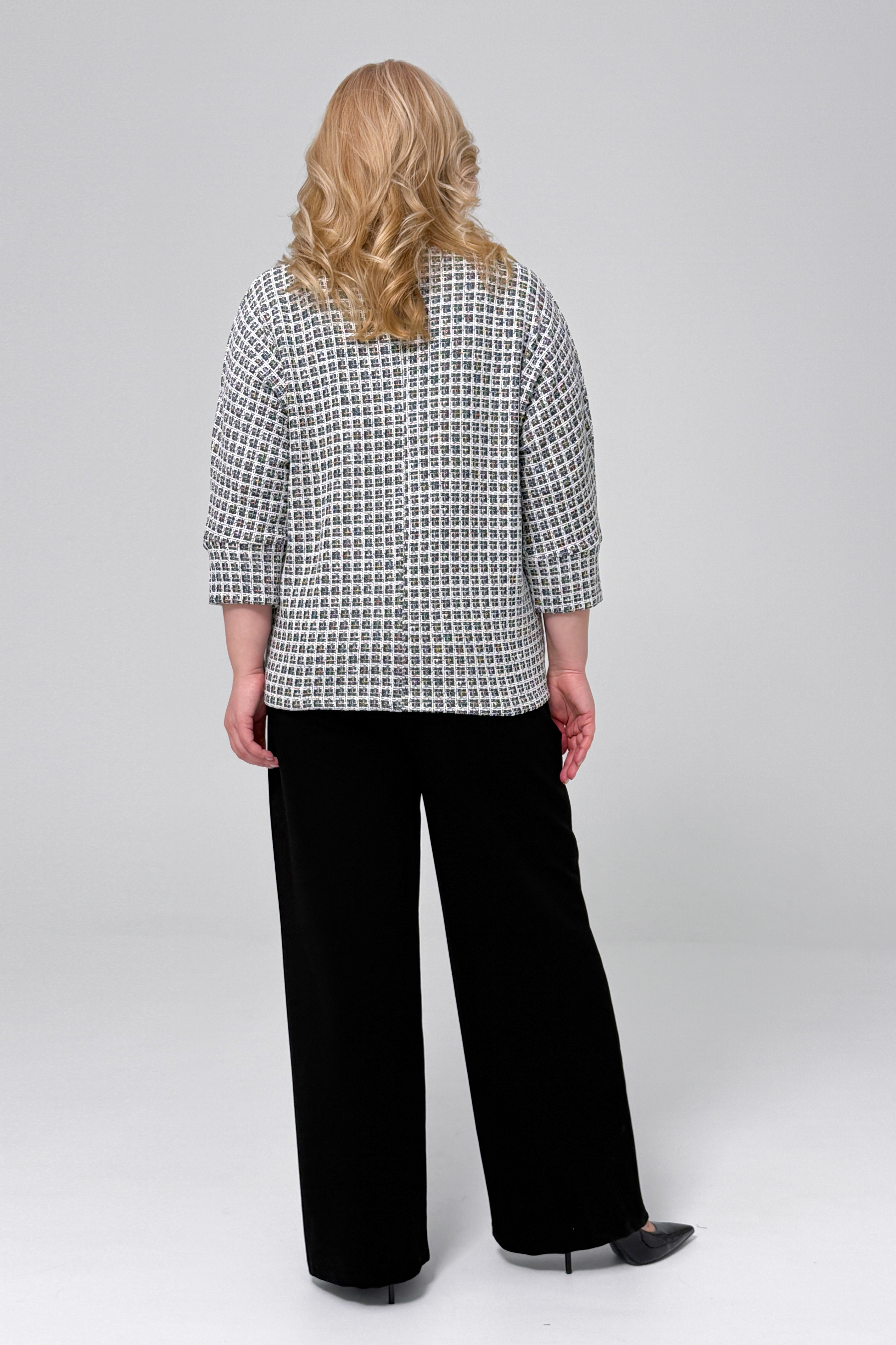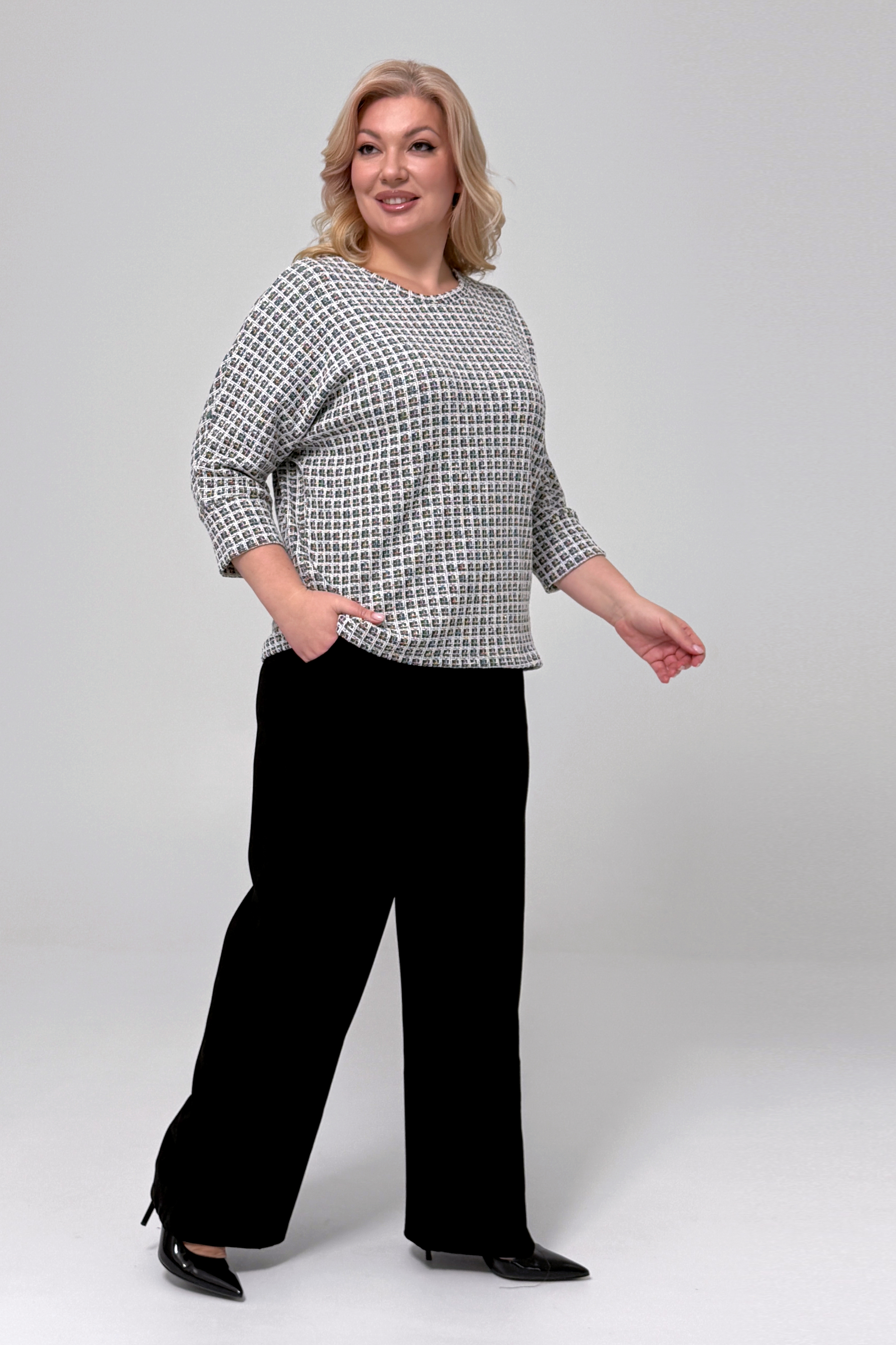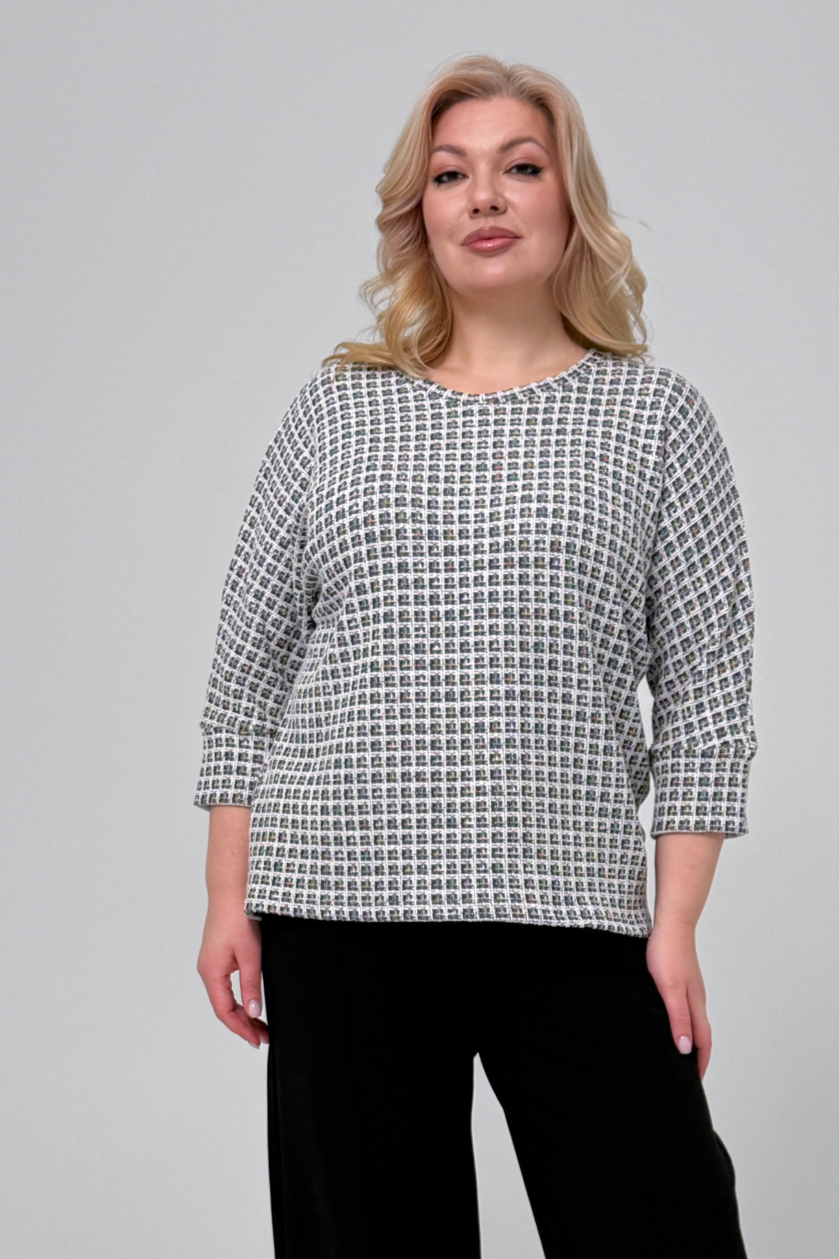 Туника свободного кроя из мягкого материала. имеет круглый вырез с узким кантом по краям и цельнокроеные рукава длиной 3/4 с широкой манжетой по низу. фактурный материал с легкой люрексной нитью освежает образ и добавляет нарядности. материал мягко струится вдоль тела, искусно обыгрывая силуэт и скрывая недостатки. модель отлично сочетается с узкими брюками и легинсами.