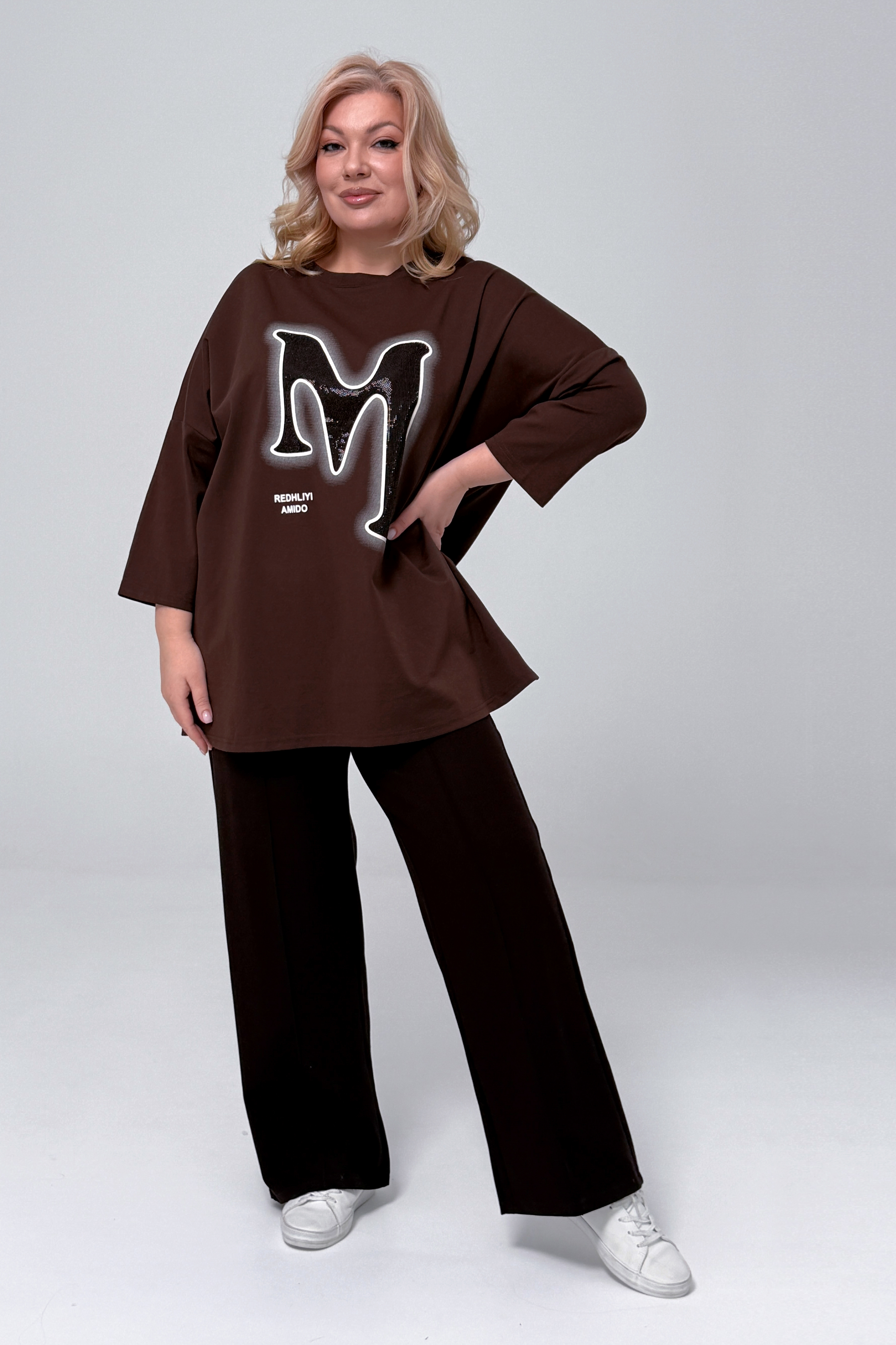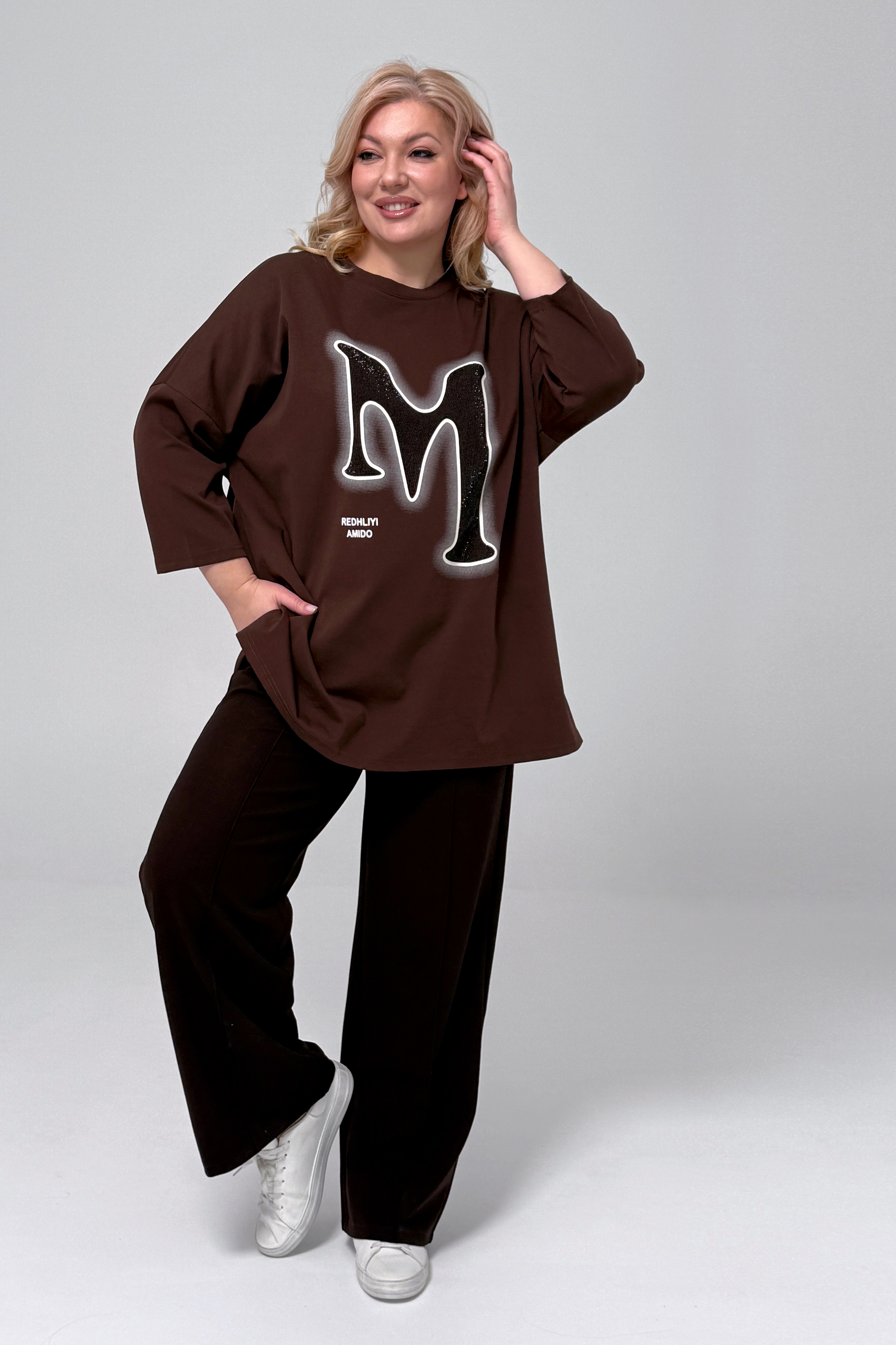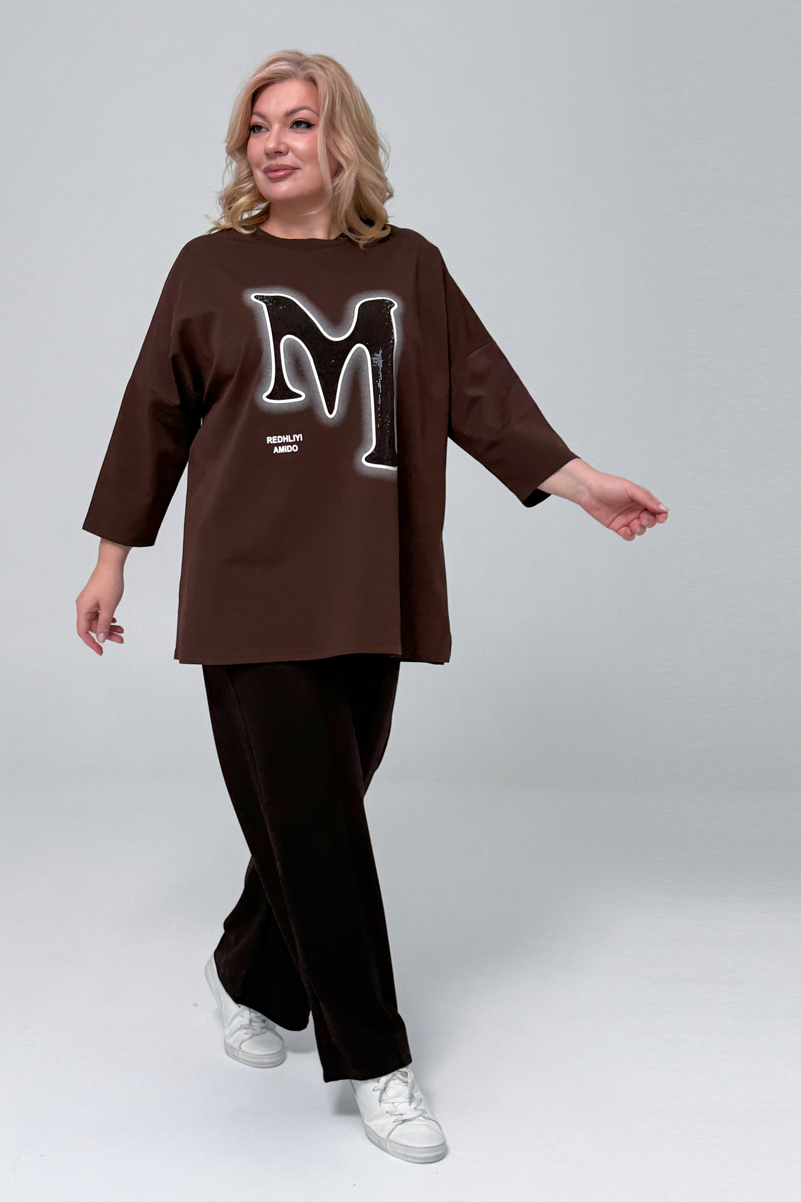 Туника удлиненная с графическим принтом "м" шоколад