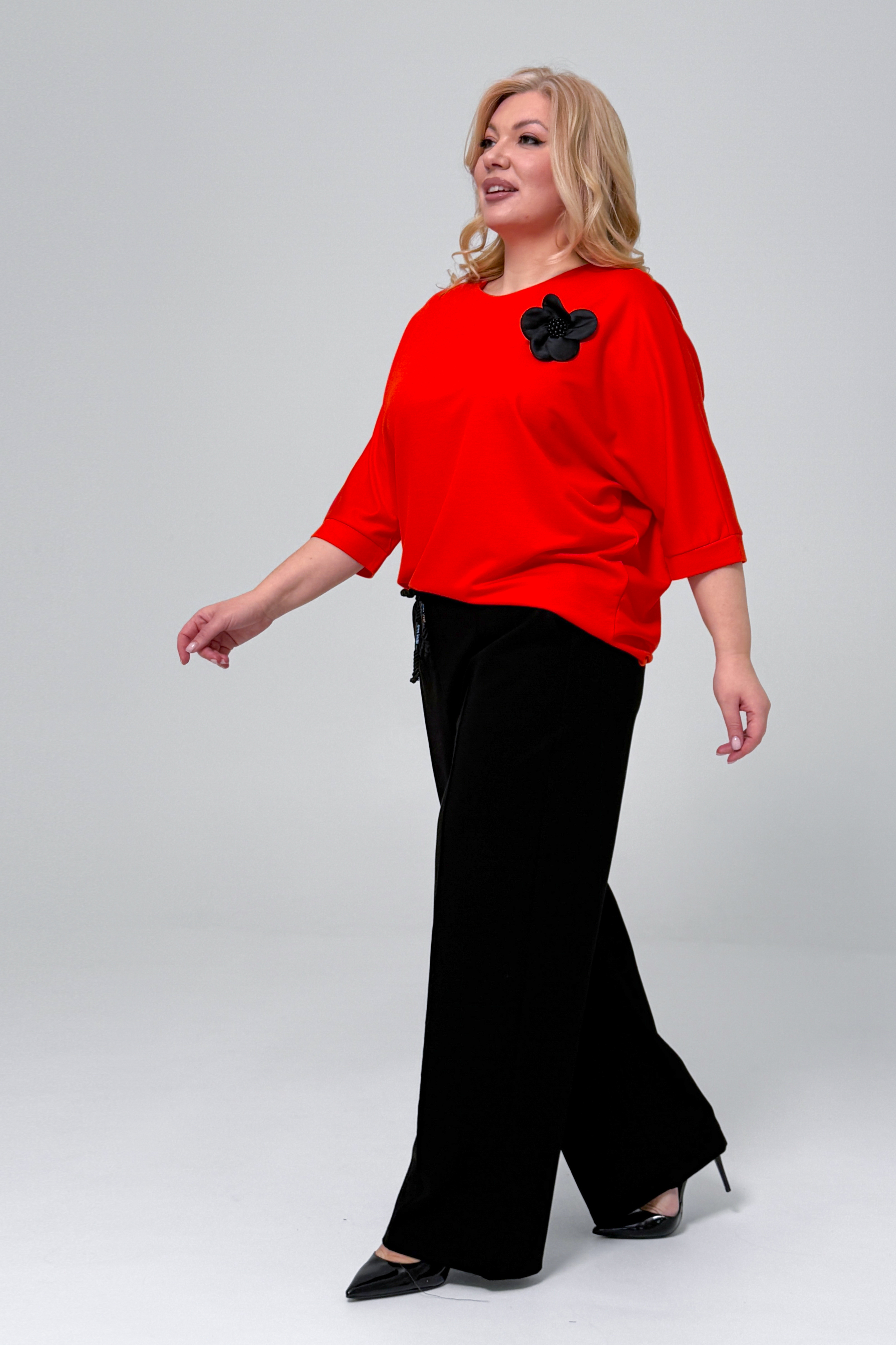Туника свободного кроя из мягкого материала. имеет круглый вырез и цельнокроеные рукава длиной 3/4 с небольшим кантом по краям. центральный шов по спинке и зауженный низ туники обеспечивают оптимальную посадку по фигуре. съемная брошь на груди добавляет оригинальности и нарядности. материал мягко струится вдоль тела, искусно обыгрывая силуэт и скрывая недостатки. модель отлично сочетается с узкими брюками, легинсами и юбками.