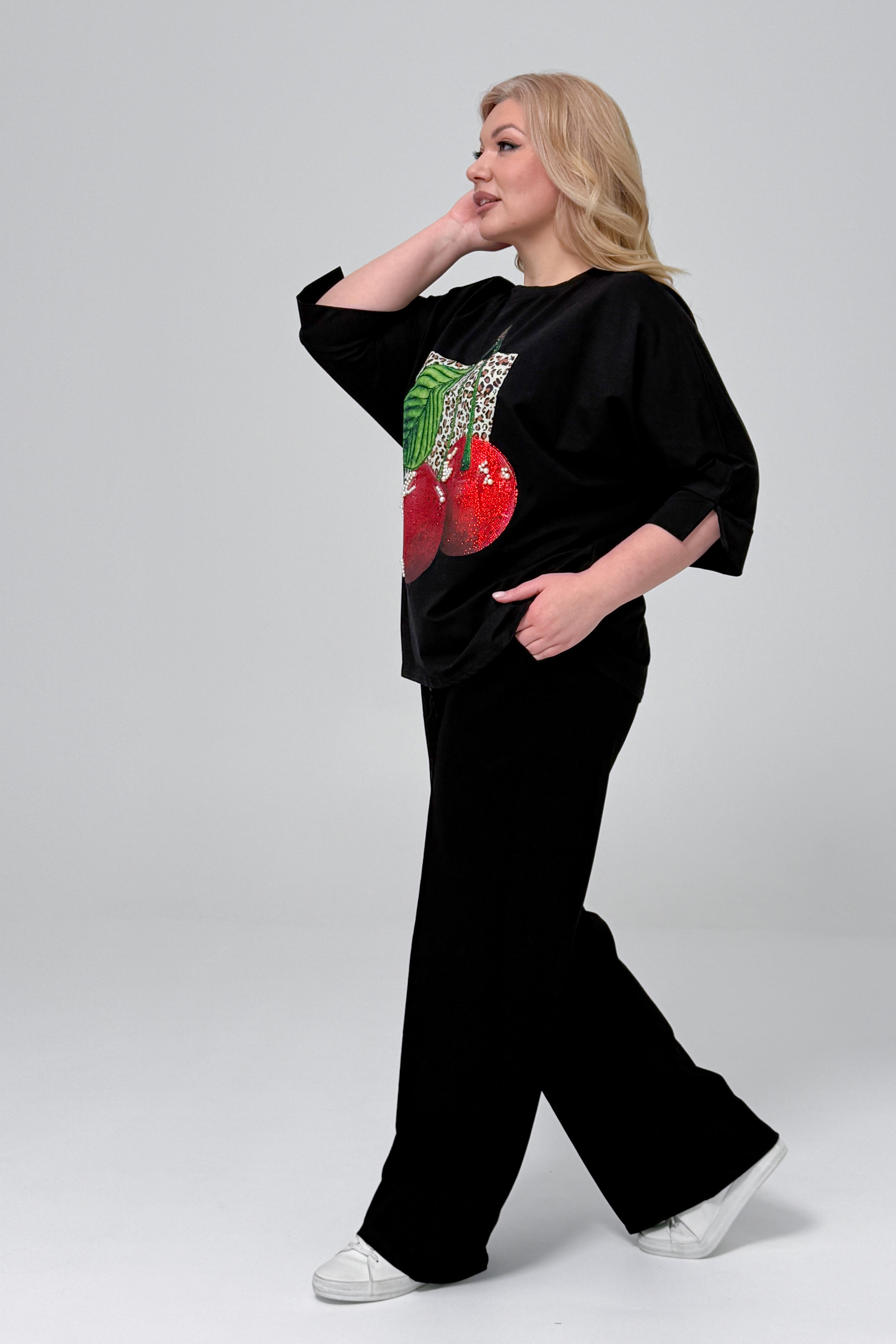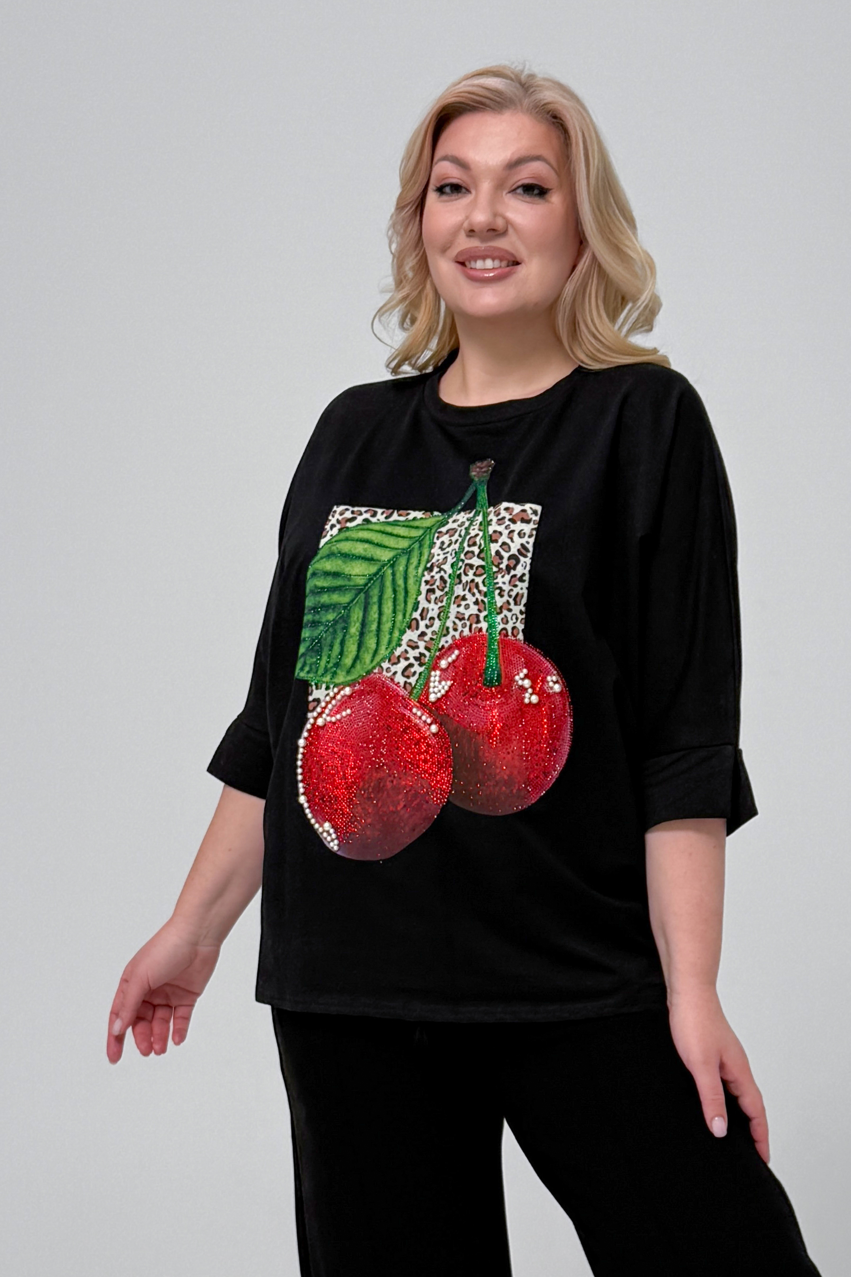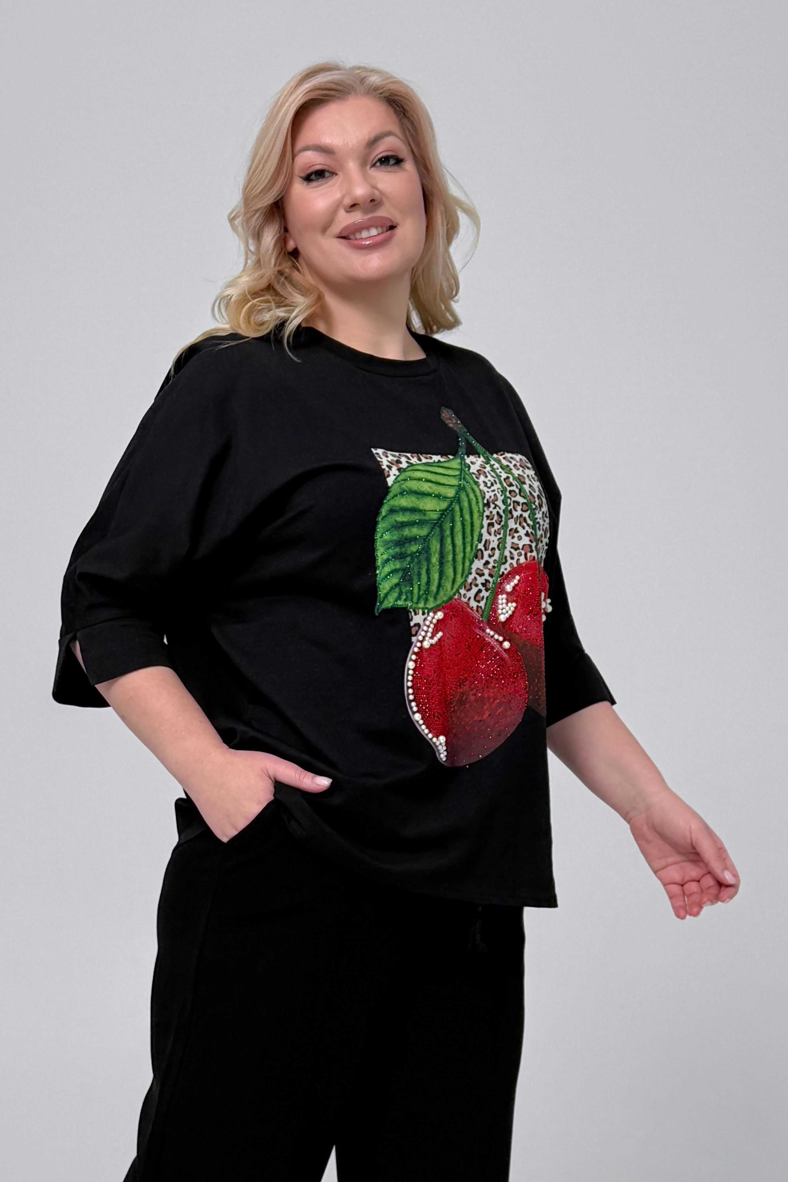 Красивая и удобная туника из мягкого,приятного телу трикотажа. имеет круглый вырез с узким кантом. цельнокроеные рукава длиной 3/4 декорированы широким кантом и небольшими разрезами по бокам. центральный шов по спинке способствует оптимальной посадке по фигуре. модный рисунок из страз и бусин на груди освежает образ и добавляет нарядности. прорезные карманы с листочками из страз по бокам добавляют практичности и функциональности. свободный крой добавляет легкости и комфорта не сковывая движений. отлично подходит для комбинирования с узкими брюками и легинсами.