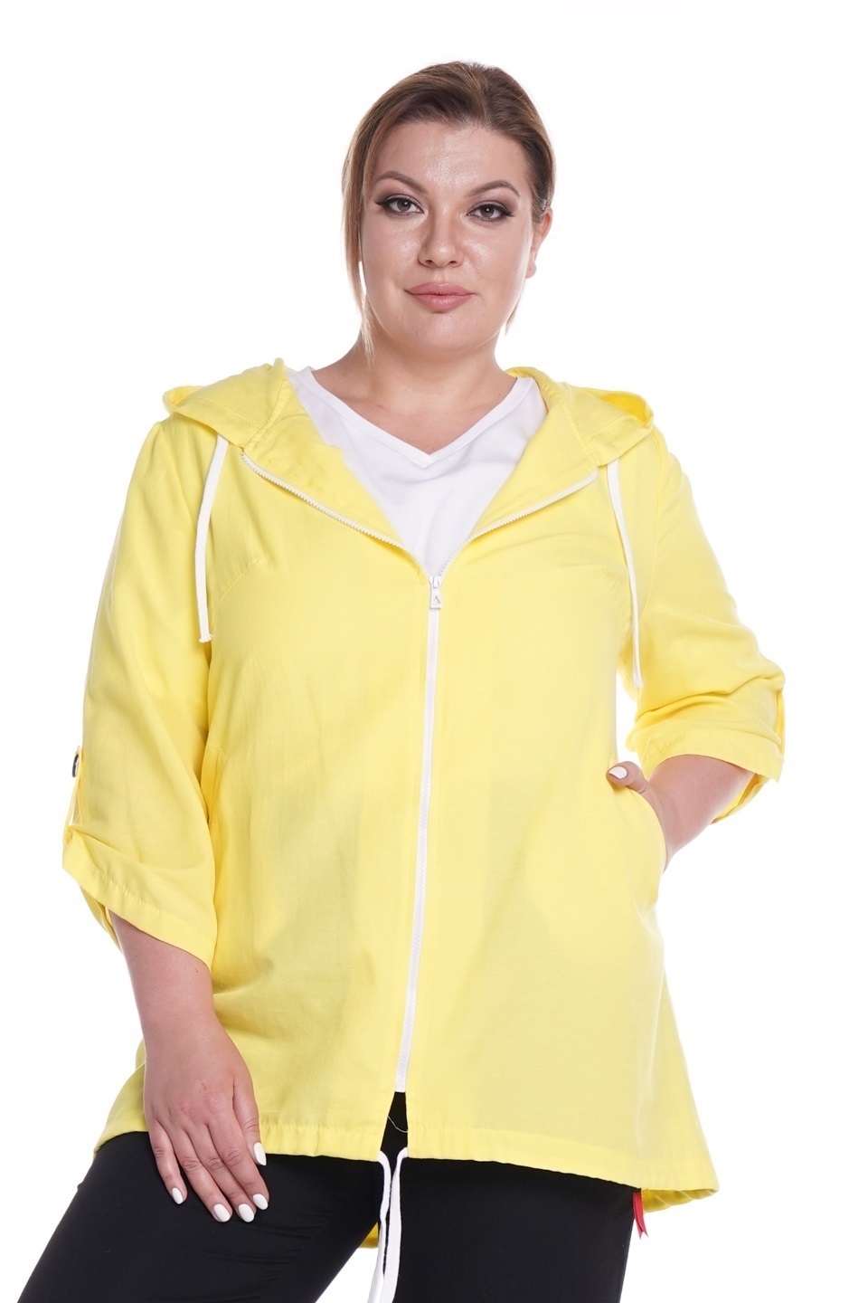 Стильная ветровка из мягкой ткани с крэш эффектом. модель свободного силуэта с удлиненной спинкой. застёгивается по всей длине на молнию. круглый вырез дополнен большим капюшоном на шнурках-завязках. актуальный нежный цвет ветровки добавляет образу женственности и освежает его. рукава длиною 3/4 присобраны патами. по бокам практичные вшивные карманы. обладая достаточно свободным кроем, модель не сковывает движений и скрывает возможные несовершенства фигуры. в прохладную погоду ветровка не только защитит от холода, но и поможет оставаться стильной и женственной.