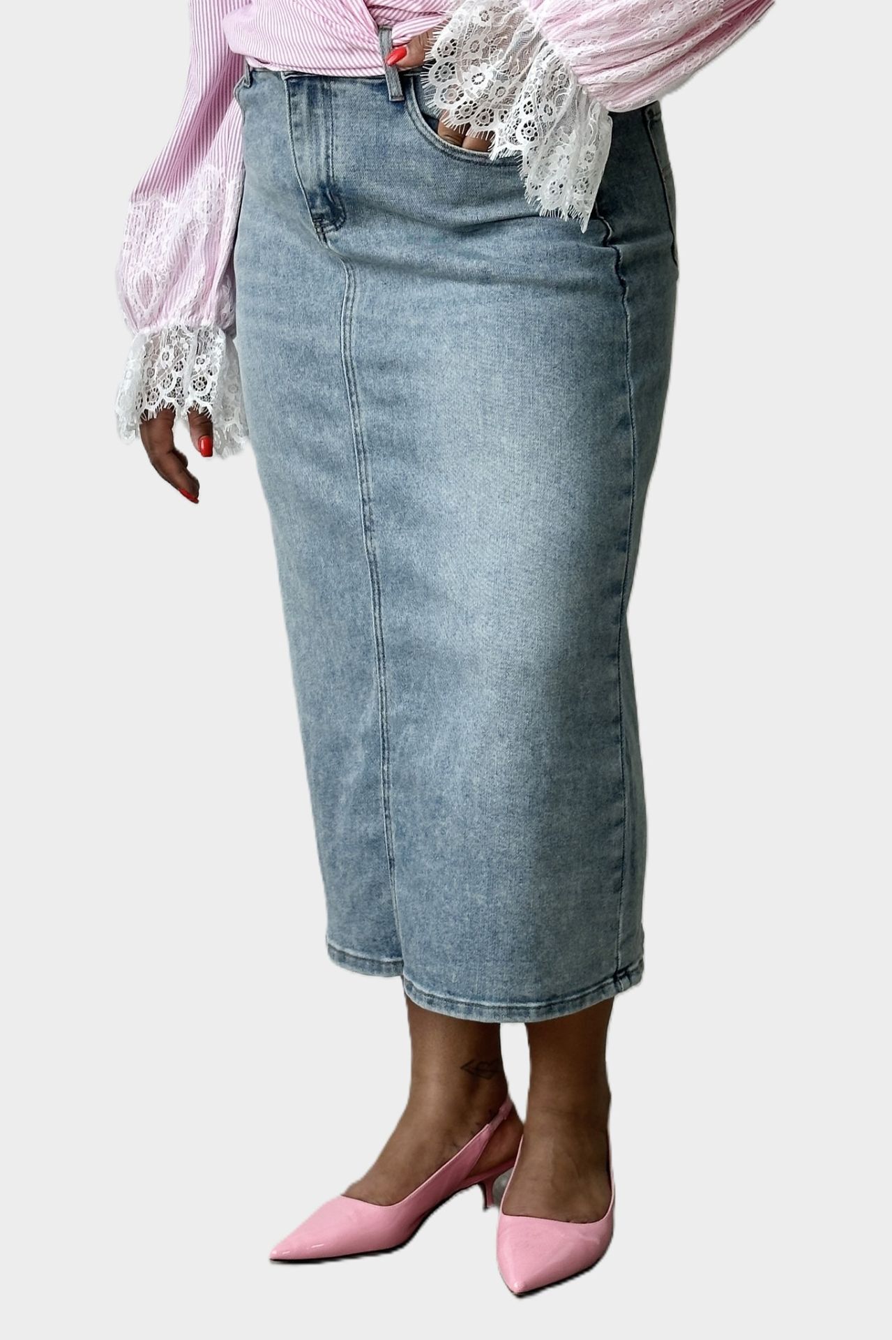 Юбка джинсовая с потертостью светло-голубая