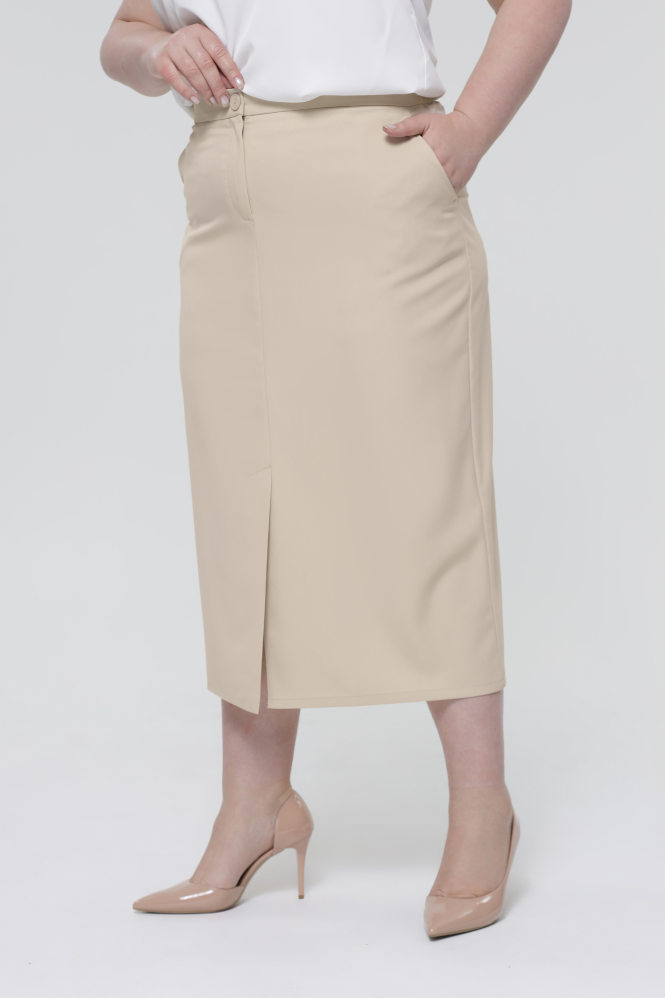 Элегантная юбка-карандаш из мягкой ткани с добавлением стрейча. модель отлично сидит за счет притачного пояса. боковые карманы с отрезным бочком добавляют юбке практичности и функциональности. модель с комфортной посадкой не сковывает движений, застегивается спереди на пуговицу и скрытую молнию. центральный шов по переду переходит в кокетливую шлицу. всесезонная, практичная, универсальная модель юбки отлично структурирует и собирает фигуру в проблемных местах за счет плотности ткани и конструктивных швов. являясь базовой моделью, удачно сочетается с обувью и одеждой разных стилистических направлений, прекрасно вписываясь как в классический, так и альтернативный гардеробы, создавая актуальные вариативные образы на все случаи жизни.