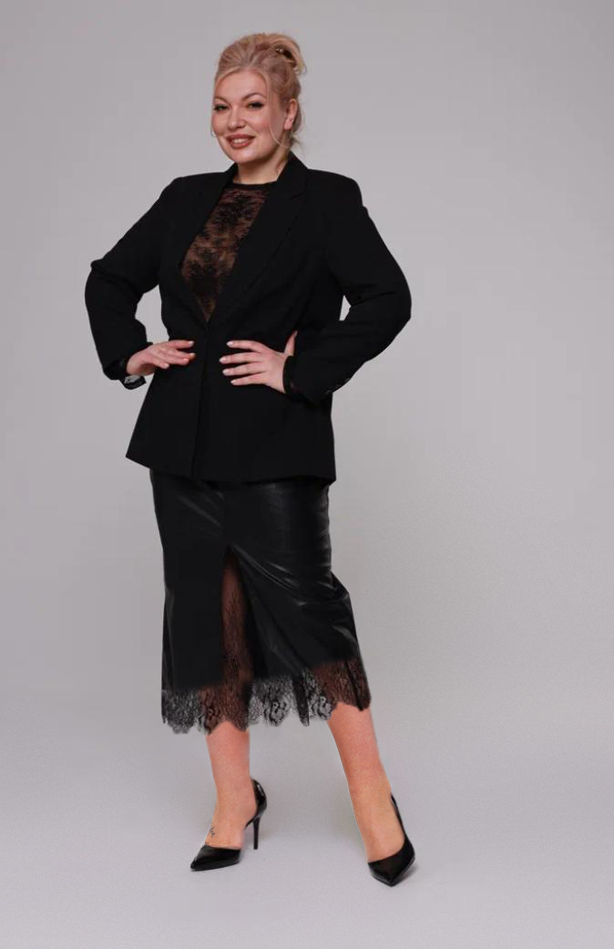 Юбка кружевная миди черная