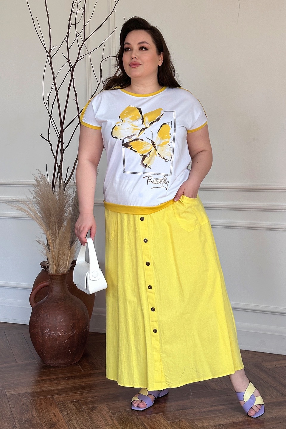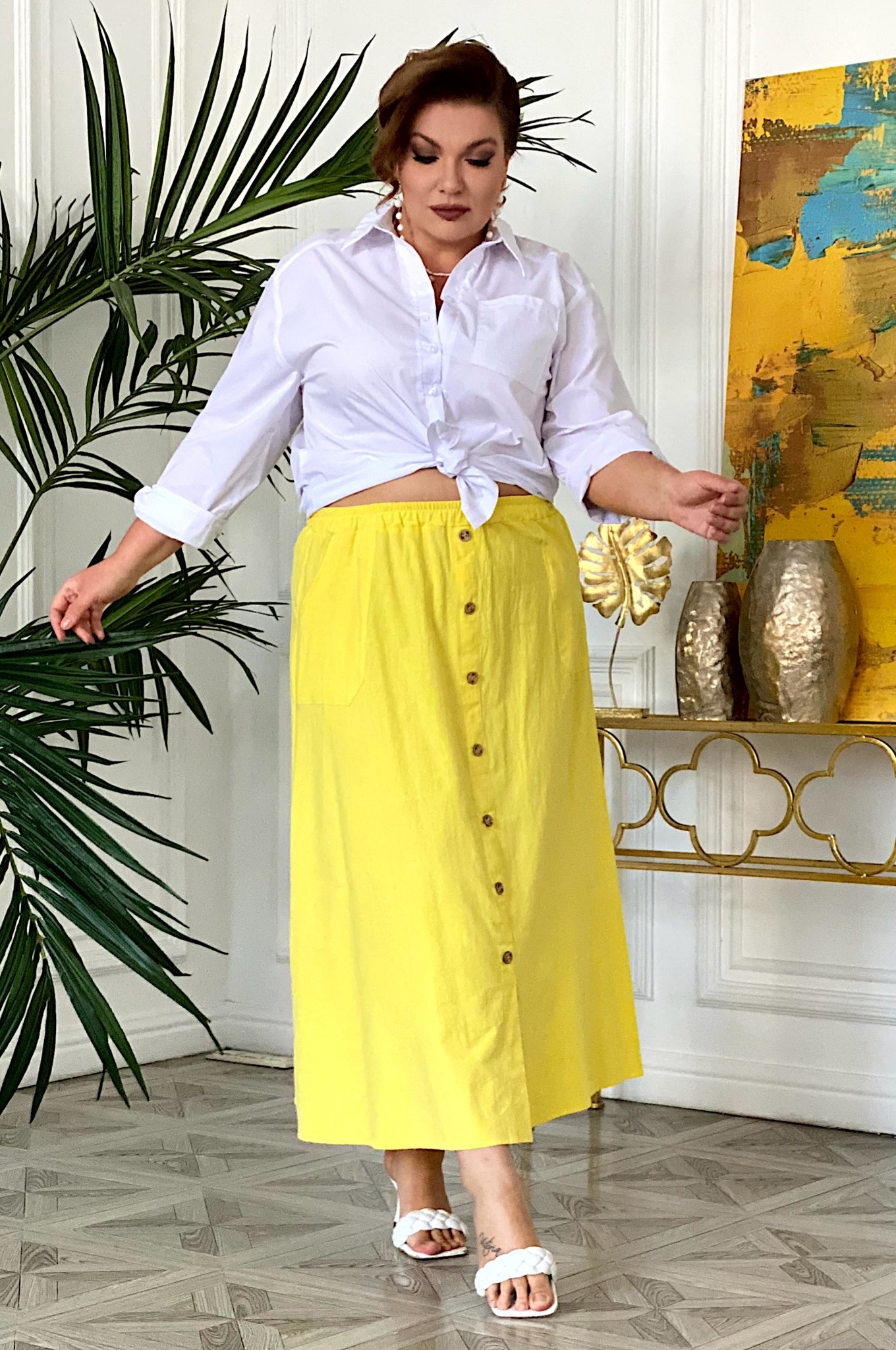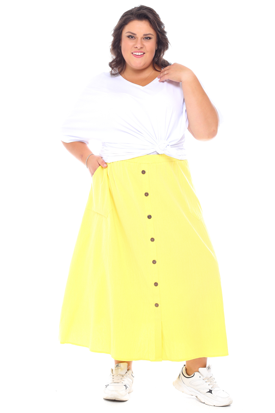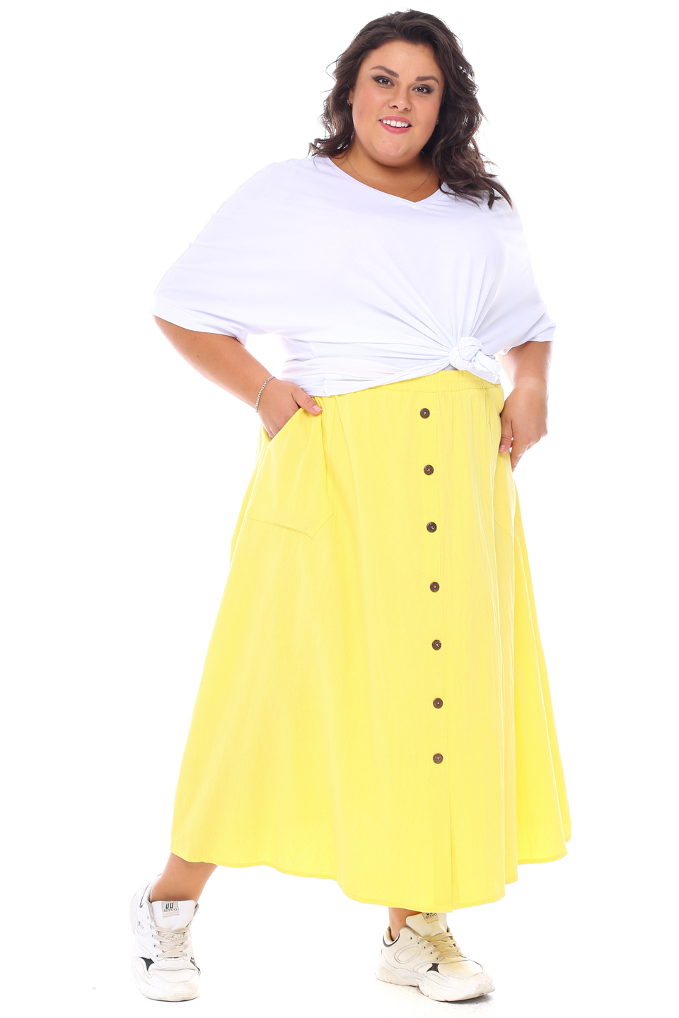 Стильная юбка из мягкой ткани подчеркнет достоинства женской фигуры. широкий притачная резинка по поясу способствует оптимальной посадке по фигуре. расклешенные клинья модели искусно обыгрывают бедра и добавляют образу женственности и романтизма. по бокам практичные карманы. декоративные пуговки по переду добавляют модели нарядности и освежают образ. носить юбку такого плана можно с любимыми футболками, обтягивающими водолазками, блузами и рубашками.
