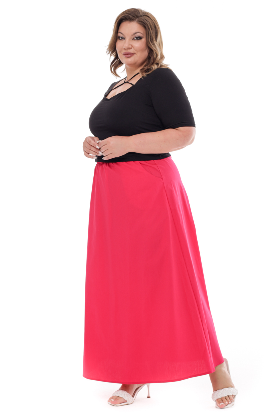 Юбка длинная с завязкой на поясе малина