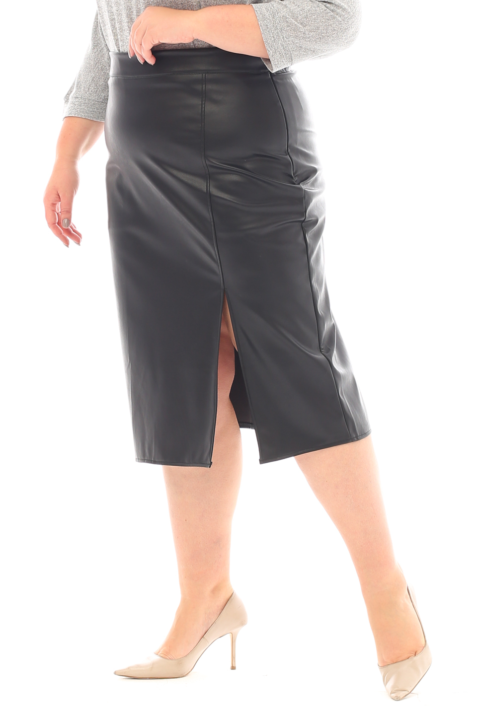 Стильная юбка из мягкой экокожи подчеркнет достоинства женской фигуры. притачной пояс способствует оптимальной посадке по фигуре. декоративный шов сбоку переходит в небольшой кокетливый разрез, что зрительно вытягивает силуэт. модель привлекает стильным дизайном. прямой крой не сковывает движений и искусно обыгрывает бедра. всесезонная, практичная модель отлично структурирует и собирает фигуру в проблемных местах за счет плотности ткани. носить юбку такого плана можно с любимыми свитерами, обтягивающими водолазками, блузами и рубашками.