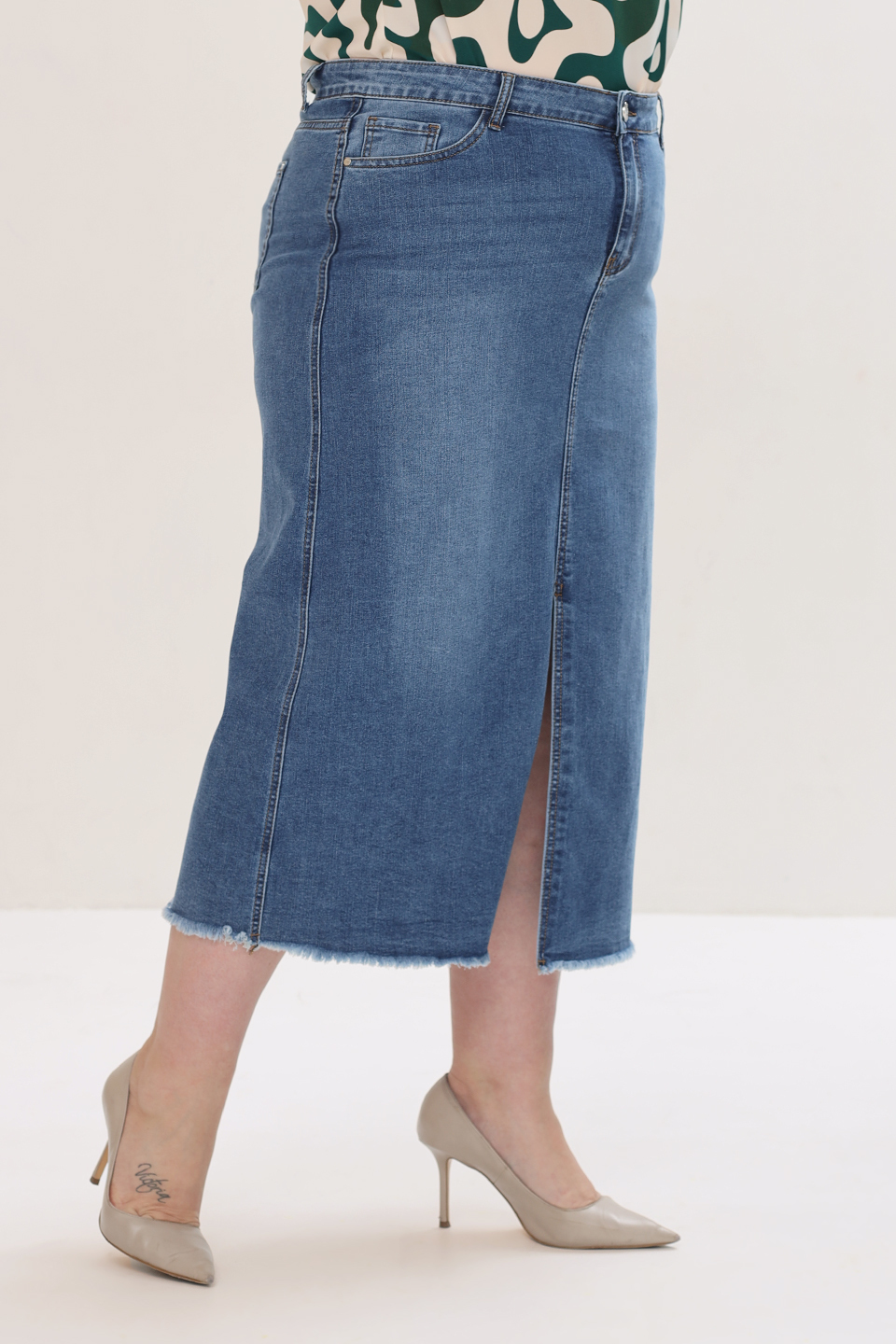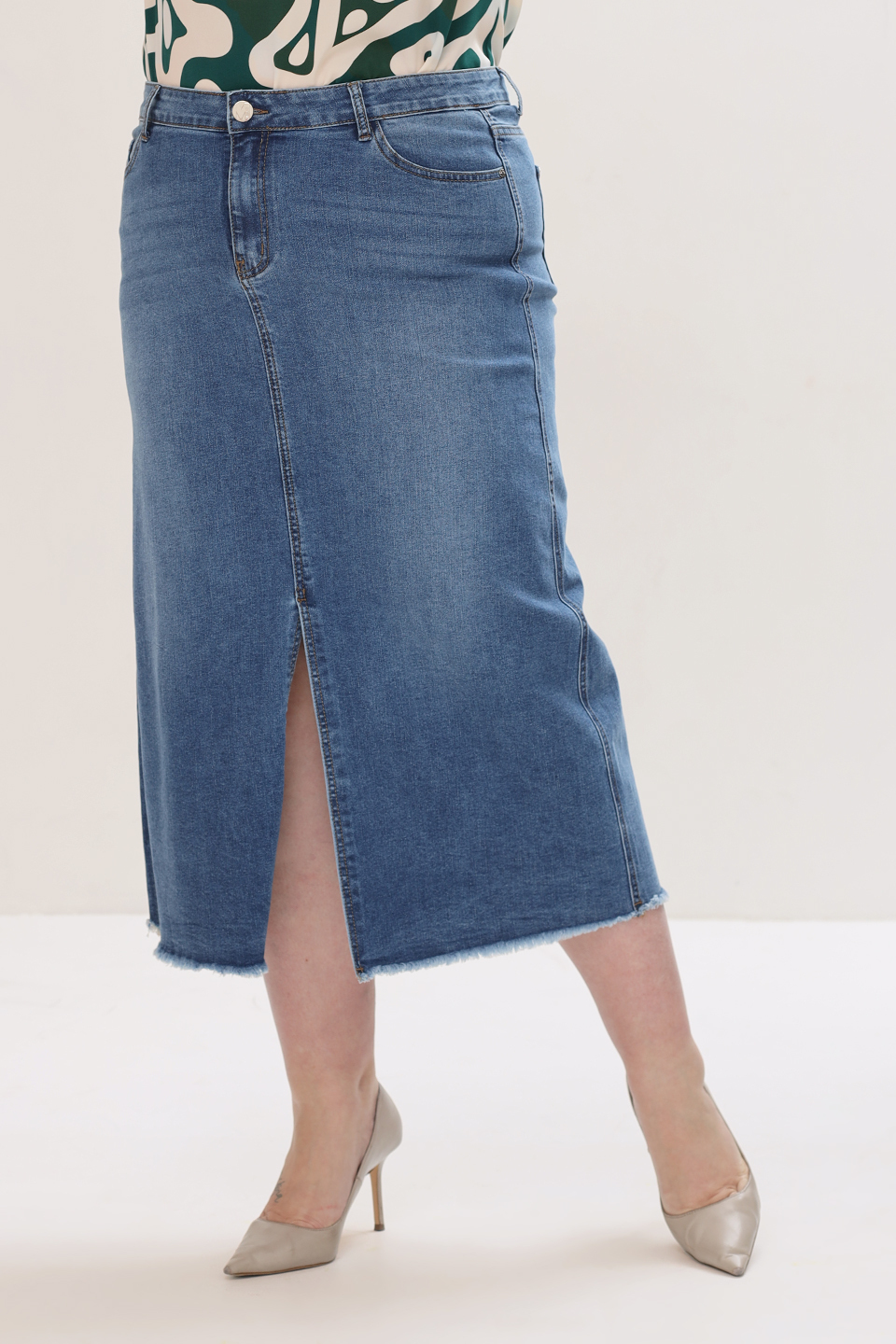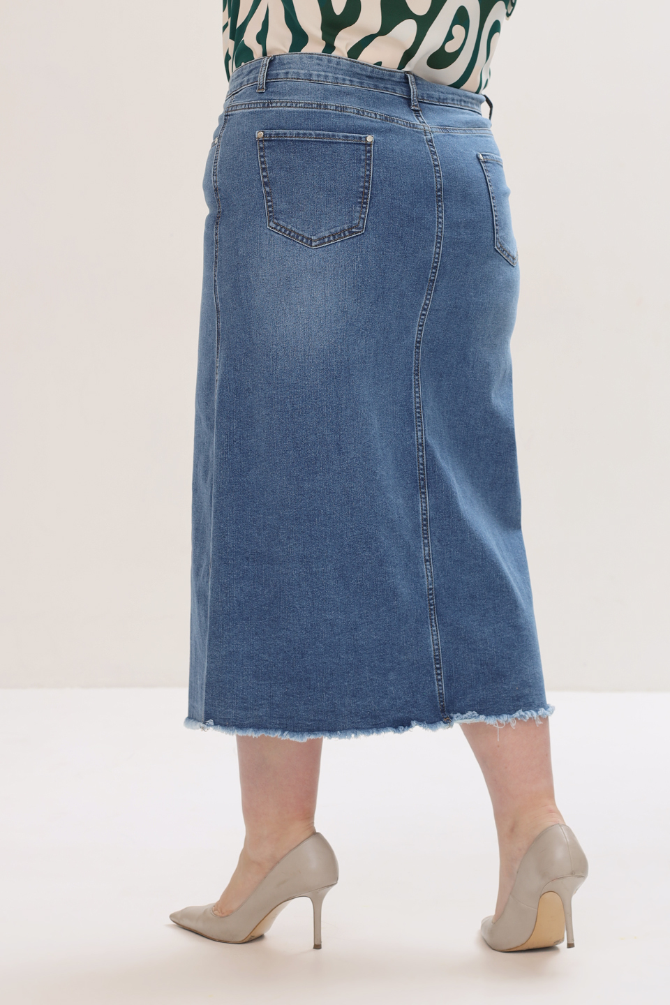 Элегантная юбка из мягкой джинсовой ткани с добавлением стрейча. модель отлично сидит за счет притачного пояса со шлевками и кокетки по спинке. боковые карманы с отрезным бочком и задние накладные карманы добавляют юбке практичности и функциональности. модель с комфортной посадкой не сковывает движений, застегивается спереди на пуговицу и скрытую молнию. центральный шов по спинке переходит в кокетливую шлицу, а спереди шов переходит в небольшой кокетливый разрез. всесезонная, практичная, универсальная модель джинсовой юбки отлично структурируетё и собирает фигуру в проблемных местах за счет плотности ткани и конструктивных швов. являясь базовой моделью, удачно сочетается с обувью и одеждой разных стилистических направлений, прекрасно вписываясь как в классический, так и альтернативный гардеробы, создавая актуальные вариативные образы на все случаи жизни.