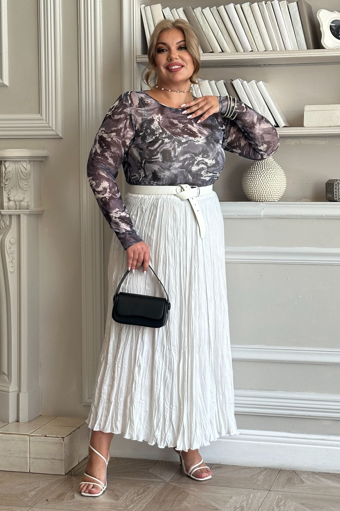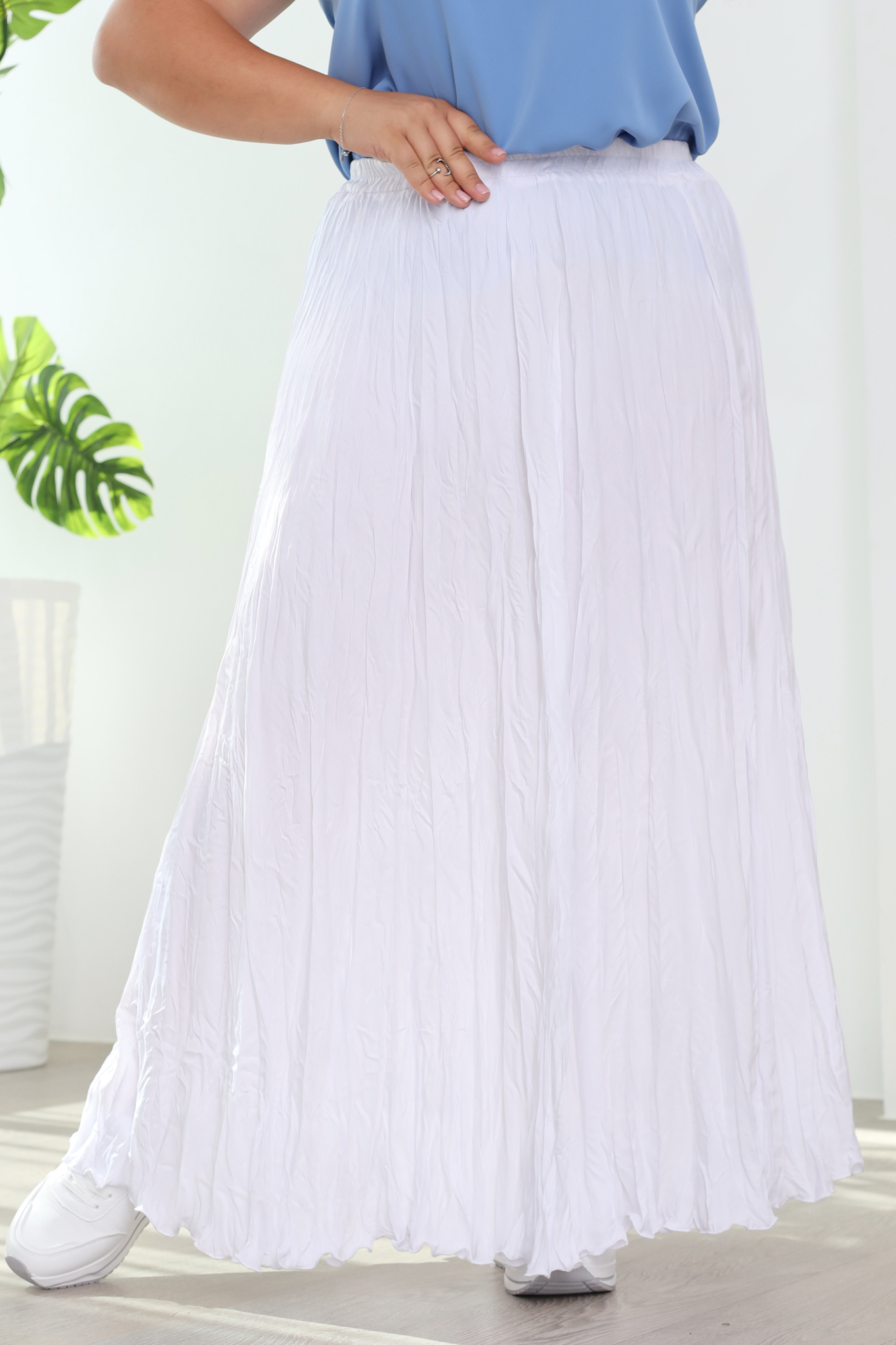 Стильная юбка из мягкой струящейся ткани с крэш эффектом подчеркнет достоинства женской фигуры. юбка силуэта трапеция виртуозно обыгрывает фигуру благодаря оригинальному крою модели. пояс на резинке способствует оптимальной посадке по фигуре. актуальный жатый эффект добавляет динамичности и освежает образ. носить юбку такого плана можно с любимыми футболками, обтягивающими водолазками, блузами и рубашками.