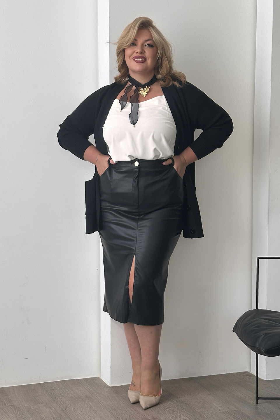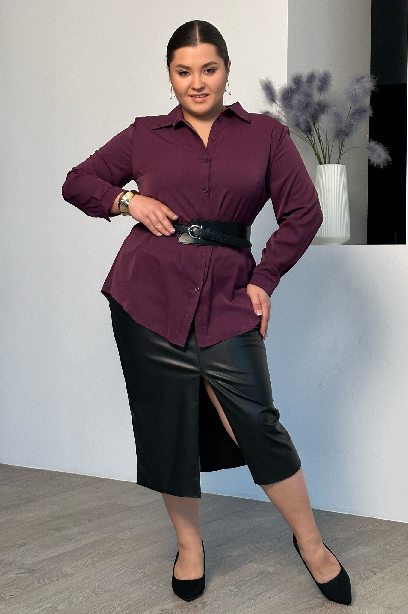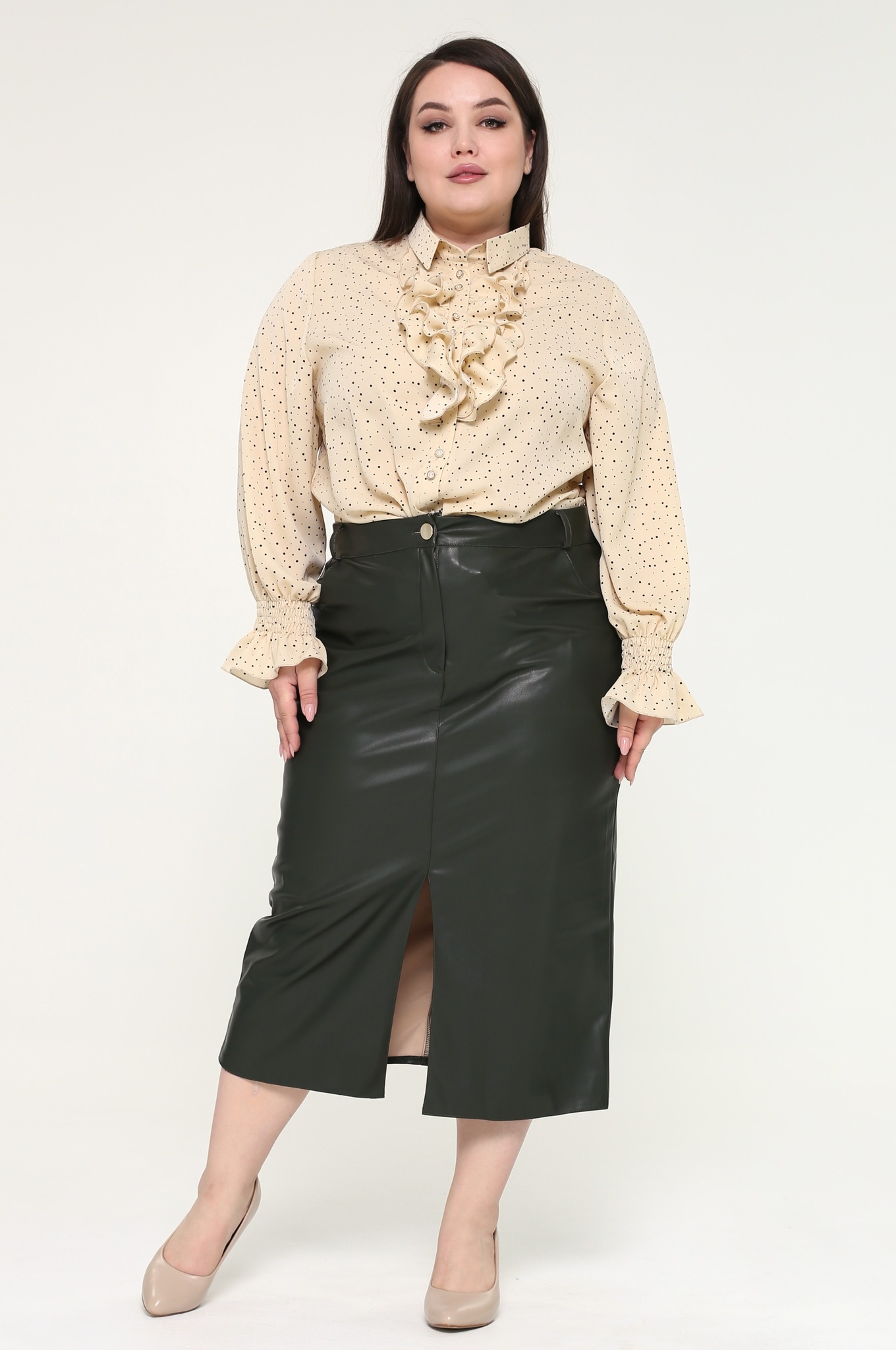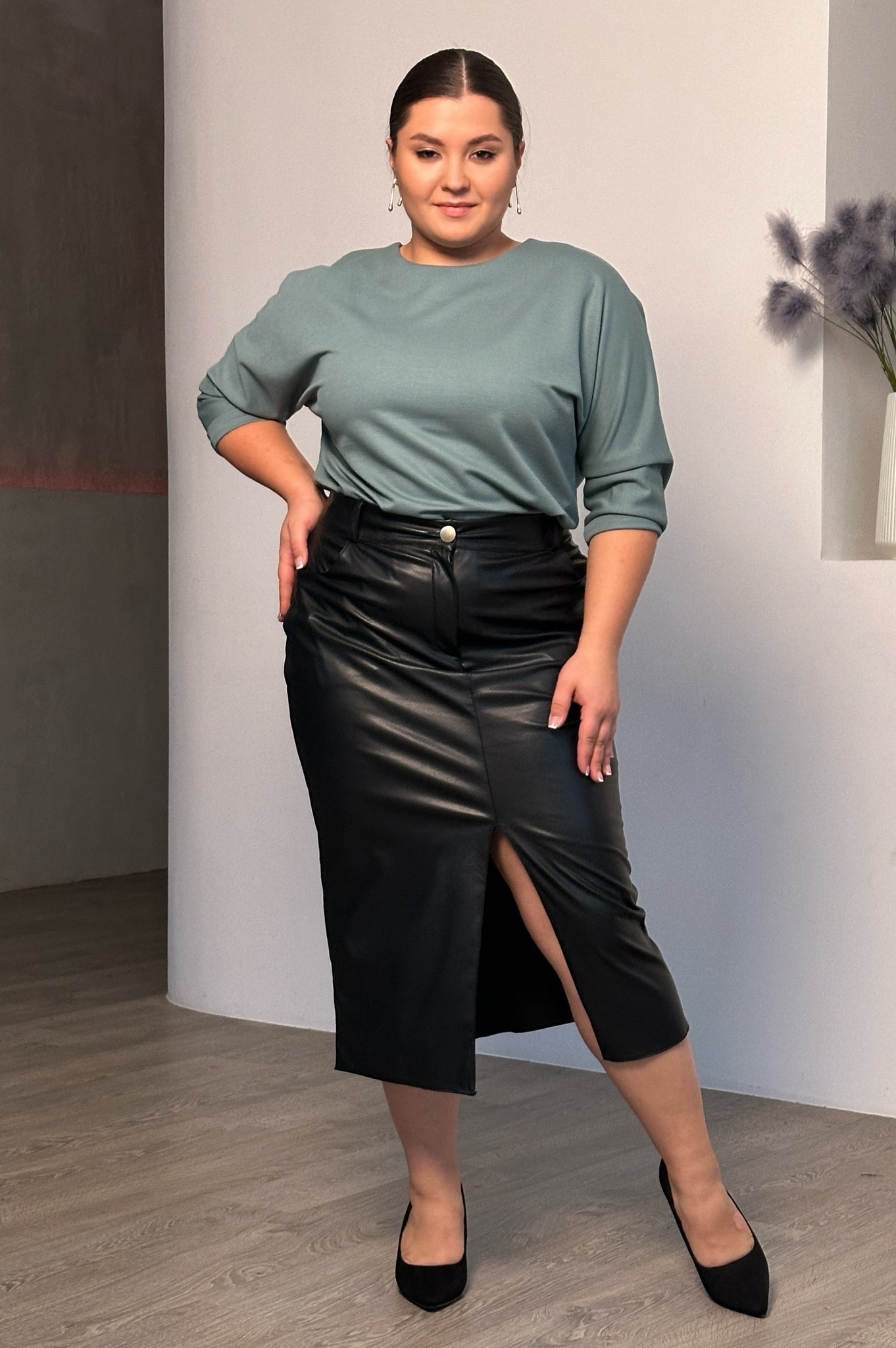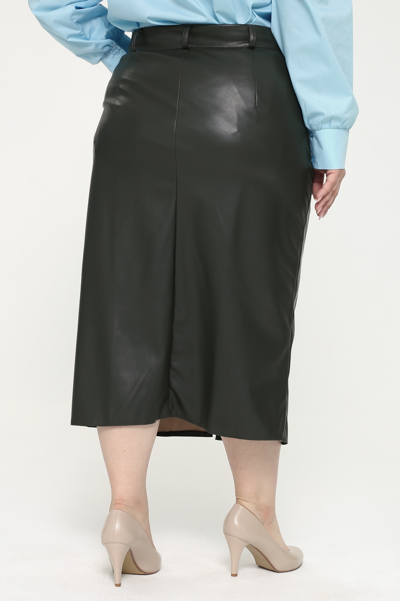 Стильная юбка из мягкой экокожи подчеркнет достоинства женской фигуры. притачной пояс со шлевками способствует оптимальной посадке по фигуре. декоративный шов по переду переходит в небольшой кокетливый разрез, что зрительно вытягивает силуэт. модель привлекает стильным дизайном. прямой крой не сковывает движений и искусно обыгрывает бедра. всесезонная, практичная модель отлично структурирует и собирает фигуру в проблемных местах за счет плотности ткани. носить юбку такого плана можно с любимыми свитерами, обтягивающими водолазками, блузами и рубашками.