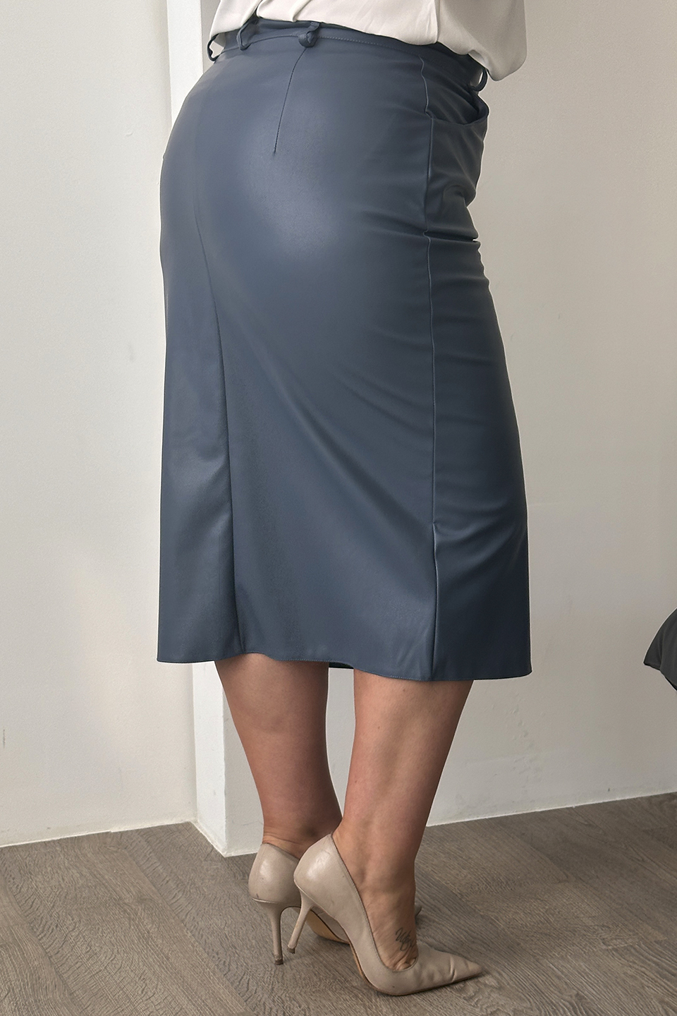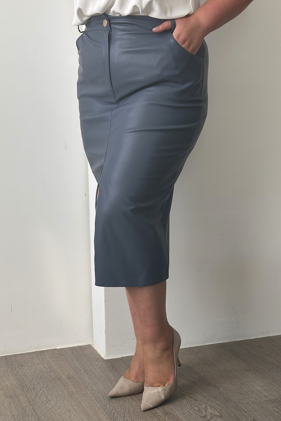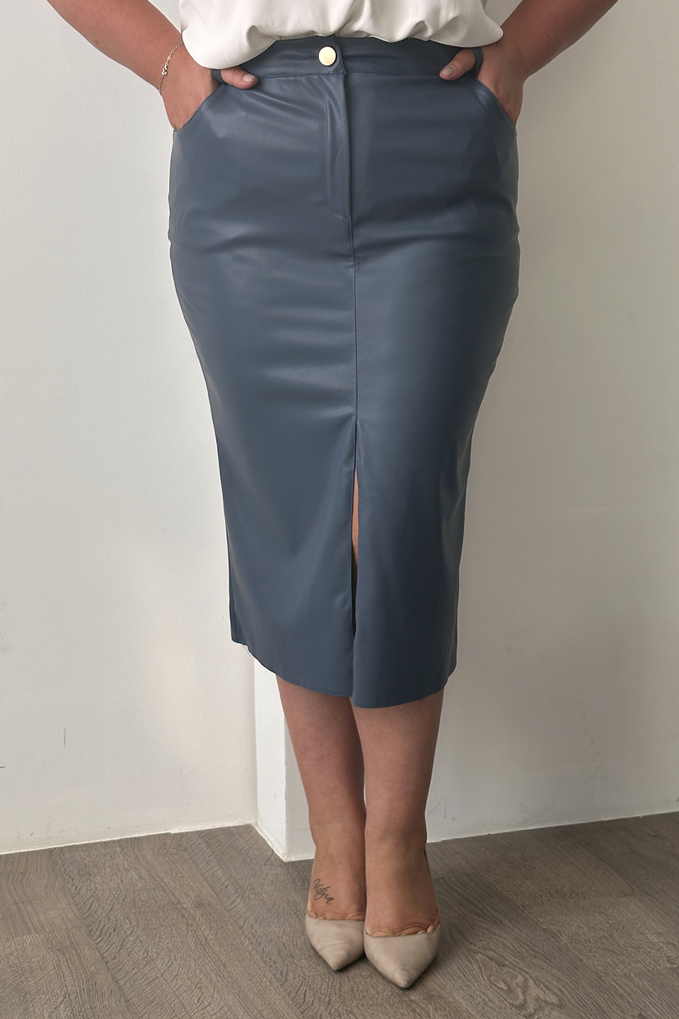 Юбка искусственная кожа с разрезом спереди джинса