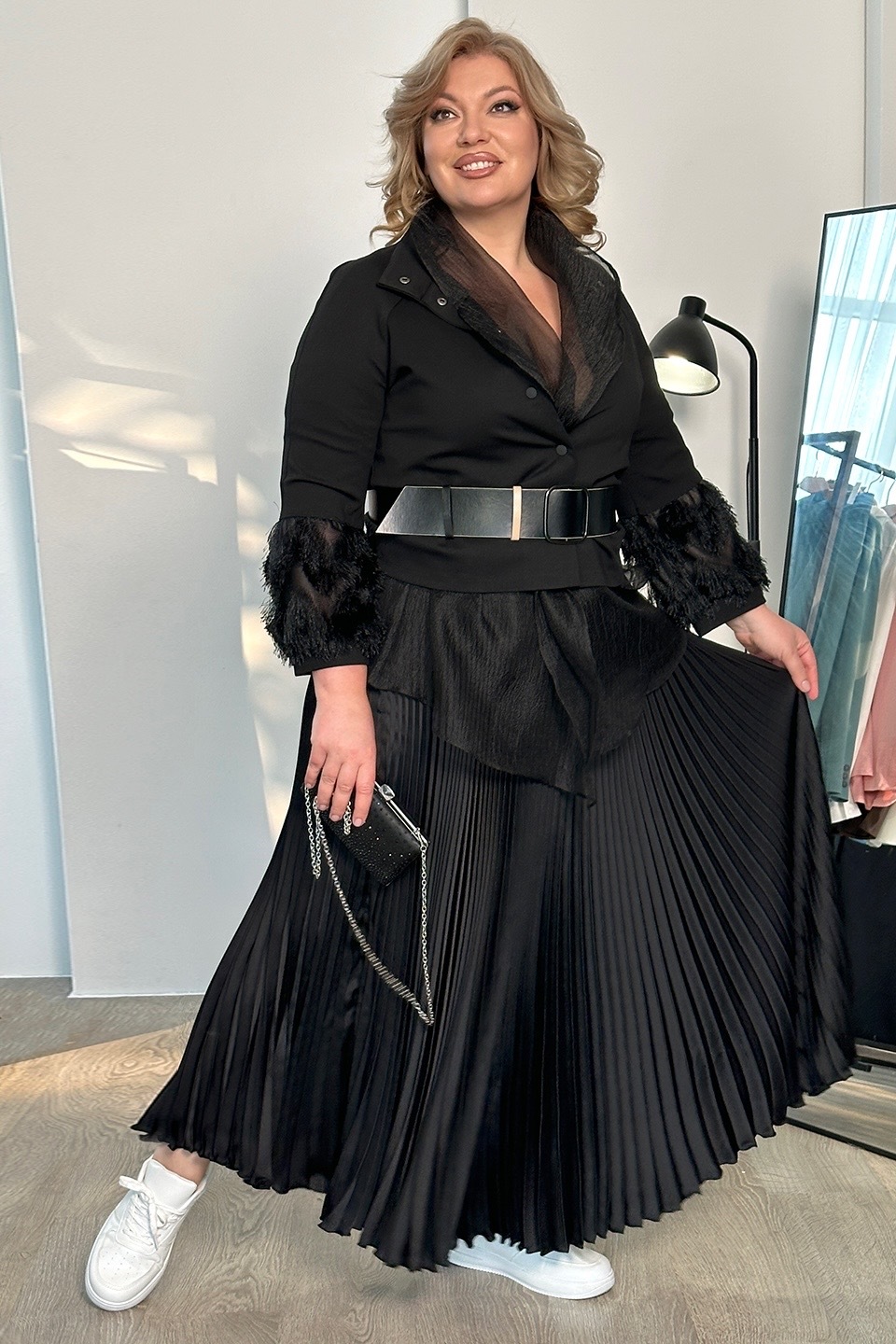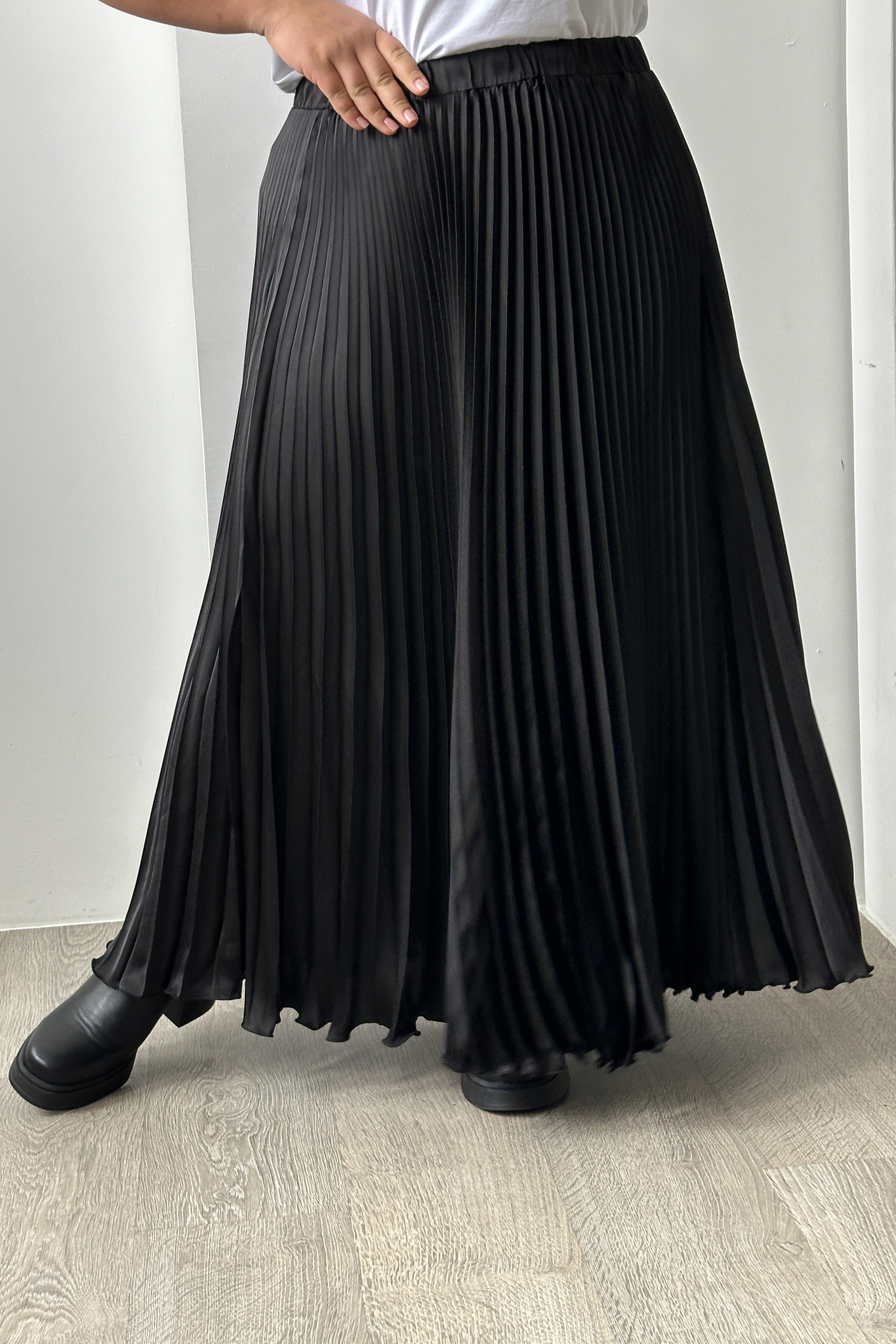 Юбка гофрированная атласная черная