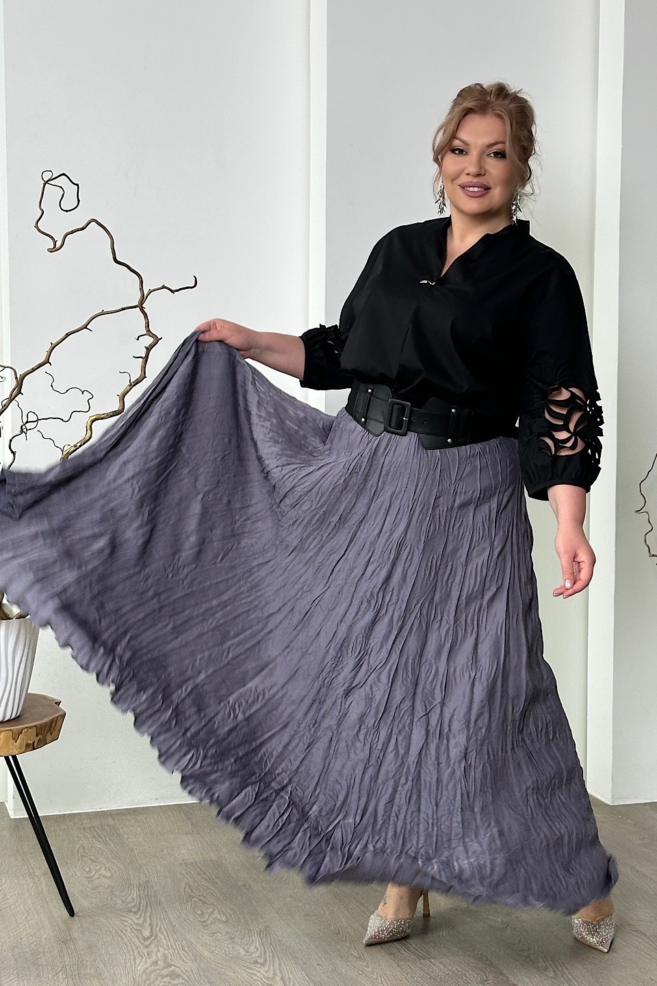 Юбка жатка длинная сиренево-серая высокий рост