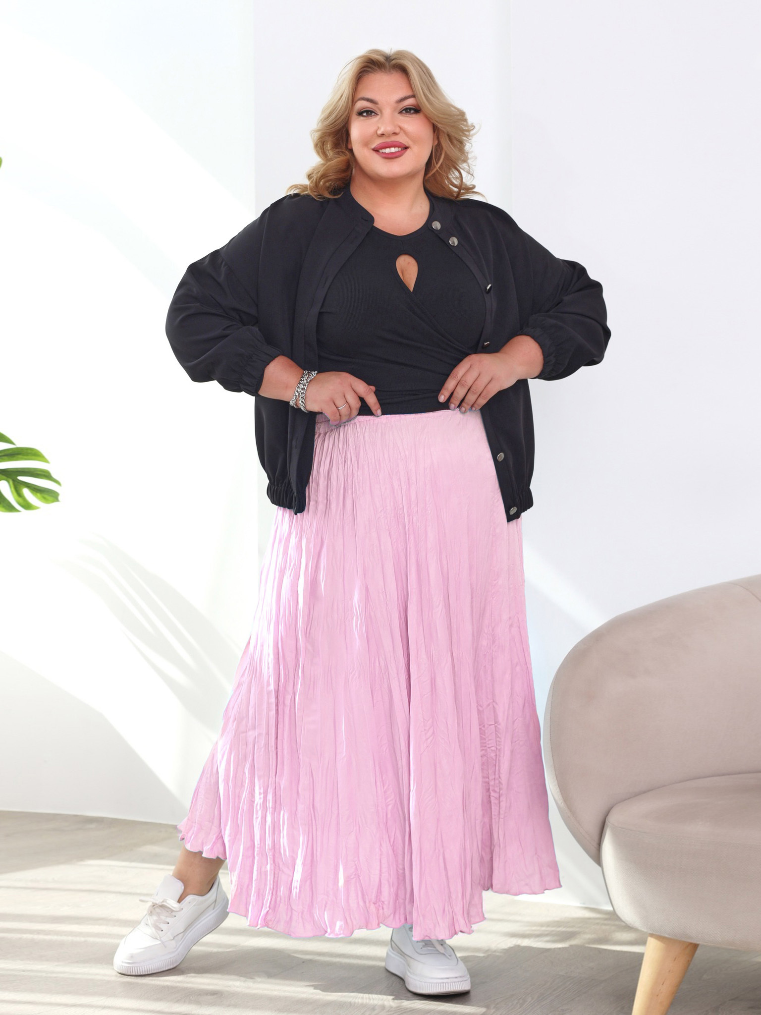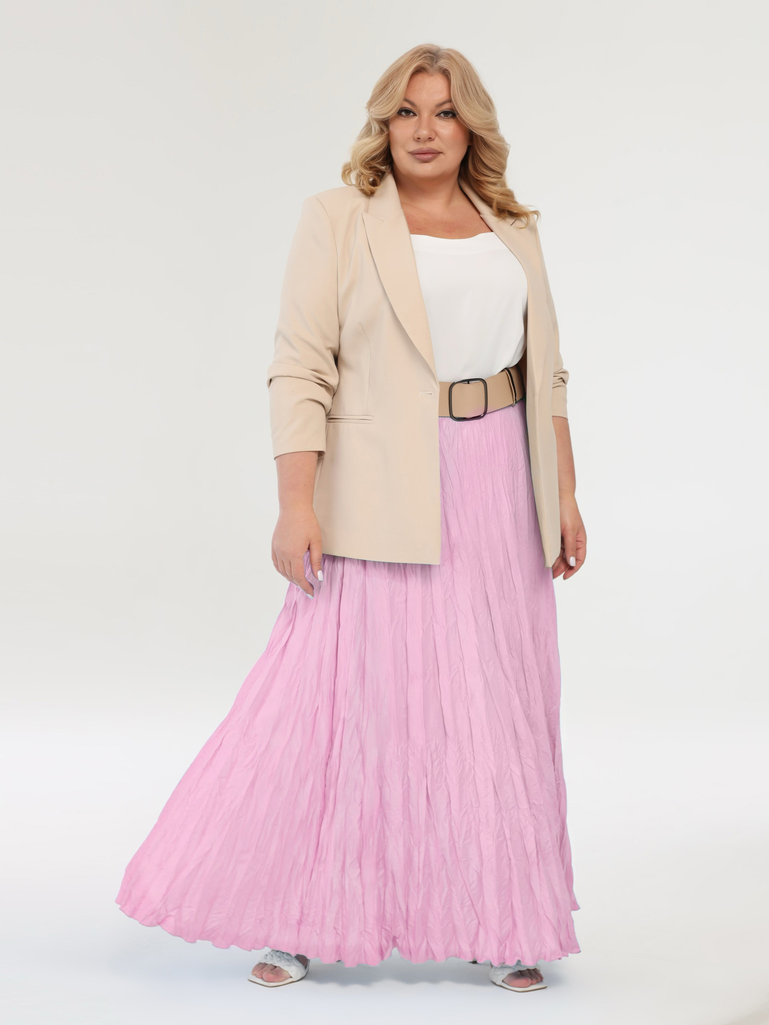 Стильная юбка из мягкой струящейся ткани с крэш эффектом подчеркнет достоинства женской фигуры. юбка силуэта трапеция виртуозно обыгрывает фигуру благодаря оригинальному крою модели. пояс на резинке способствует оптимальной посадке по фигуре. актуальный жатый эффект добавляет динамичности и освежает образ. носить юбку такого плана можно с любимыми футболками, обтягивающими водолазками, блузами и рубашками.