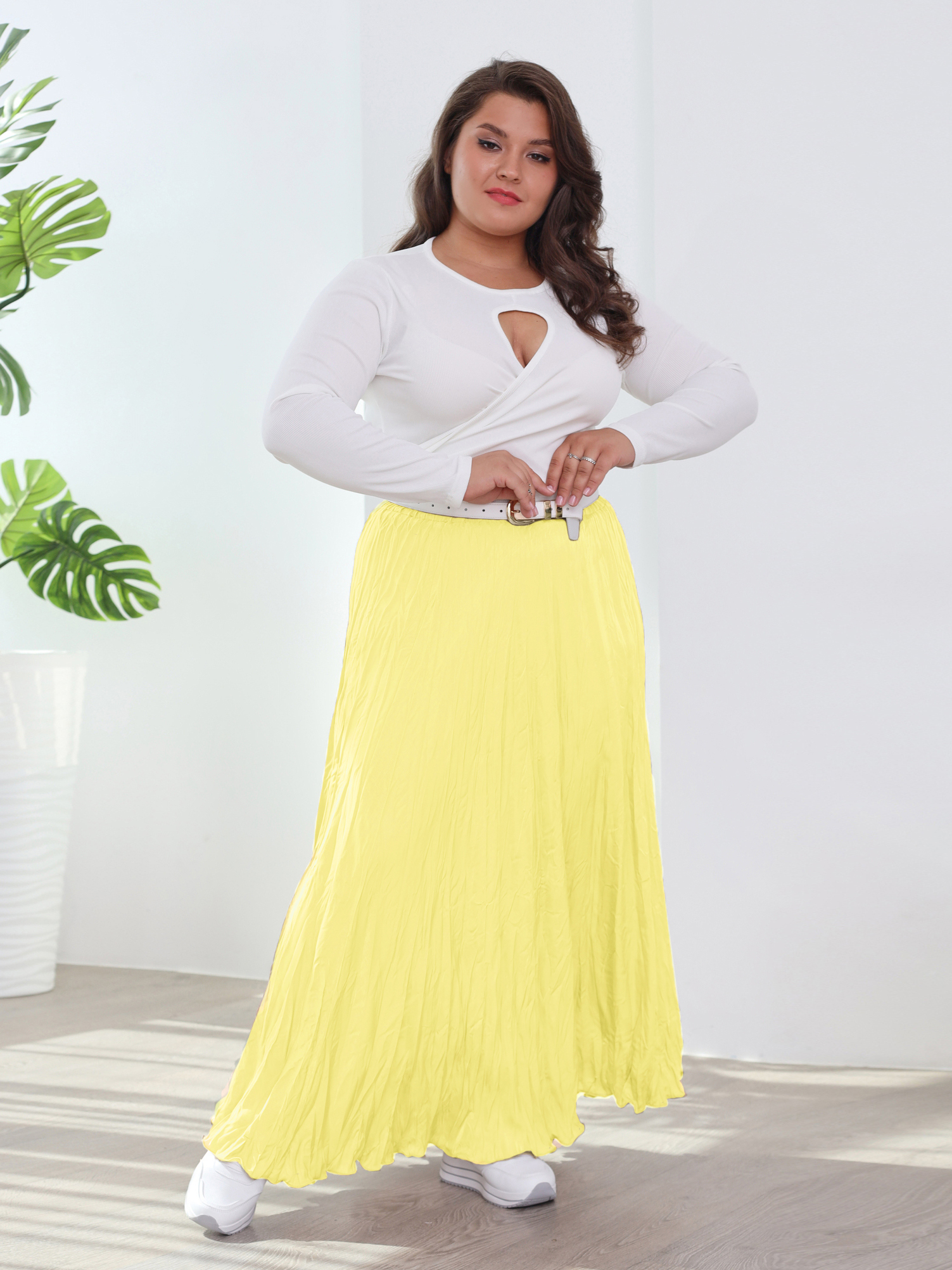 Стильная юбка из мягкой струящейся ткани с крэш эффектом подчеркнет достоинства женской фигуры. юбка силуэта трапеция виртуозно обыгрывает фигуру благодаря оригинальному крою модели. пояс на резинке способствует оптимальной посадке по фигуре. актуальный жатый эффект добавляет динамичности и освежает образ. носить юбку такого плана можно с любимыми футболками, обтягивающими водолазками, блузами и рубашками.