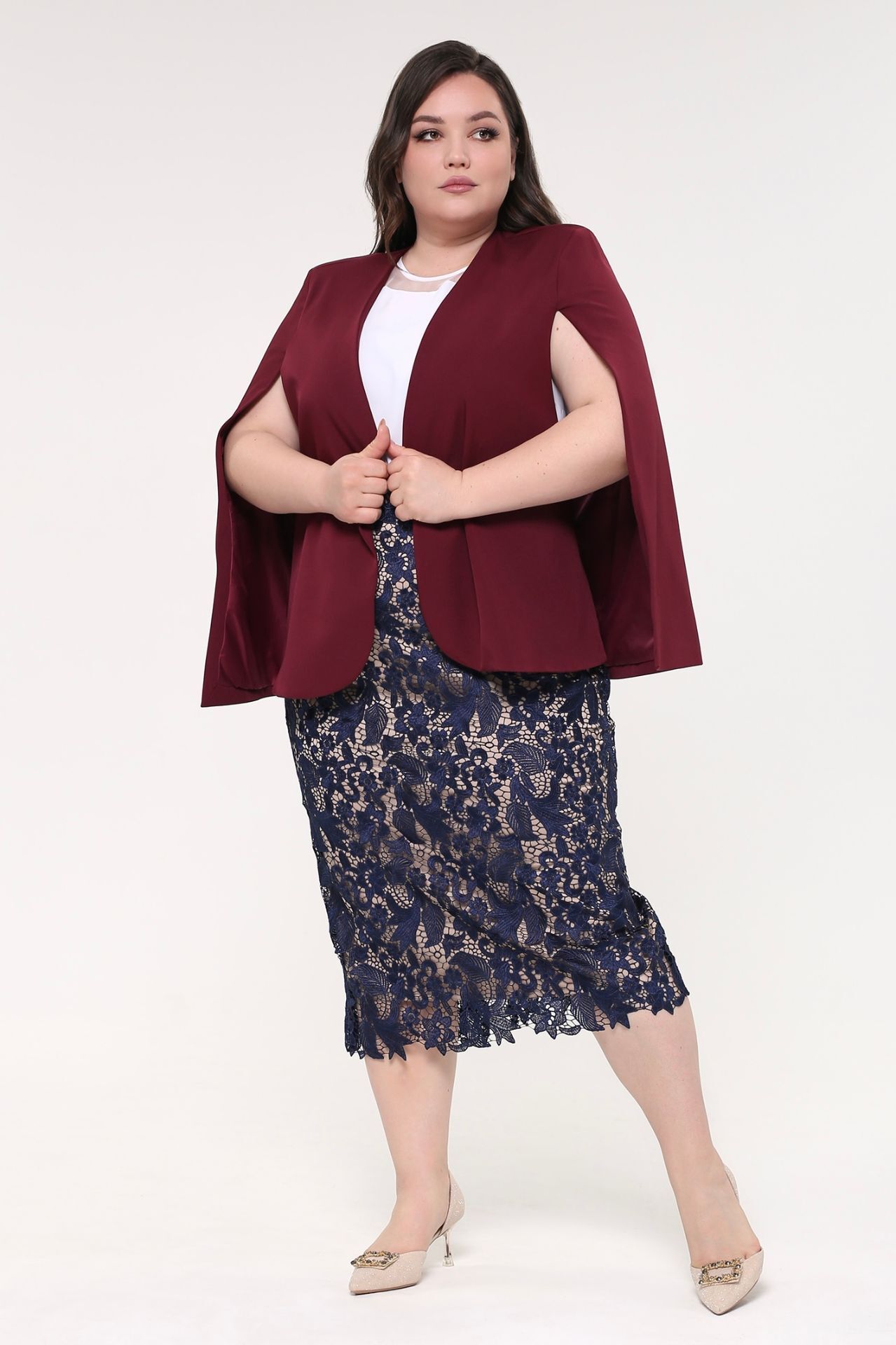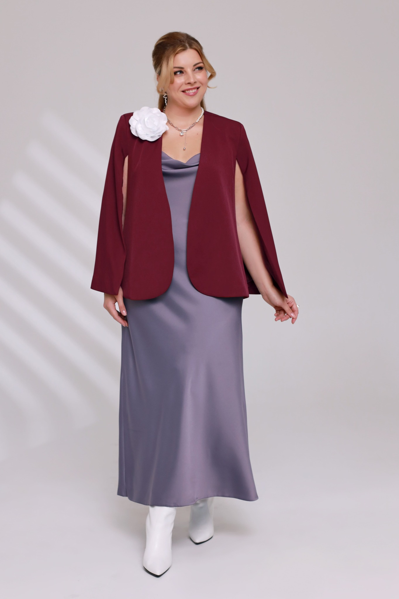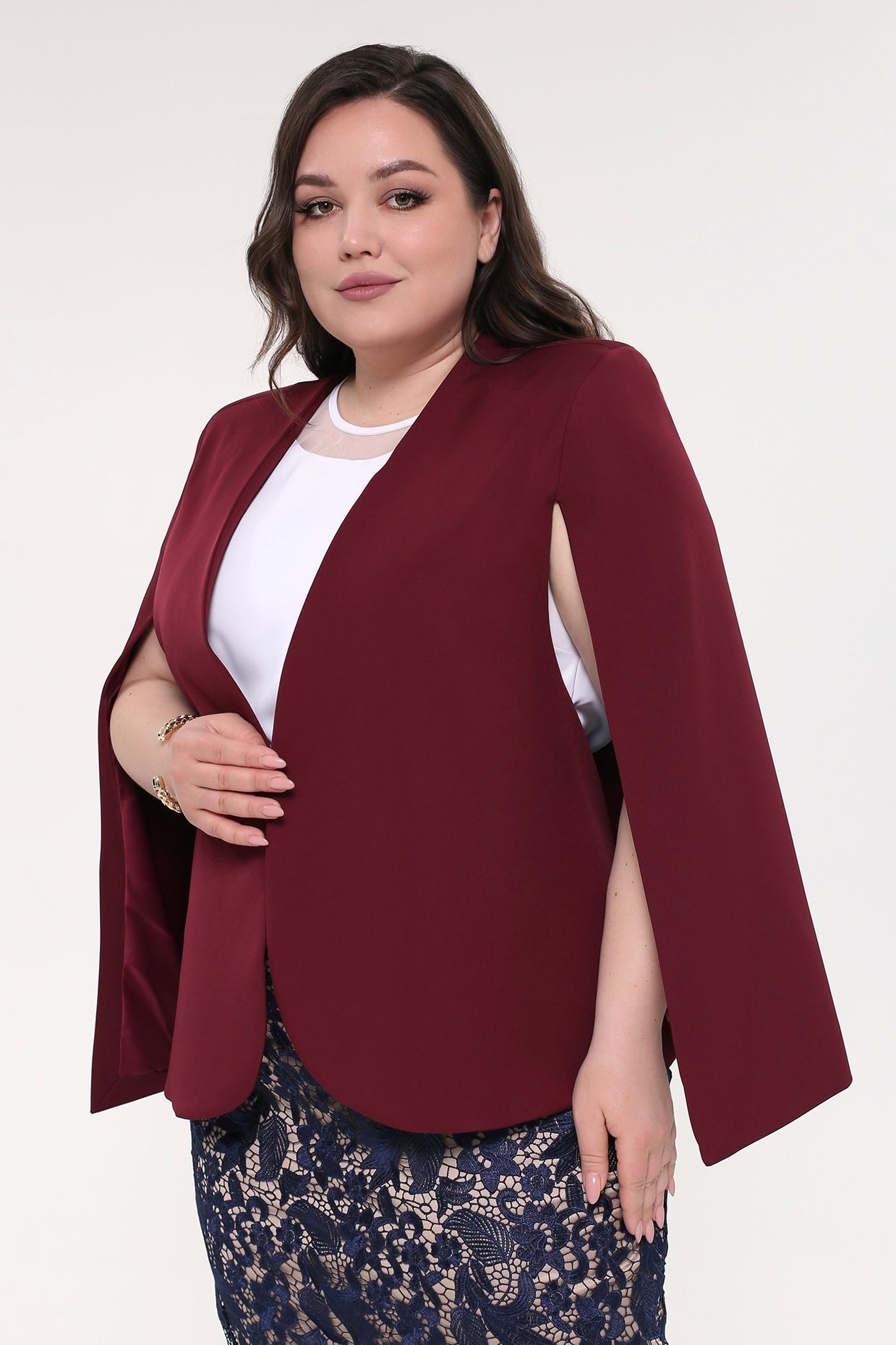 Кейп-жакет классический однотонный винный