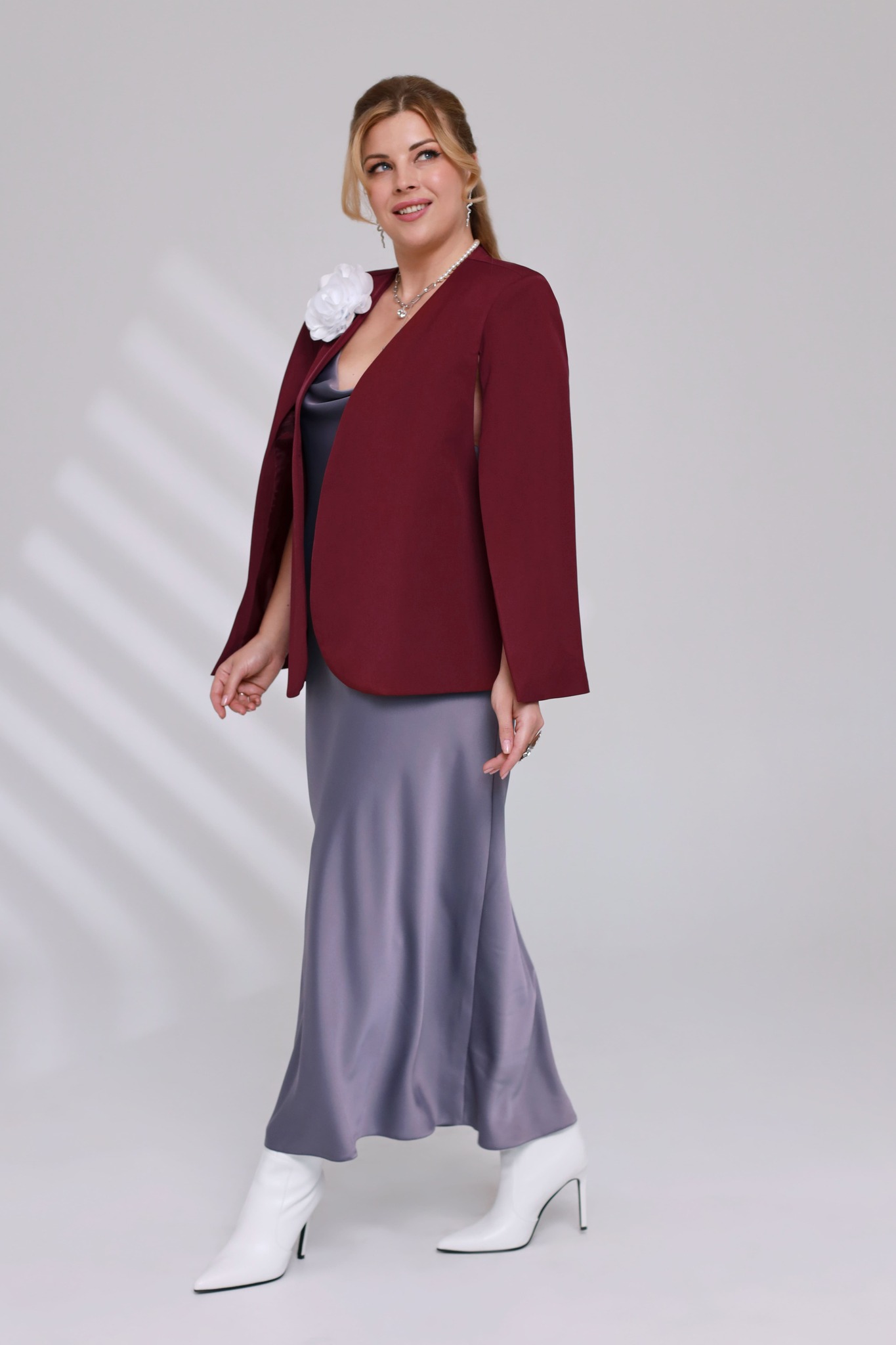 Элегантный кейп-жакет с мягкой подкладкой — это универсальная вещь, которая станет основой для множества образов. длинные летящие рукава с разрезами придают модели оригинальность, а свободный крой обеспечивает свободу движений и подходит для ношения поверх любой одежды. жакет без застёжек идеально подходит для торжественных мероприятий, создания повседневных образов в стиле кэжуал и как элемент гардероба для деловых встреч. он прекрасно сидит на любой фигуре, подчёркивая её достоинства и скрывая возможные недостатки. эта модель станет незаменимым элементом вашего гардероба, подходящим для любых ситуаций — от вечерних мероприятий до деловых встреч.