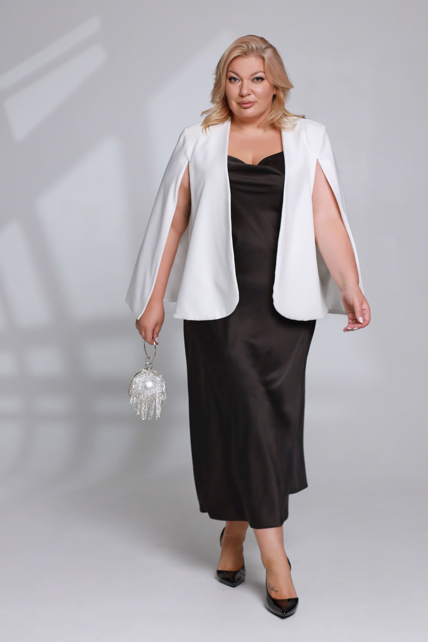 Элегантный кейп-жакет с мягкой подкладкой — это универсальная вещь, которая станет основой для множества образов. длинные летящие рукава с разрезами придают модели оригинальность, а свободный крой обеспечивает свободу движений и подходит для ношения поверх любой одежды. жакет без застёжек идеально подходит для торжественных мероприятий, создания повседневных образов в стиле кэжуал и как элемент гардероба для деловых встреч. он прекрасно сидит на любой фигуре, подчёркивая её достоинства и скрывая возможные недостатки. эта модель станет незаменимым элементом вашего гардероба, подходящим для любых ситуаций — от вечерних мероприятий до деловых встреч.