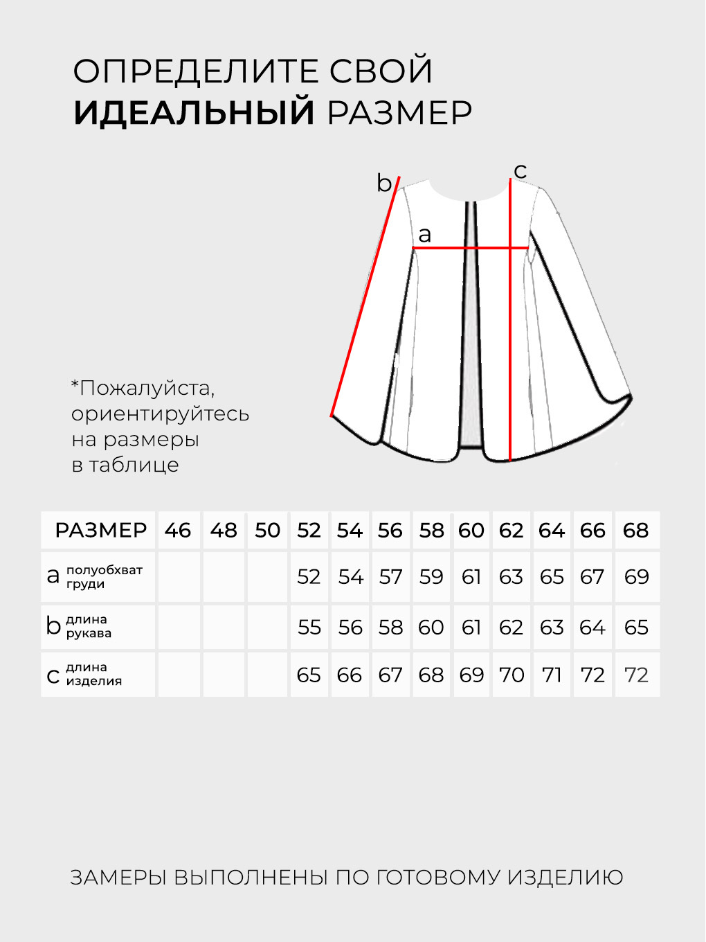 Просим обратить внимание, что в таблице приведены замеры фигуры, а не изделия.