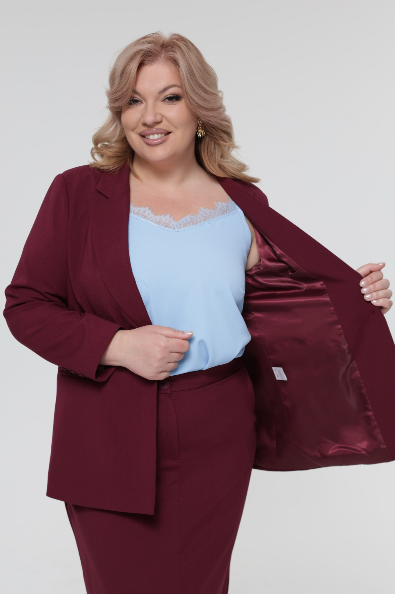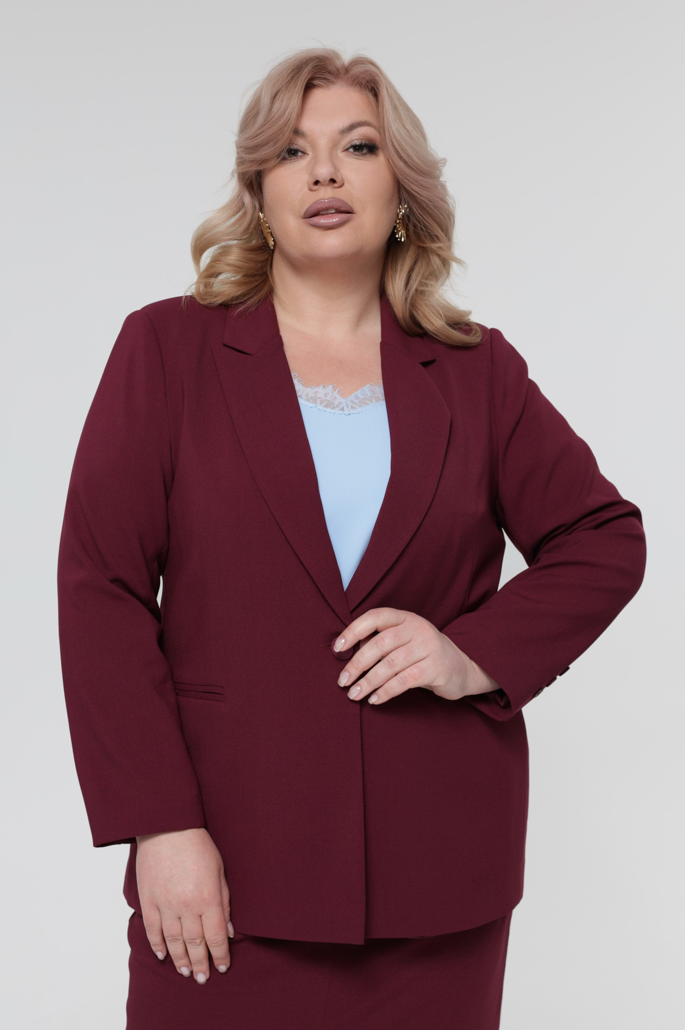 Жакет однобортный с одной пуговкой винный