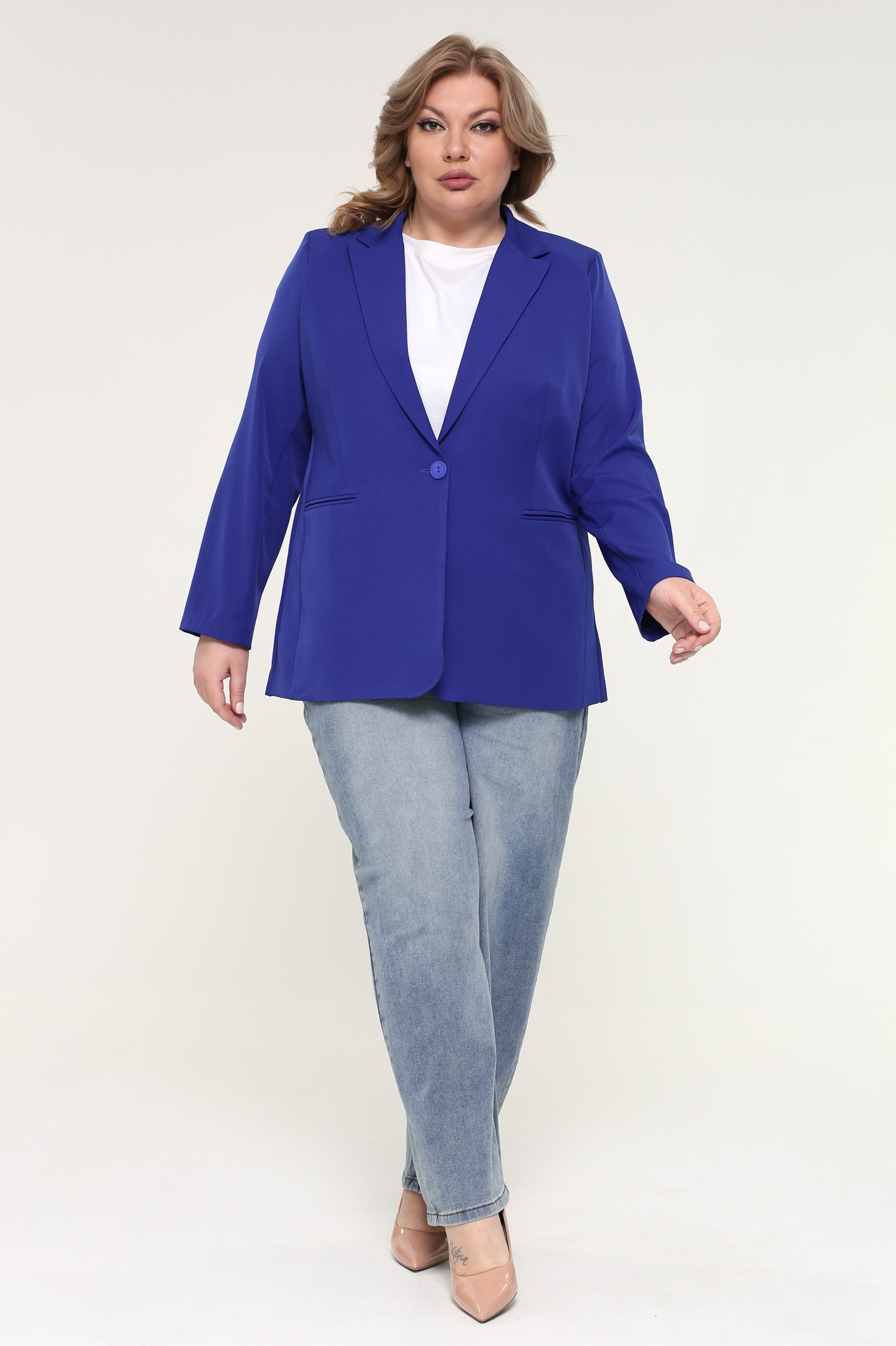 Жакет на пуговках однотонный электрик