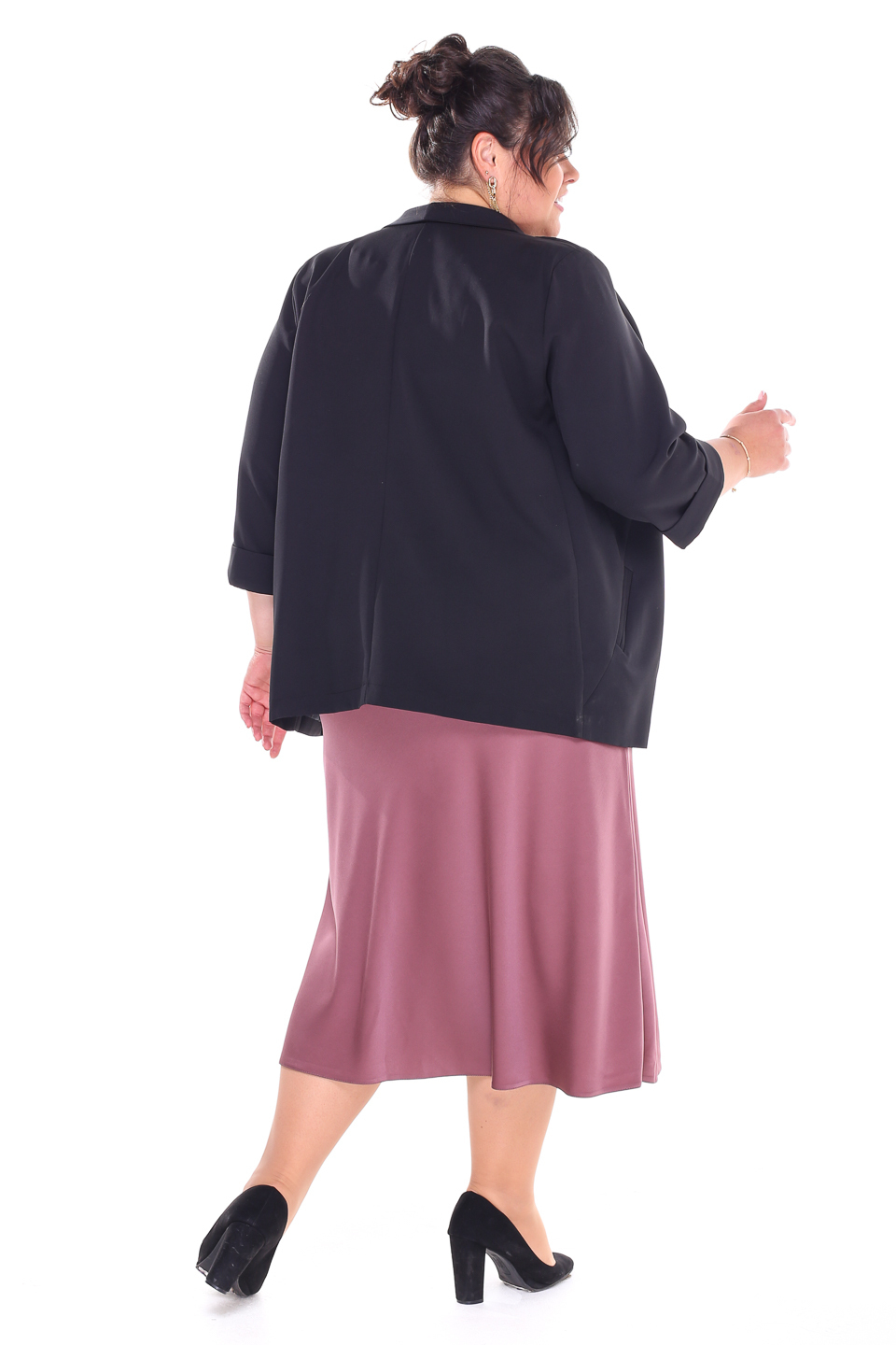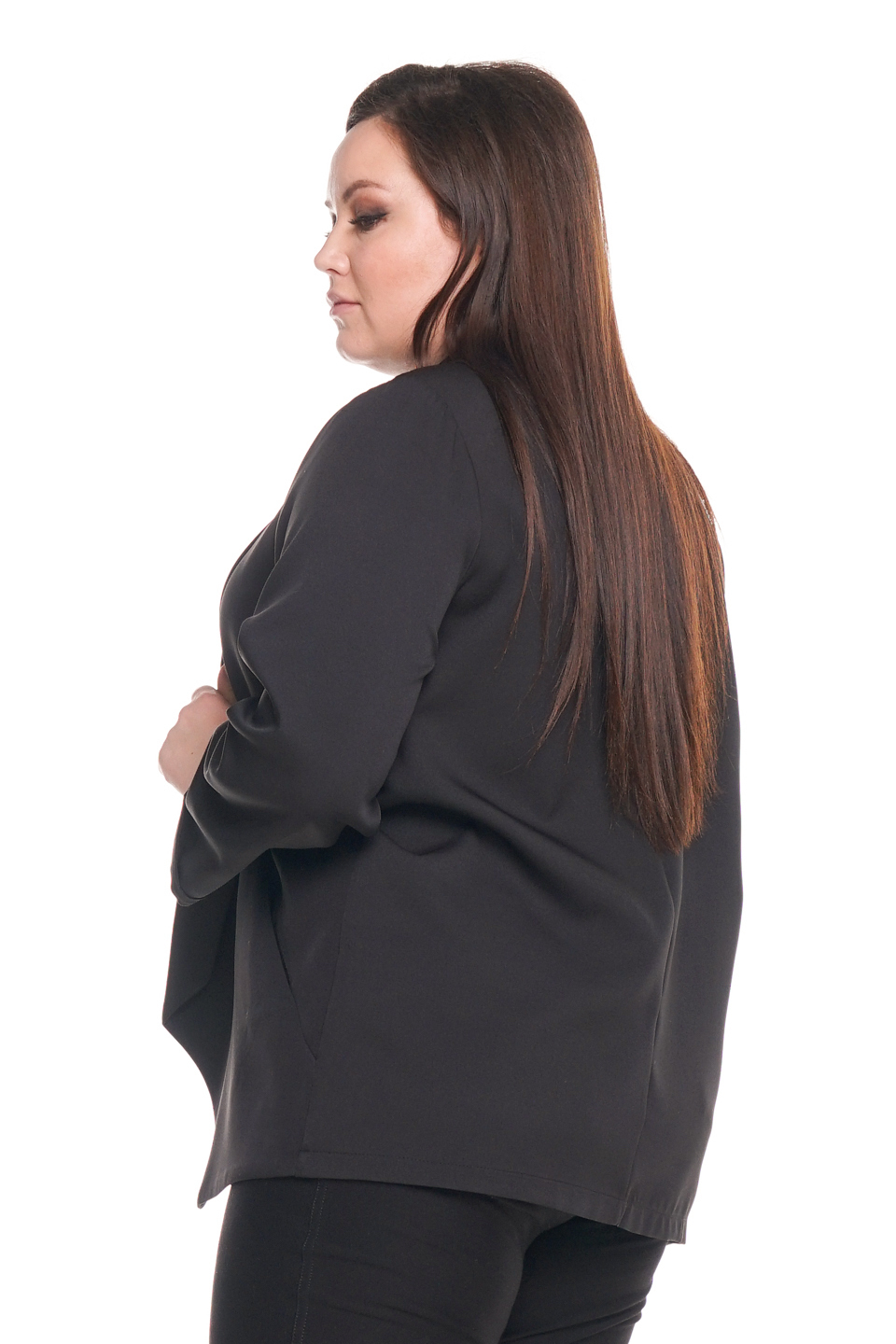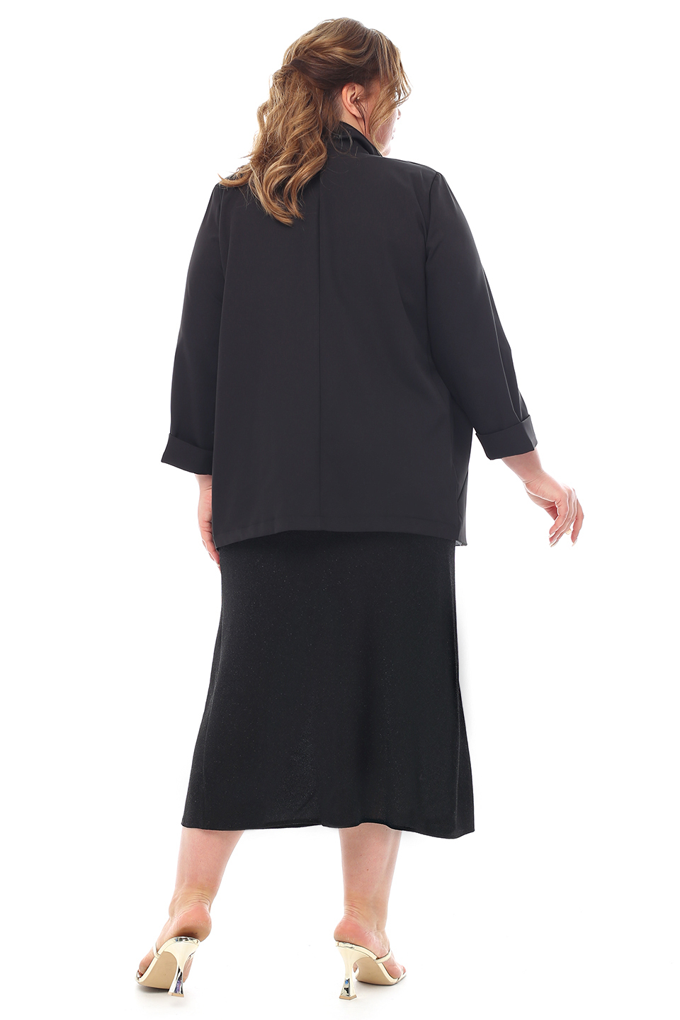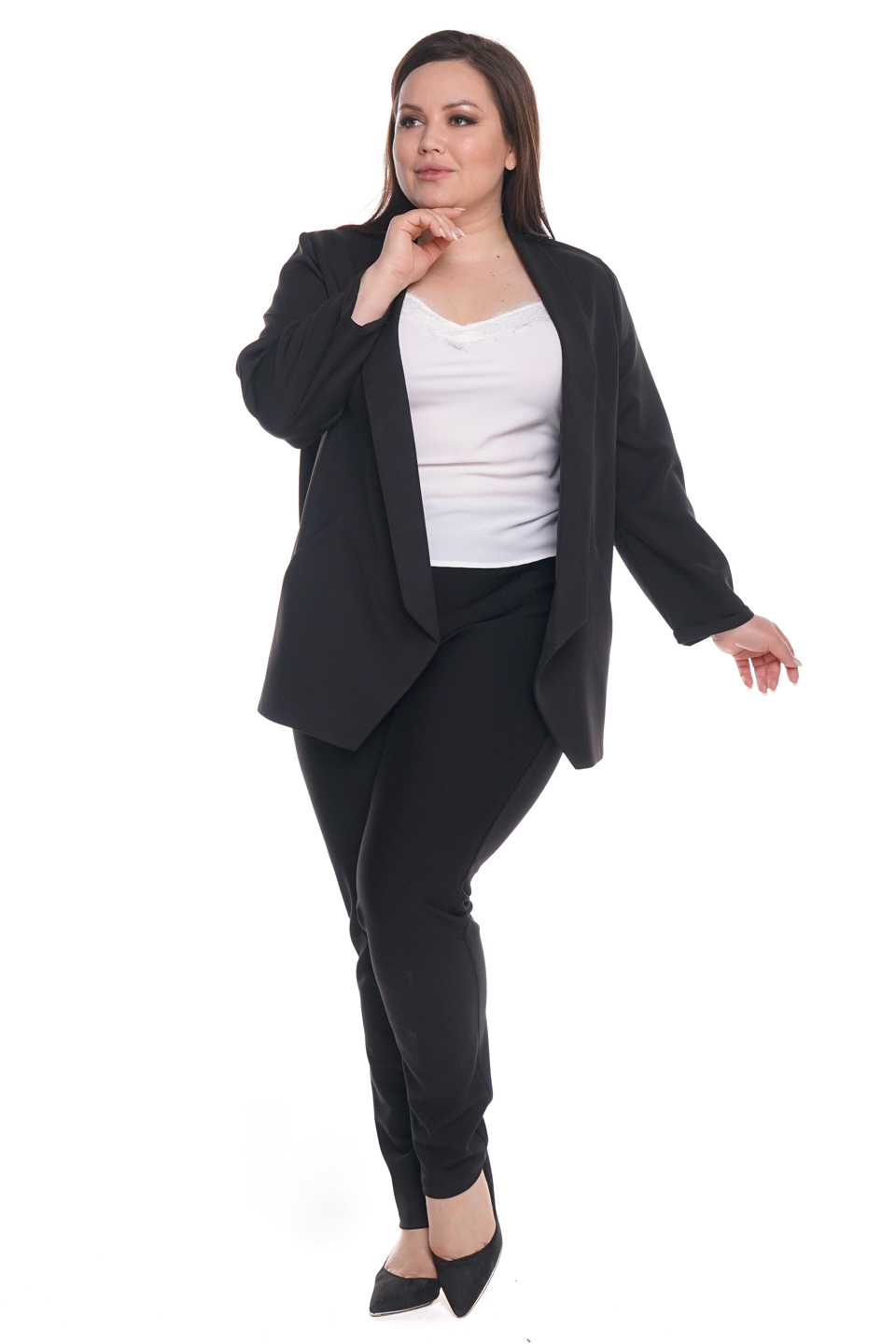 Женственный жакет прямого кроя. выполнен из плотной мягкой ткани. глубокий v-образный вырез оформлен отложным воротником. рукава 7/8 оформлены отворотом. по бокам вшивные карманы. формирующие швы обеспечивают оптимальную посадку по фигуре. небольшие подплечники делают осанку более выправленной. передние полочки дополнены атласной подкладкой, по спинке подкладка отсутствует. ассиметричный нижний край спереди – визуально стройнит. модель полуприлегающего силуэта без застежки - отлично подходит для завершения стильного образа.