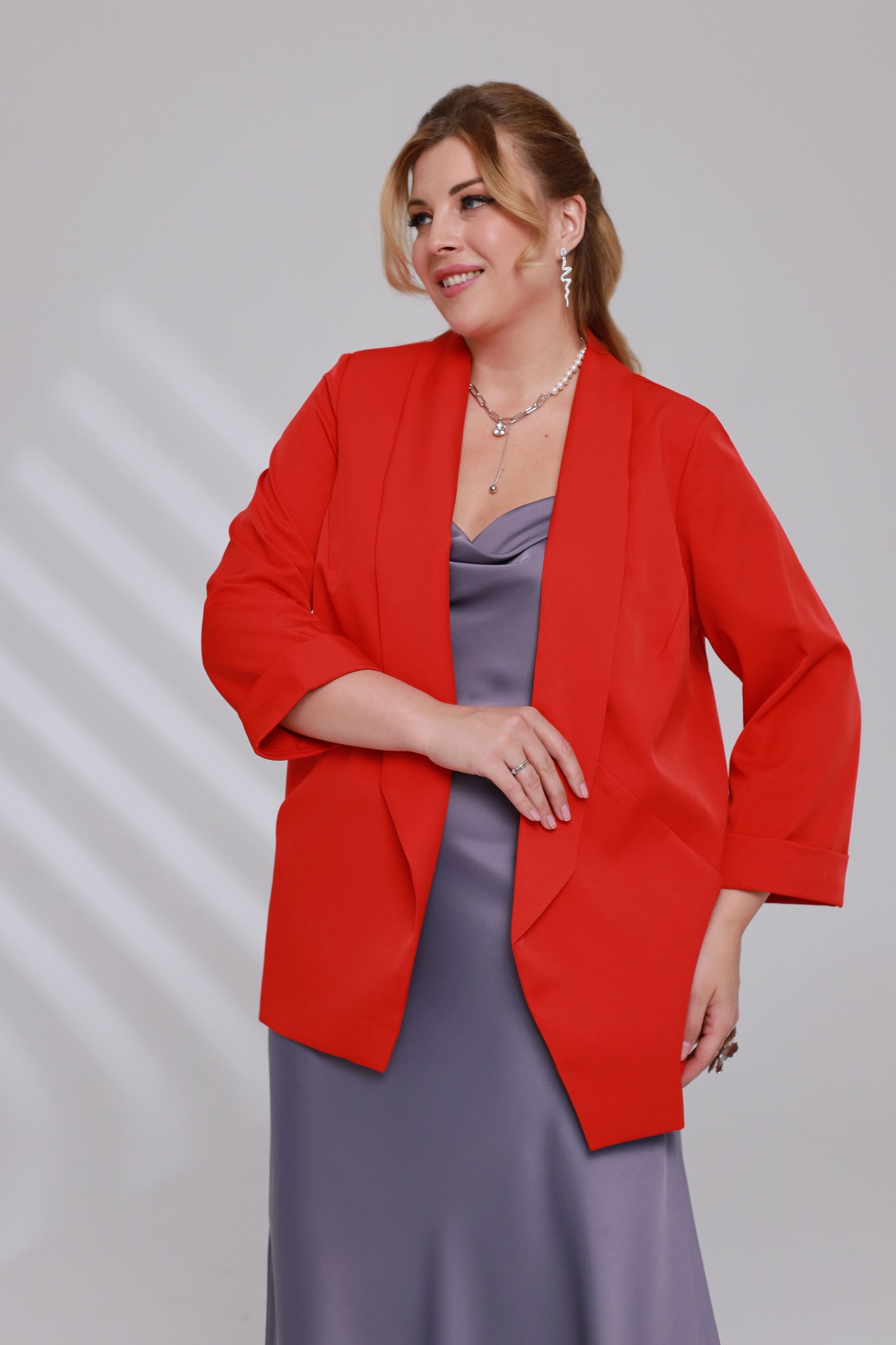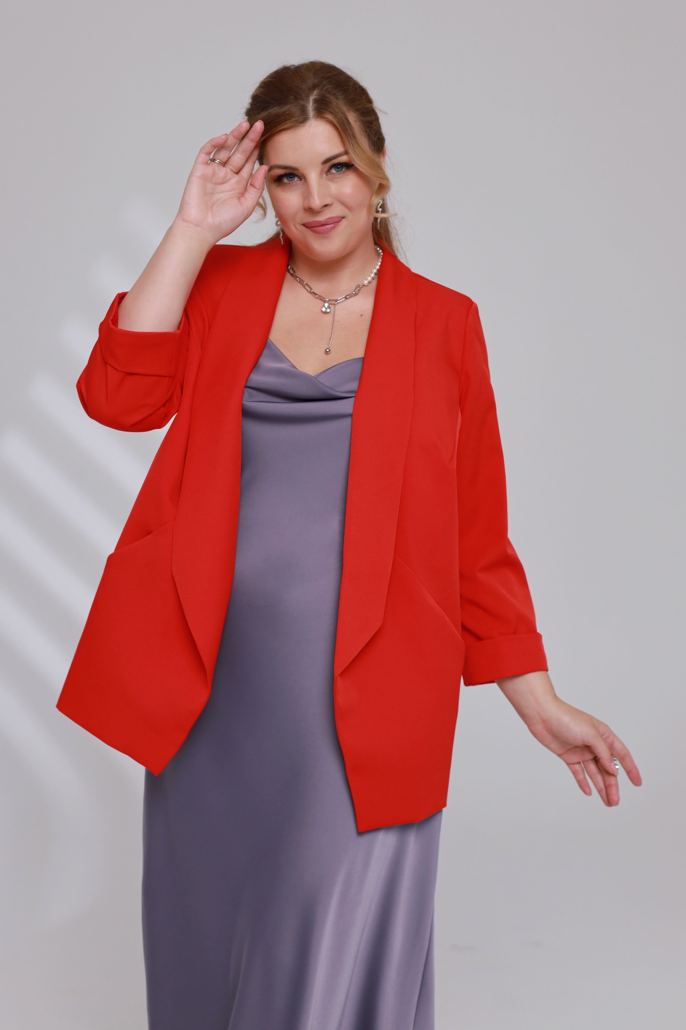 Жакет с отложным воротом красный