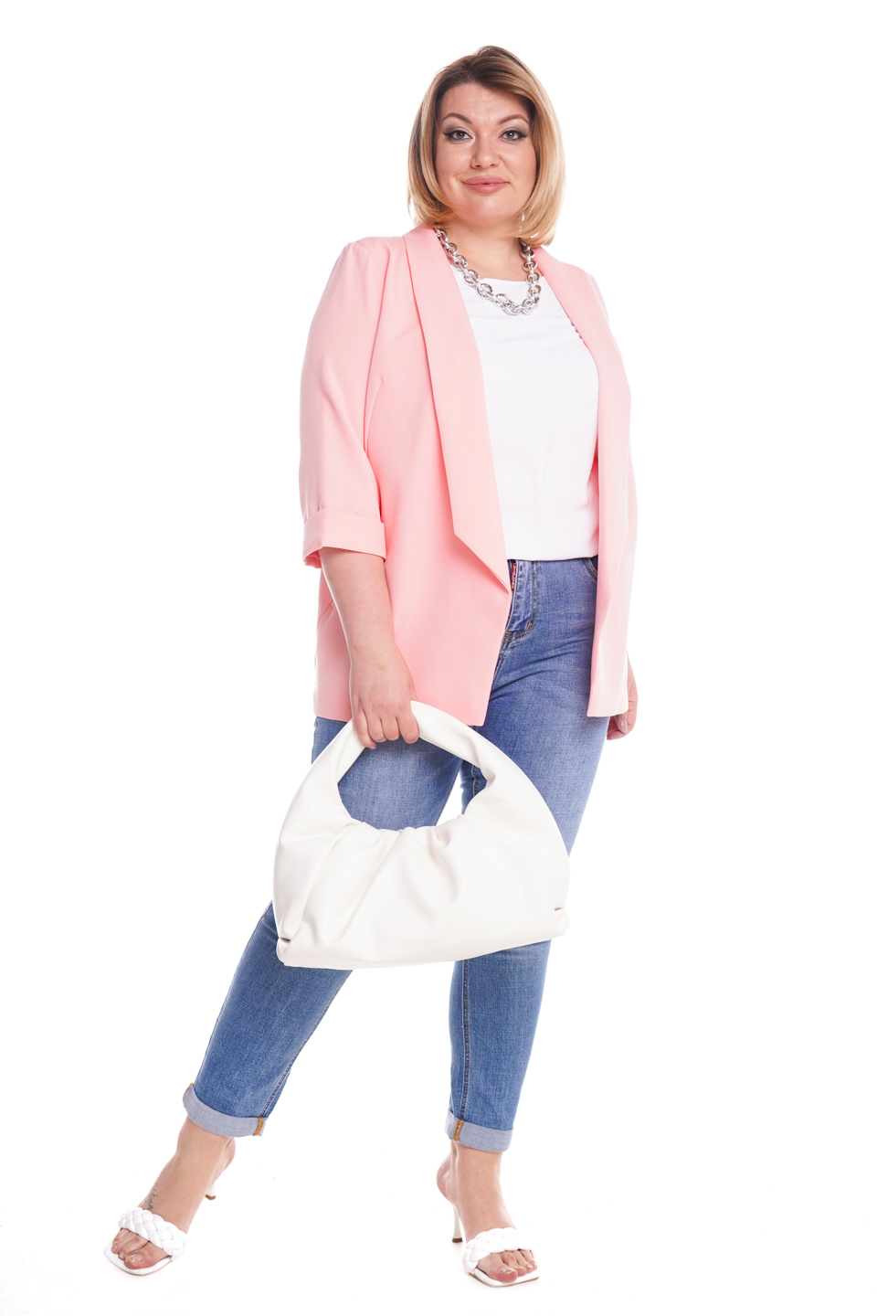 Женственный жакет прямого кроя. выполнен из плотной мягкой ткани. глубокий v-образный вырез оформлен отложным воротником. рукава 7/8 оформлены отворотом. по бокам вшивные карманы. формирующие швы обеспечивают оптимальную посадку по фигуре. небольшие подплечники делают осанку более выправленной. передние полочки дополнены атласной подкладкой, по спинке подкладка отсутствует. ассиметричный нижний край спереди – визуально стройнит. модель полуприлегающего силуэта без застежки - отлично подходит для завершения стильного образа.